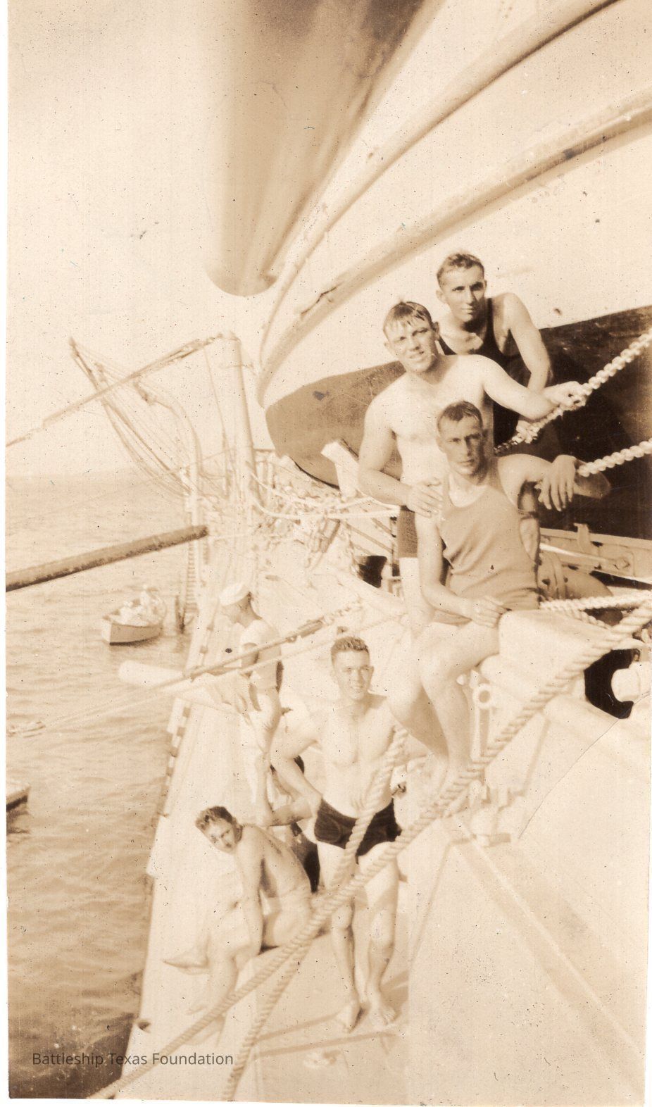 From a donated collection of individual photographs and pages out of a 1930s Texas crewmember's photo album. Items donated by the Los Angeles Maritime Museum. Many photographs had writing on the pages of the book, now discarded. The caption formerly on the page for this photo read,