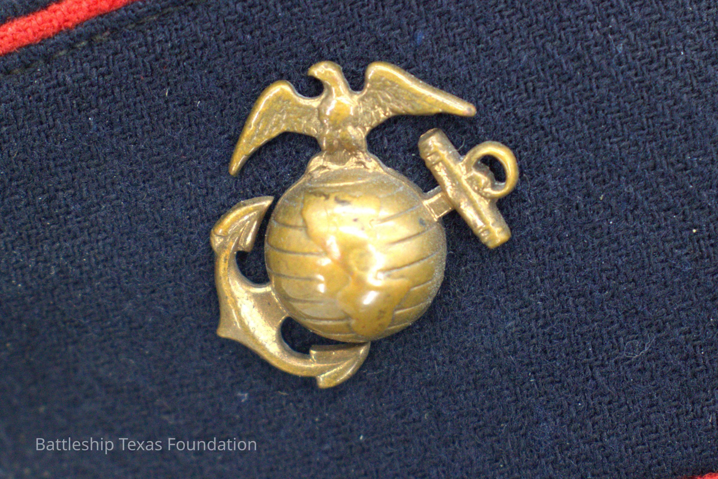 Marine Corps Dress Blues were the standard formal attire, and included a blue jumper that featured gilt buttons and red trim, blue slacks, white gloves, and a white peaked cap. Ribbons and marksmen medals could be worn on the left breast.Collection