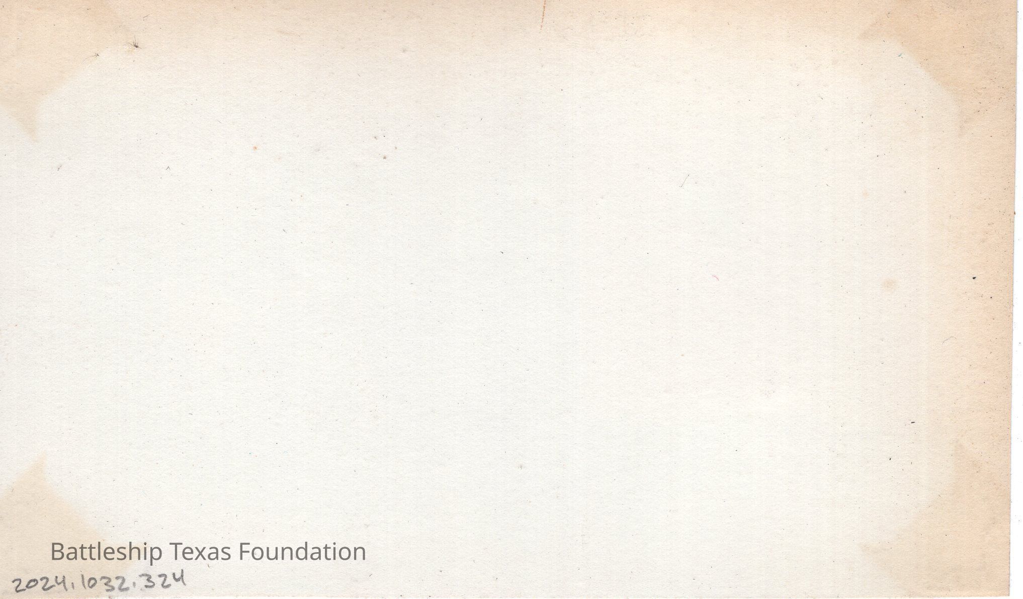From a donated collection of individual photographs and pages out of a Texas crewmember's photo album. Items donated by the Los Angeles Maritime Museum.