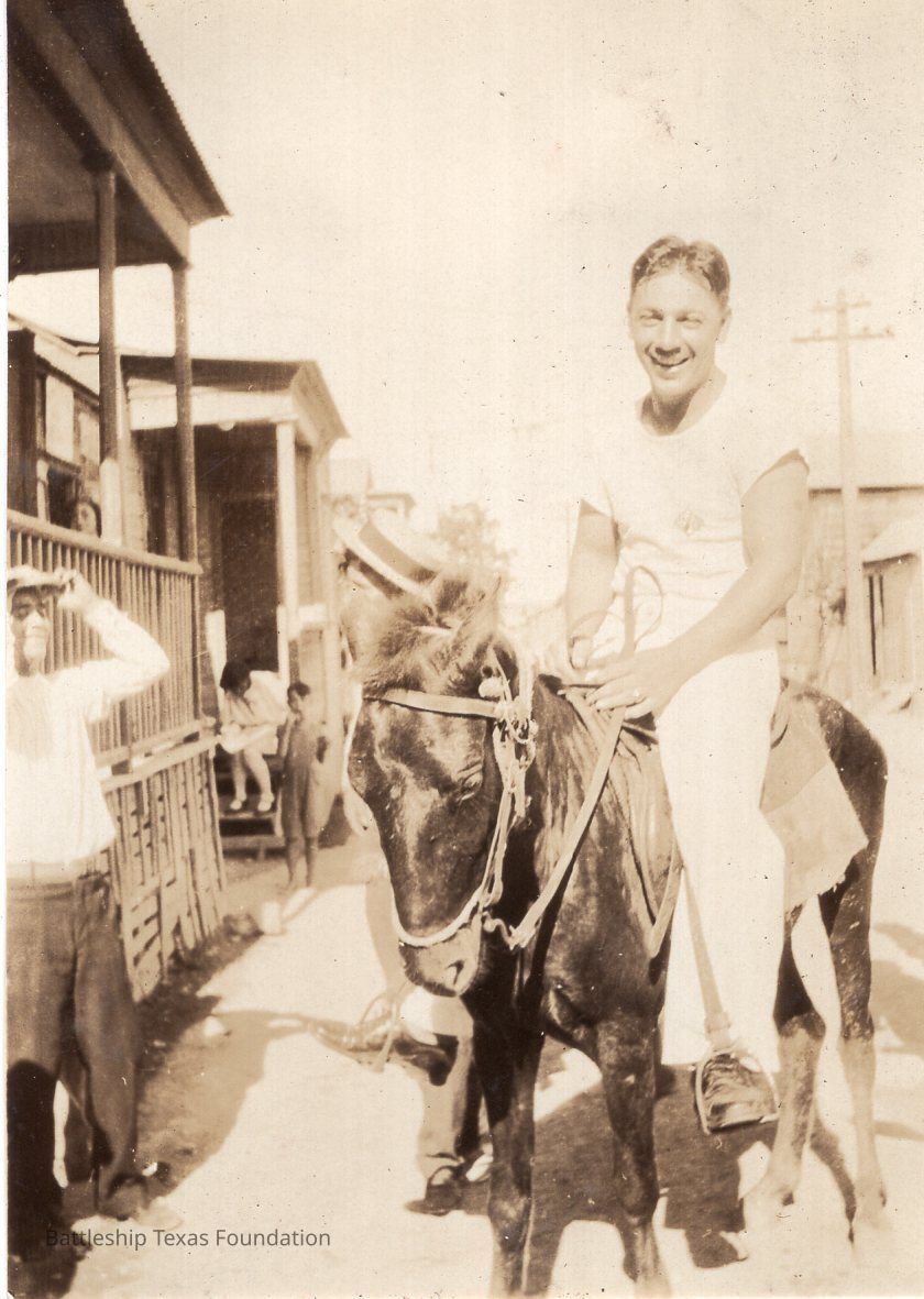 From a donated collection of individual photographs and pages out of a Texas crewmember's photo album. Items donated by the Los Angeles Maritime Museum.
