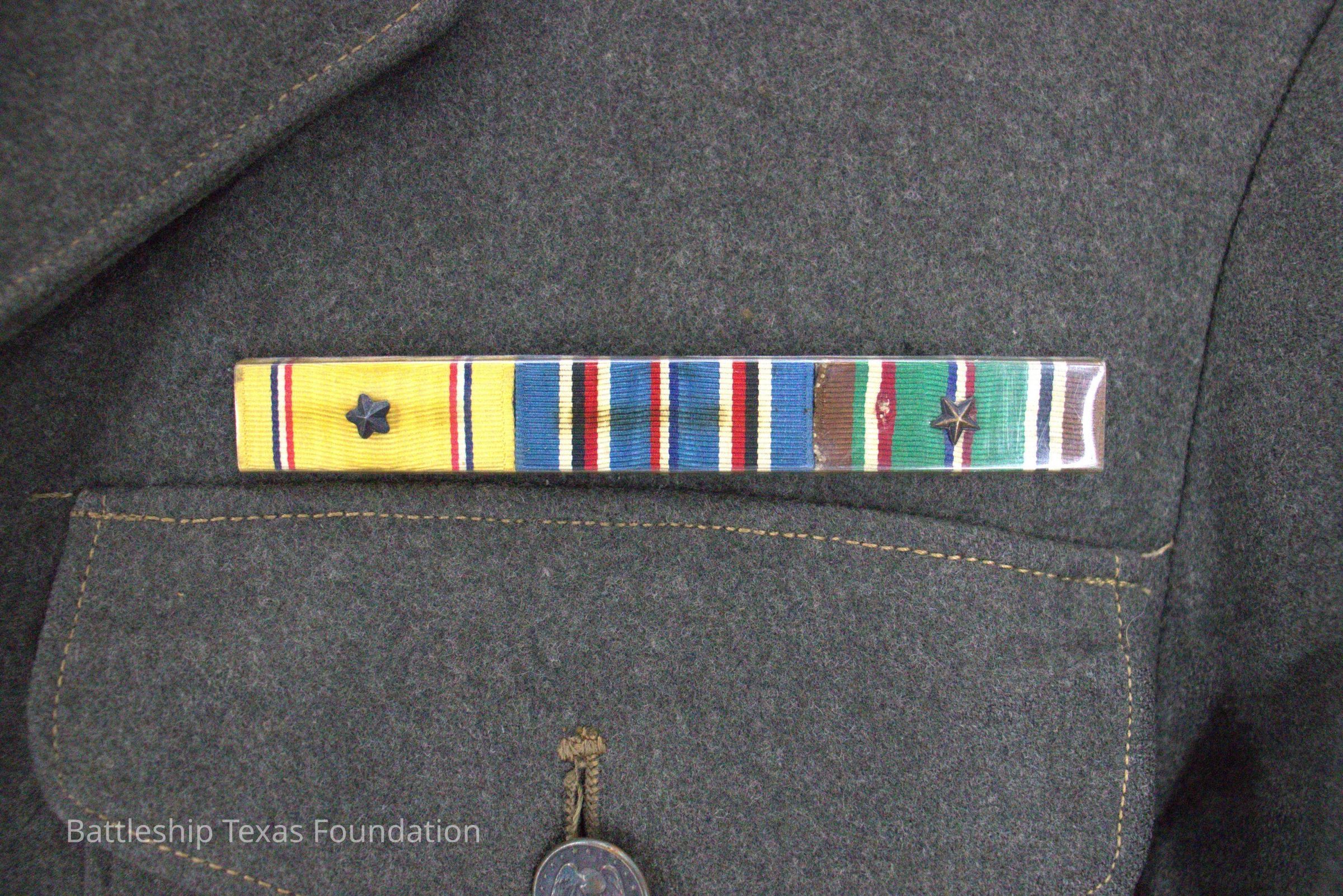 Harold E. Nichols Jr. was a draftee, called to service on July 28, 1941. He later joined the Marine Detachment on Battleship Texas from March 19, 1942, to March 17, 1944, participating in Operation “Torch,” and served throughout the rest of World War II.