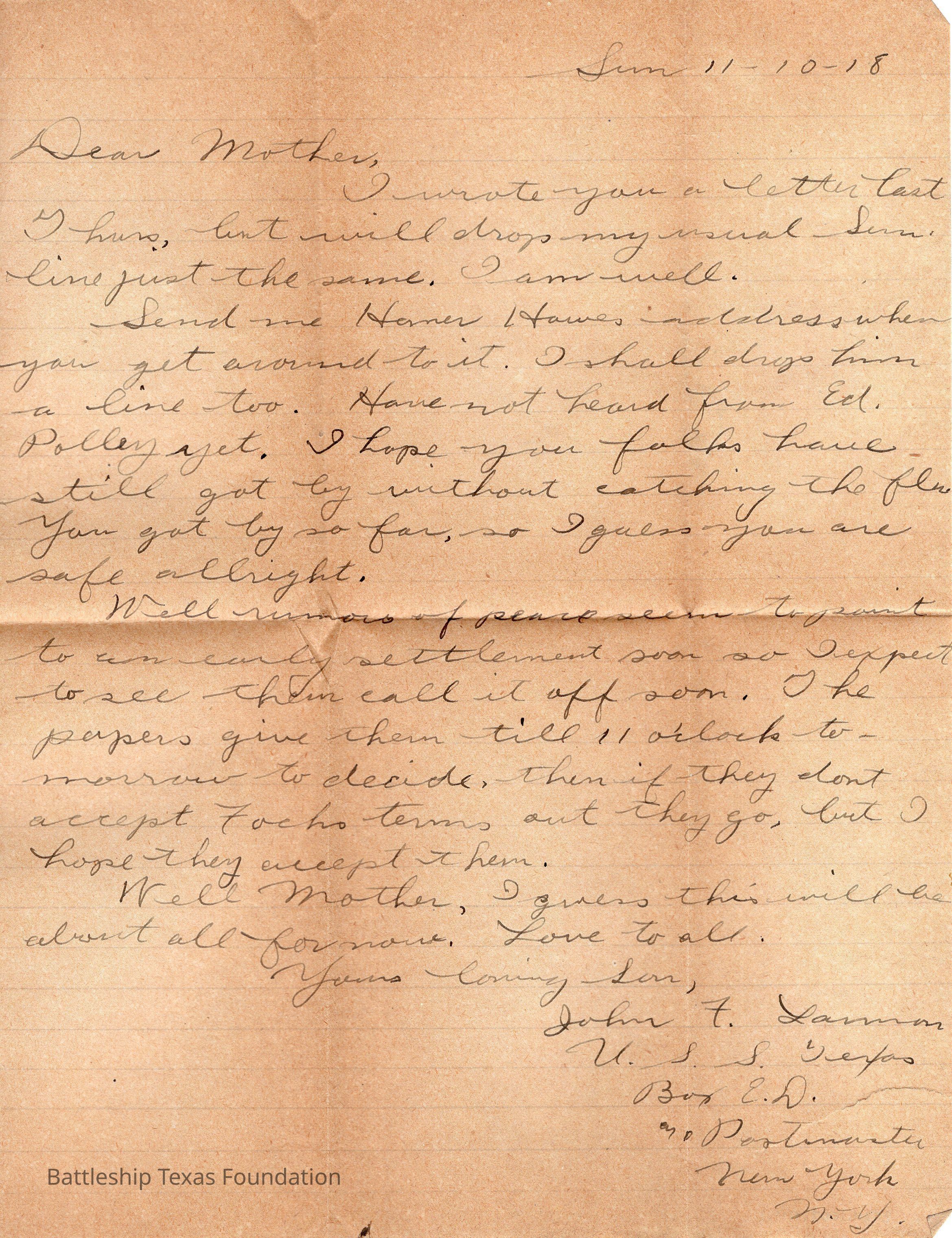Lamson 1918/11/10 letterEntry/Object ID