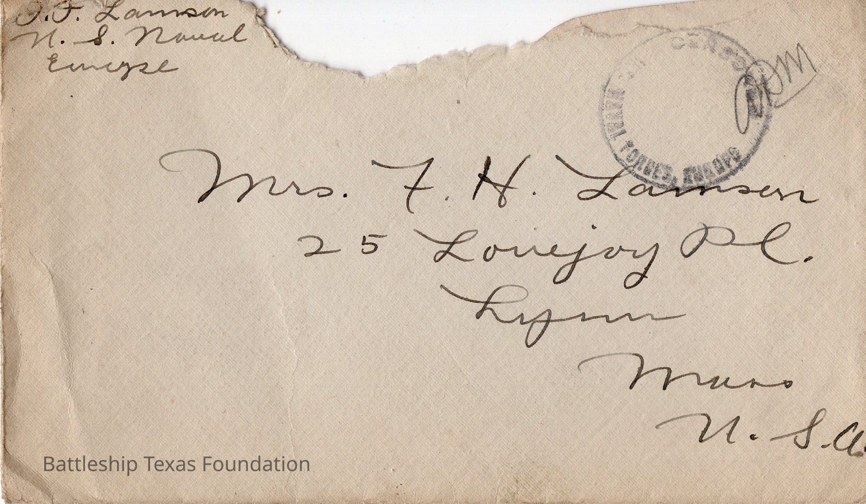 Battleship Texas had her own post office. All mail passed through a censor before leaving the ship. Once the package is checked, it was stamped with a “U.S.S. TEXAS” stamp. If in a port, mail could carry the markers of the post office on shore.Collection