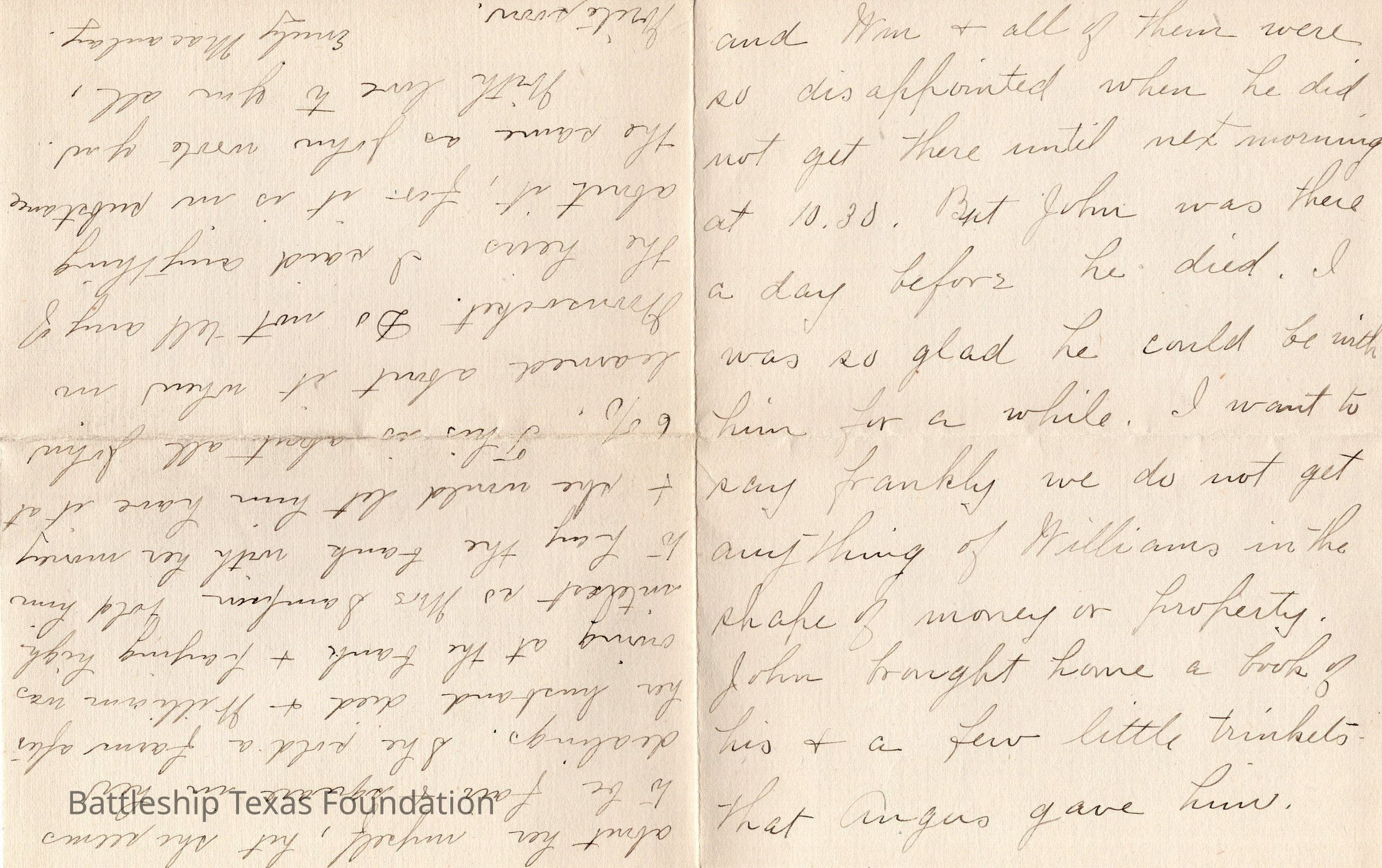 John Lamson was a MM1c on Battleship Texas from May 1917 to June 1919. Throughout his time on Texas, he sent a letter to his family at least once a week, often more. Longer stretches of absence are explained either by movement across the Atlantic, or with the Grand Fleet.
