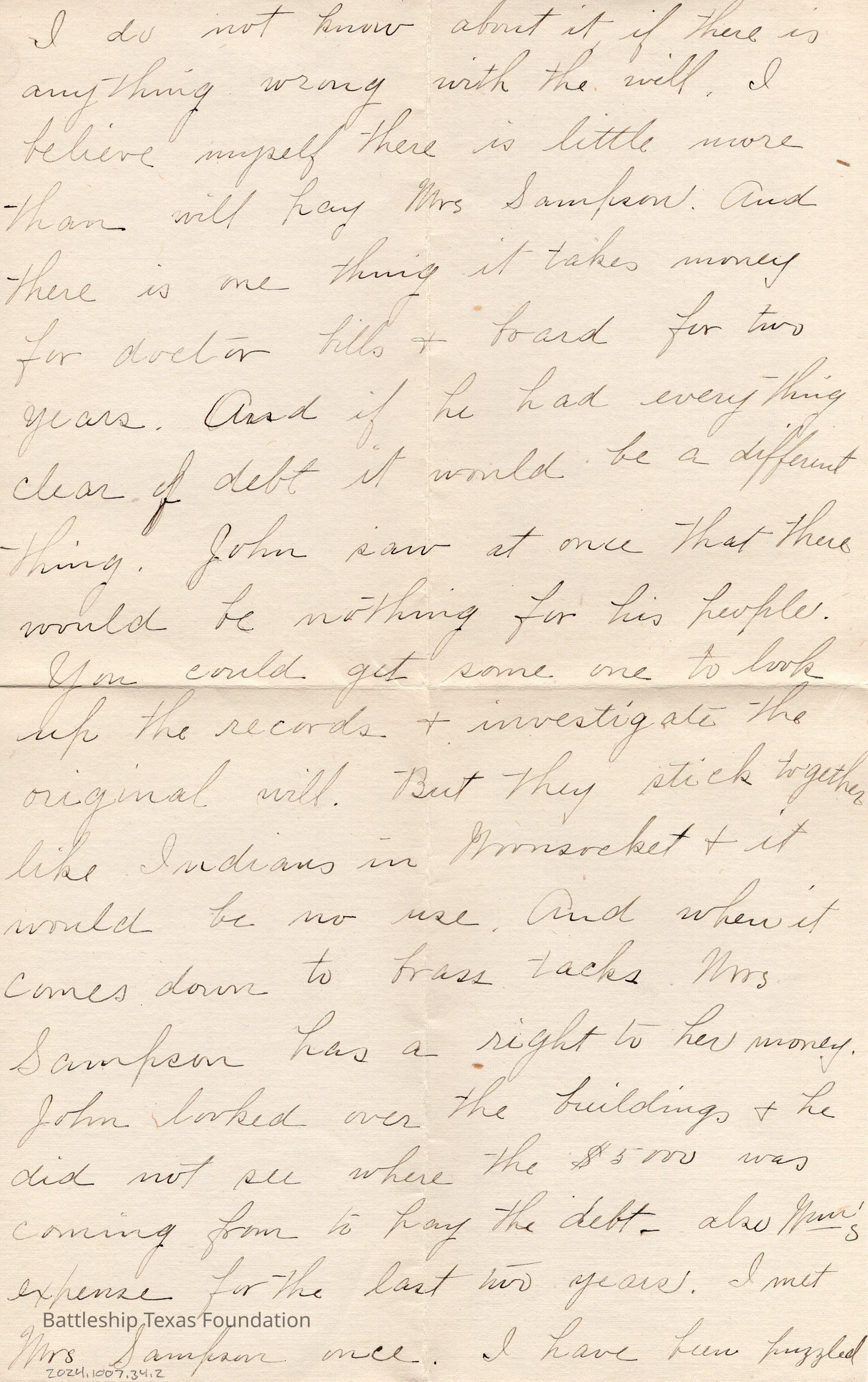 second page of 2024.1007.34 letter addressed to Mary (Oct. 1, 1917). Order of reading: right side of front page, full back page, and left side of front page.Context