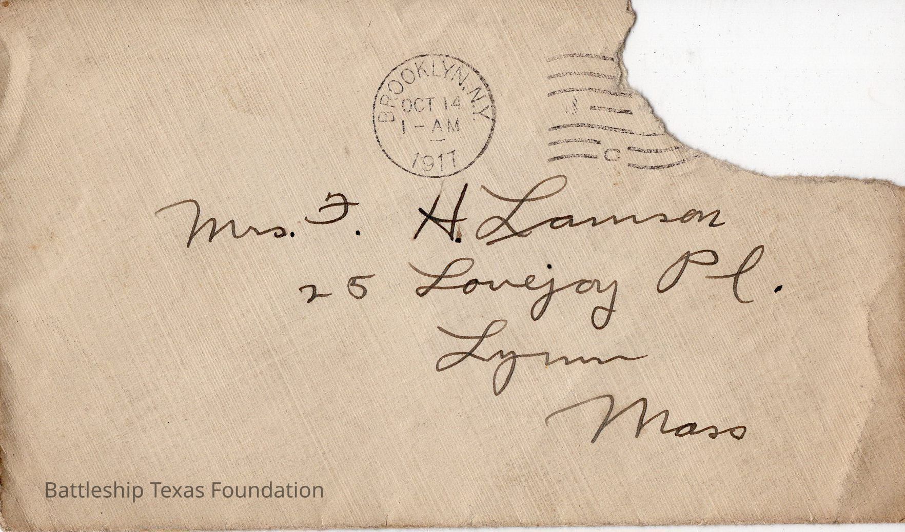 Stamped "BROOKLYN, NY OCT 14 1-AM 1917" and top right corner torn offContext