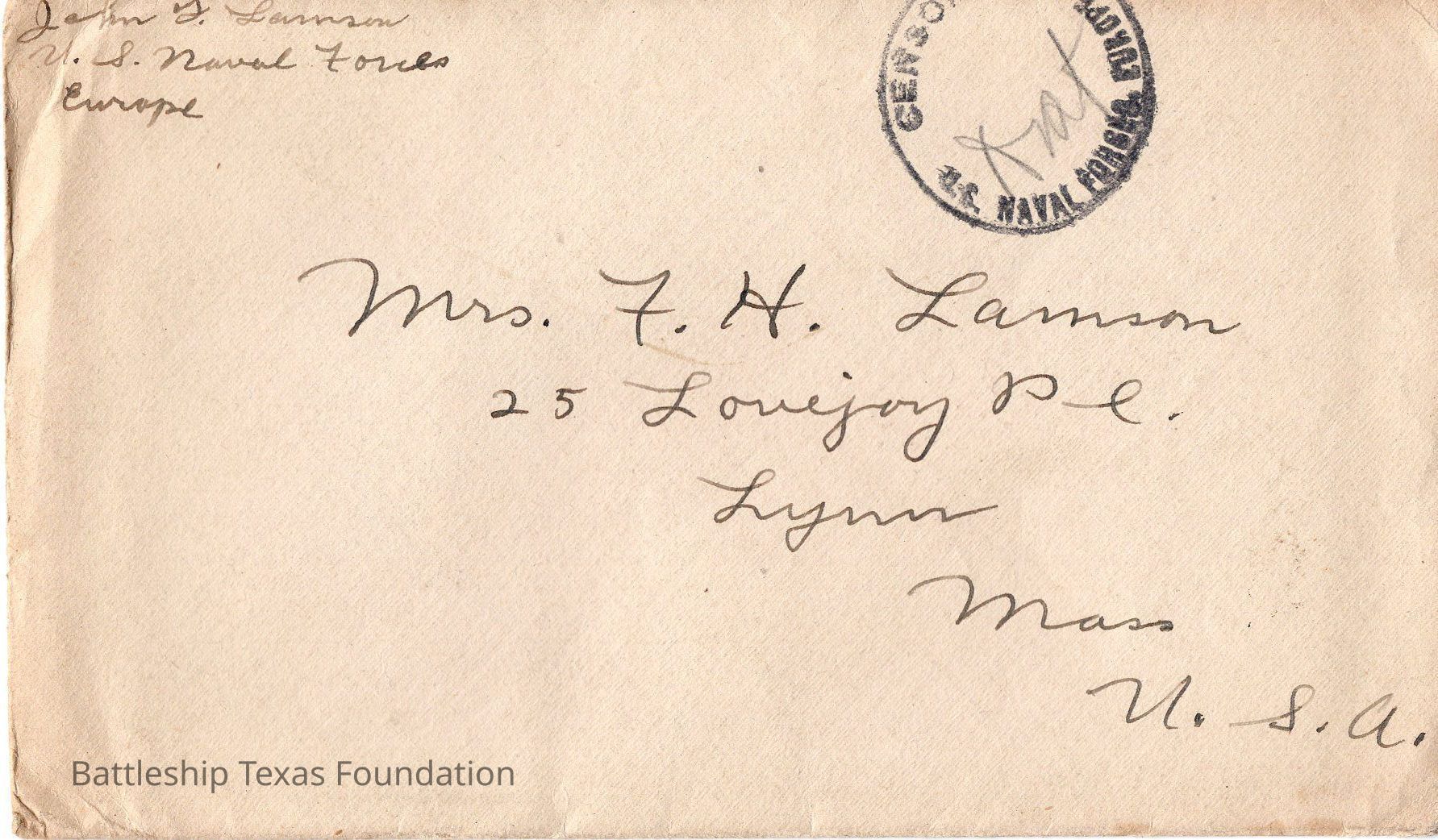 Envelope stamped "CENSORED U.S. NAVAL FORCES. EUROPE"Context