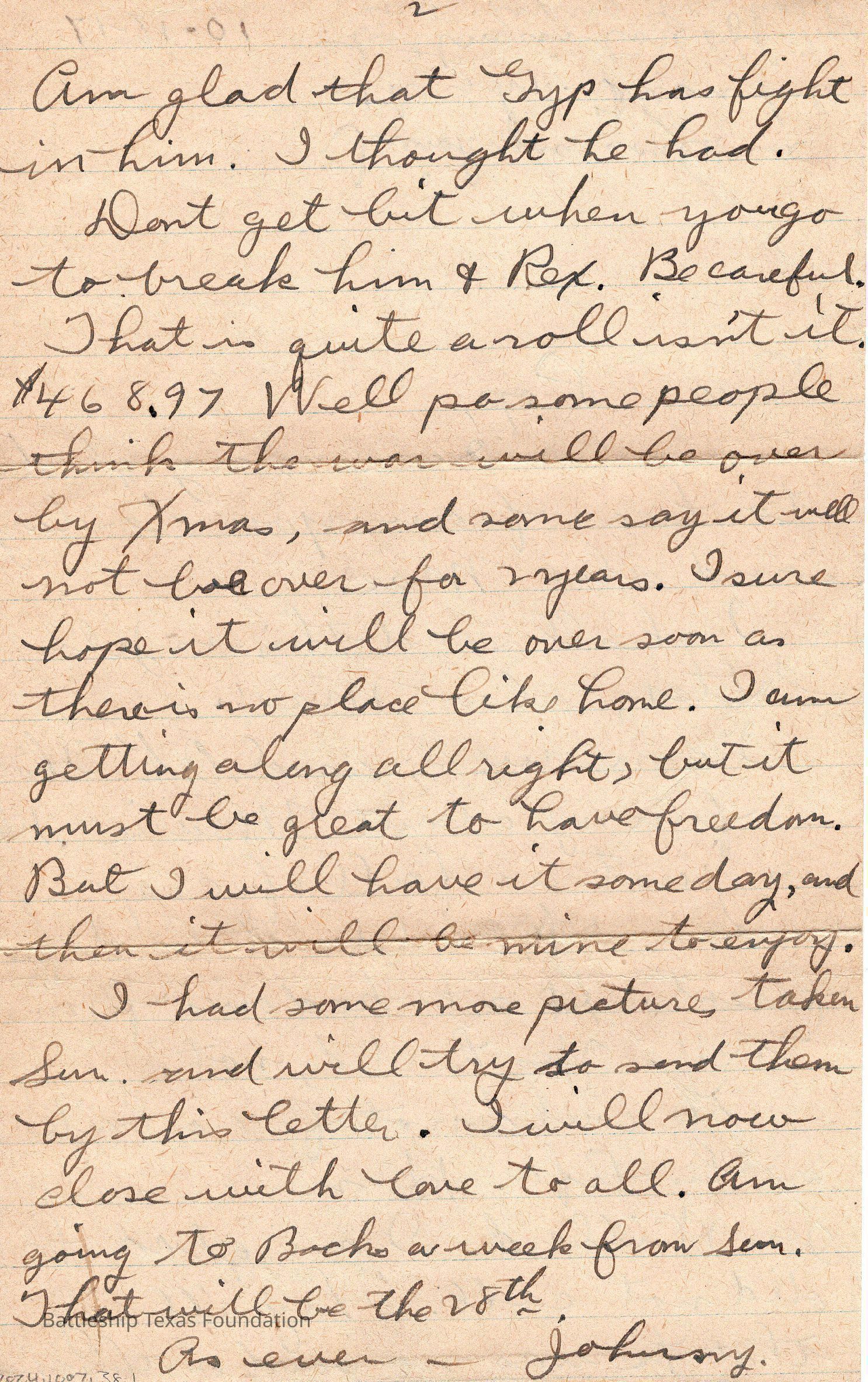 John Lamson was a MM1c on Battleship Texas from May 1917 to June 1919. Throughout his time on Texas, he sent a letter to his family at least once a week, often more. Longer stretches of absence are explained either by movement across the Atlantic, or with the Grand Fleet.