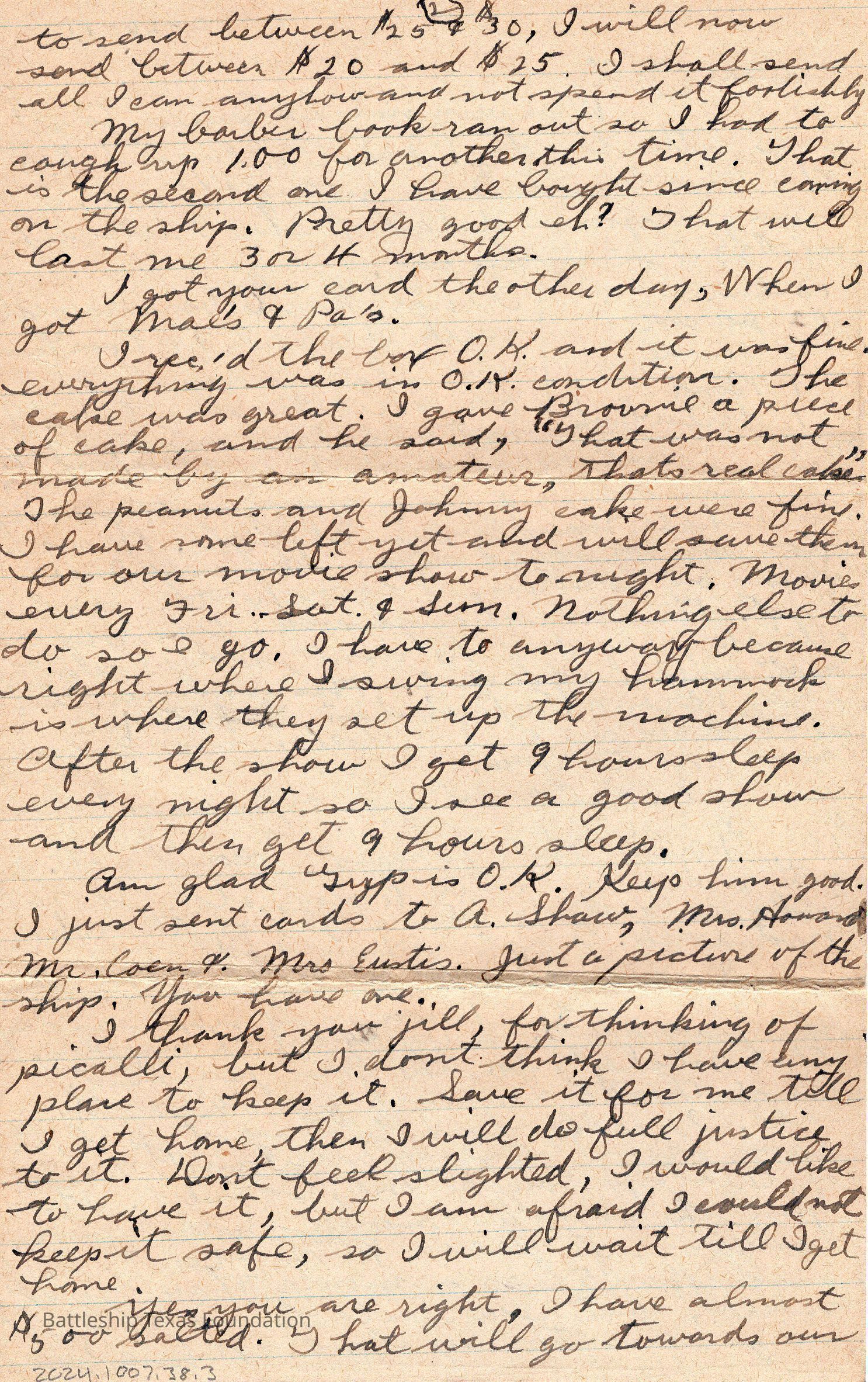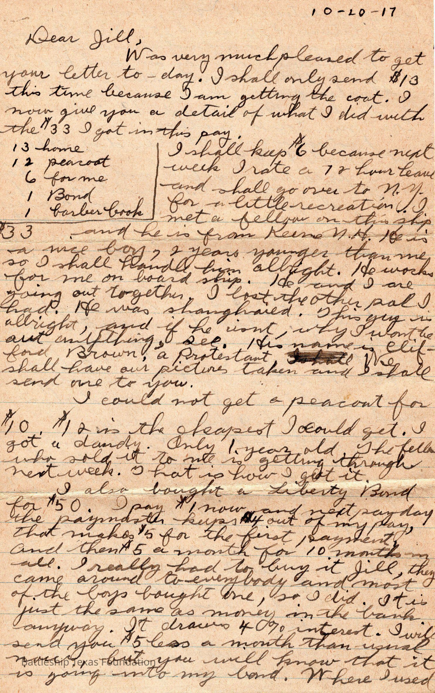 John Lamson was a MM1c on Battleship Texas from May 1917 to June 1919. Throughout his time on Texas, he sent a letter to his family at least once a week, often more. Longer stretches of absence are explained either by movement across the Atlantic, or with the Grand Fleet.