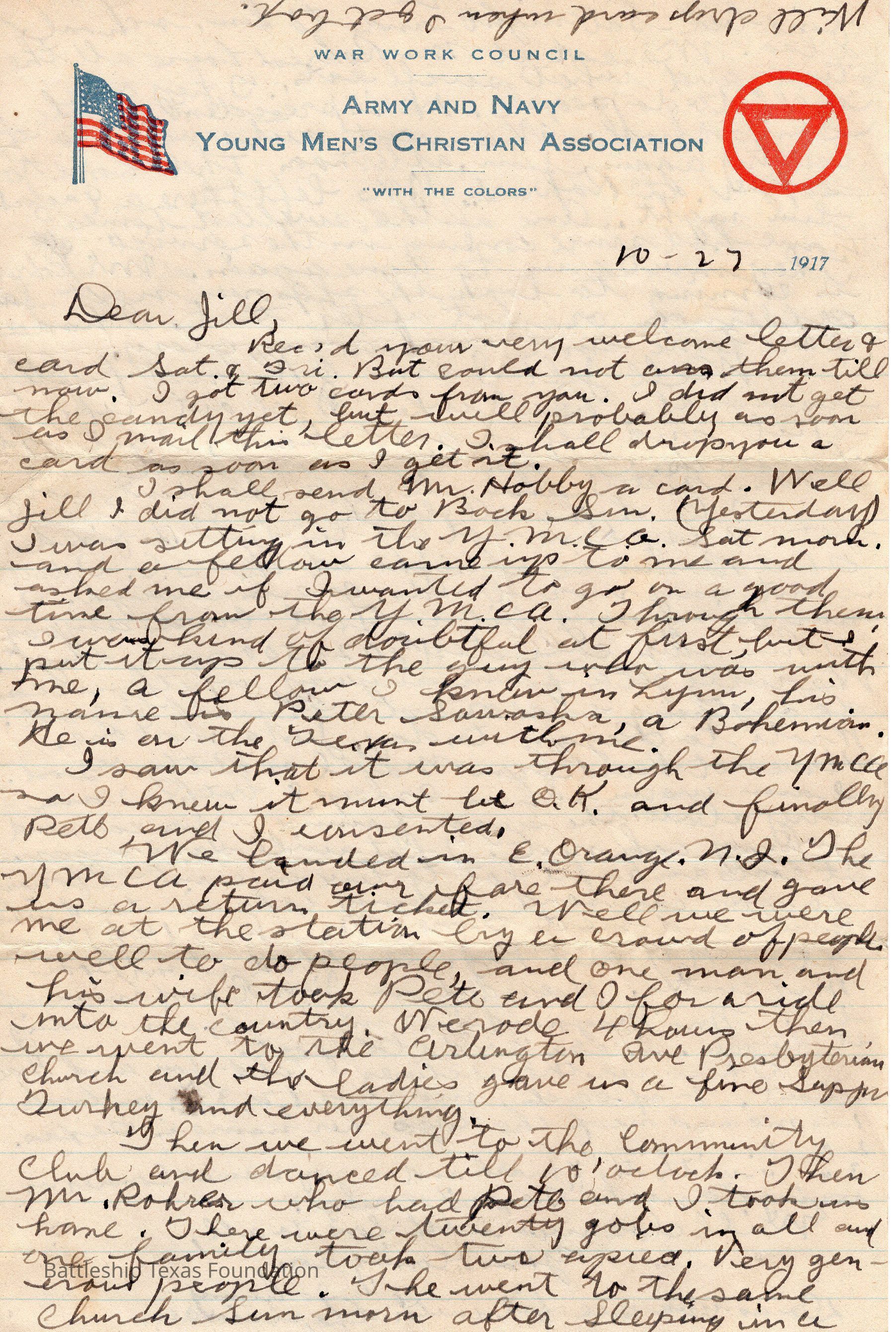 letter using Young Men's Christian Association paper. US flag top left, triangle in circle top left. Addressed to JillContext