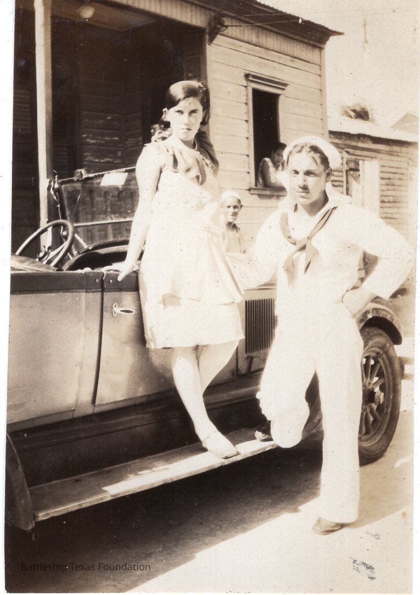 From a donated collection of individual photographs and pages out of a Texas crewmember's photo album. Items donated by the Los Angeles Maritime Museum. Many photographs had writing on the pages of the book, now discarded.