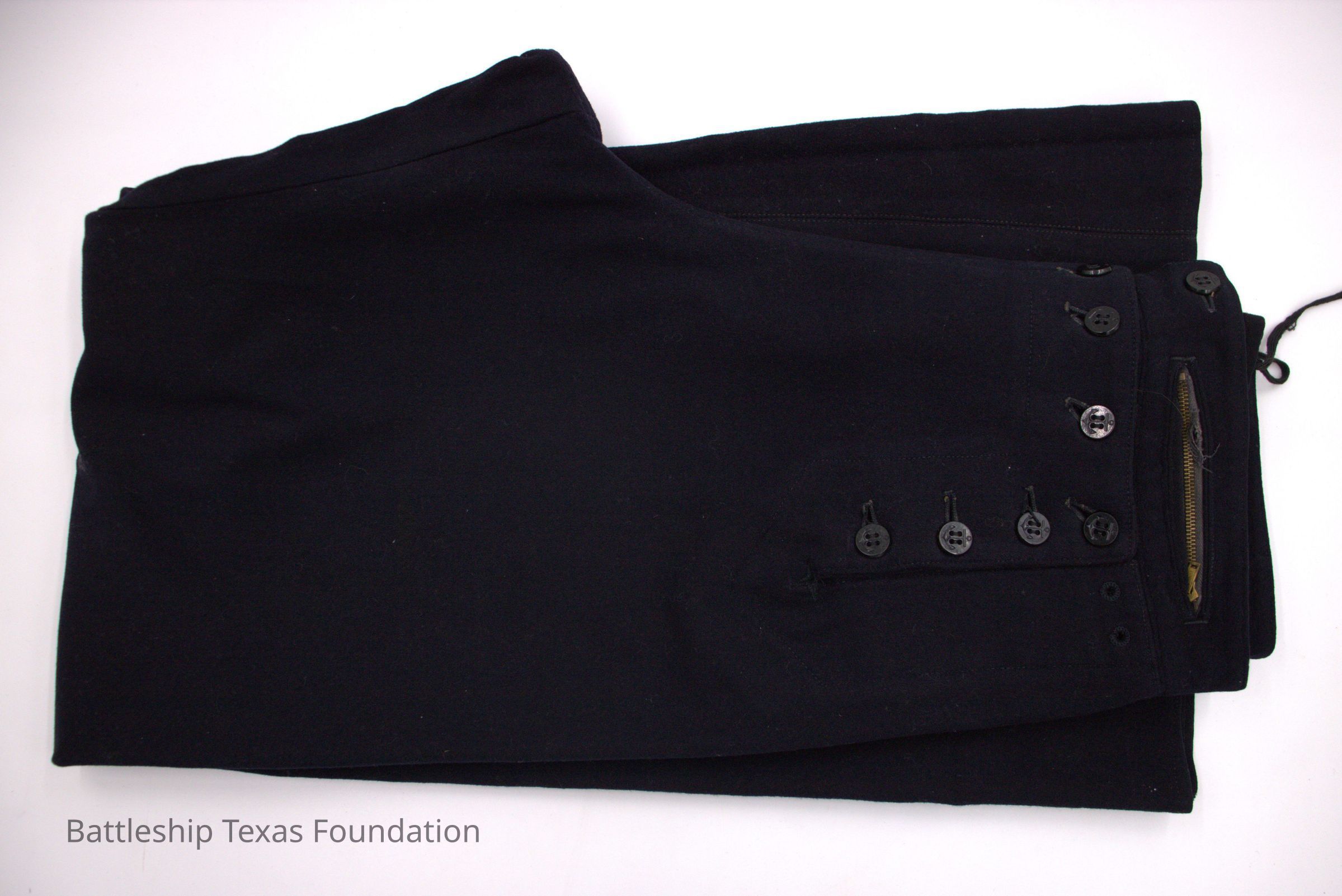 Dress Blues were the standard uniform for the enlisted sailor in the Navy, and included a jumper, trousers, white hat, and blue cap. Patches denoting sailor rate were on their right arm. Sailors also received handkerchiefs, socks, and many other articles.Collection
