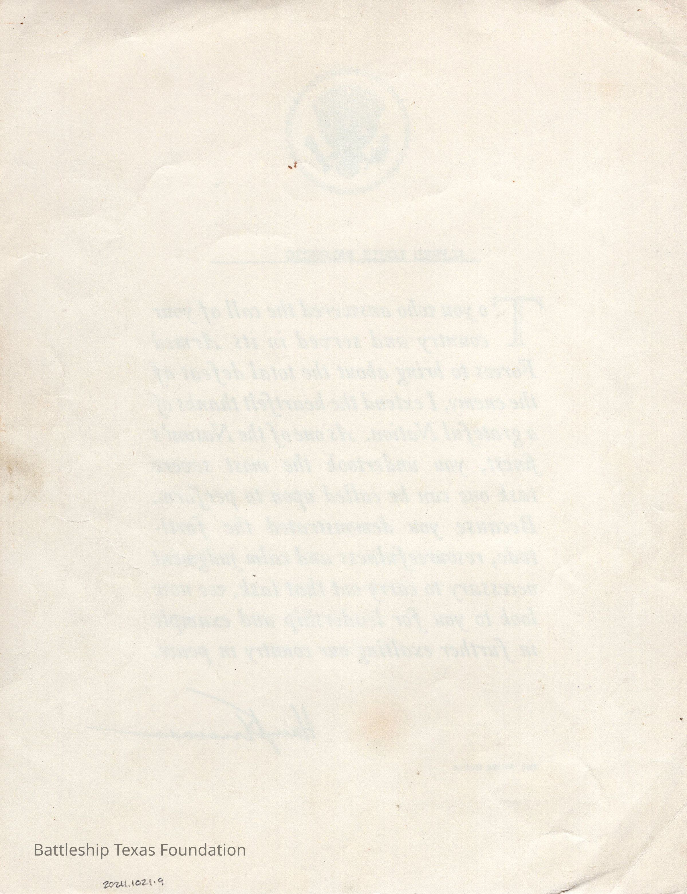 Certificate honoring Paloscio's service during WWII.