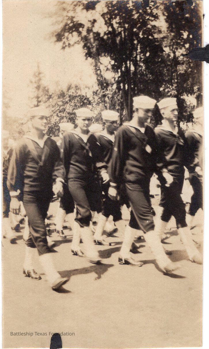 Sailors march by camera. Dated July 4, 1918.Context