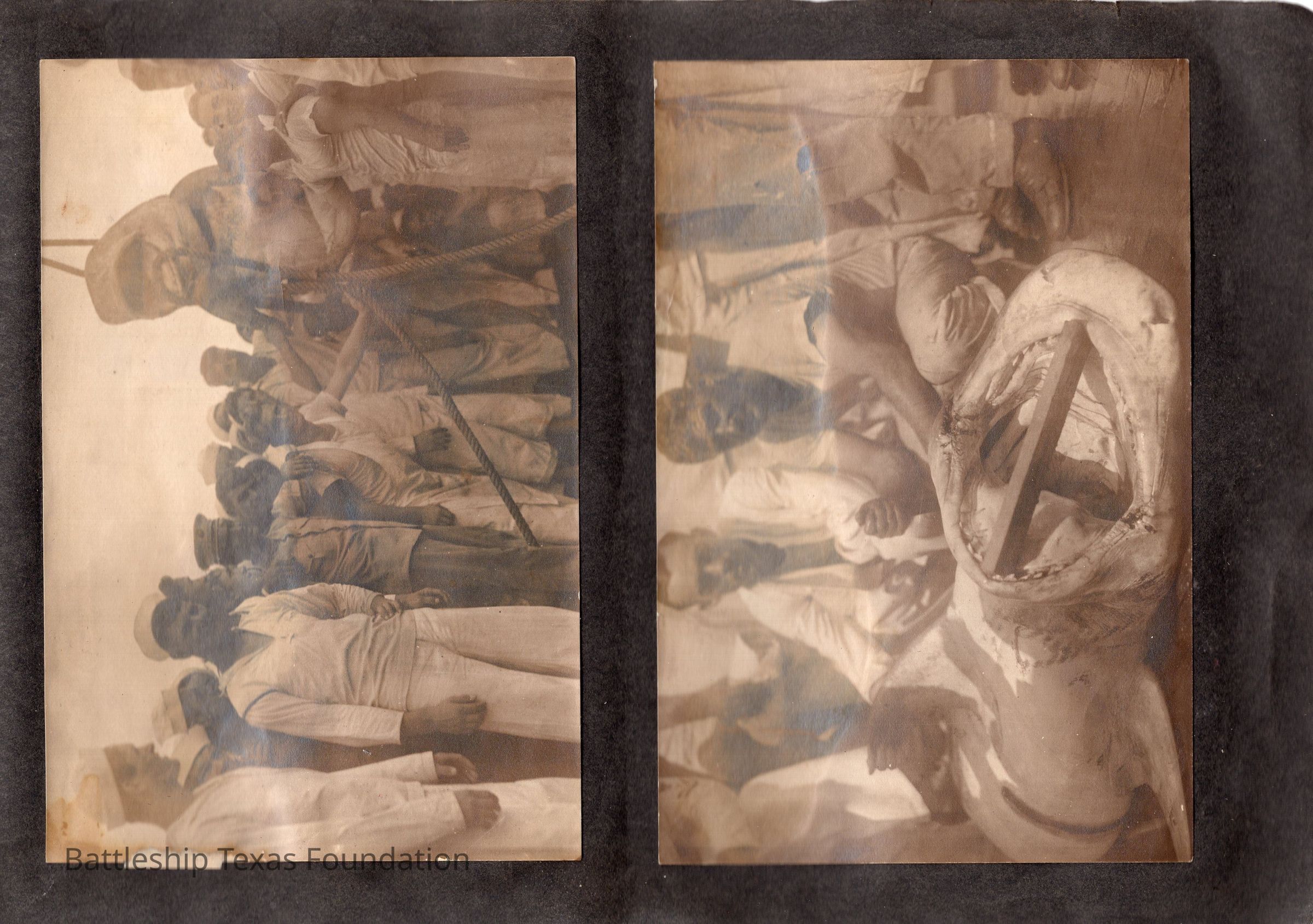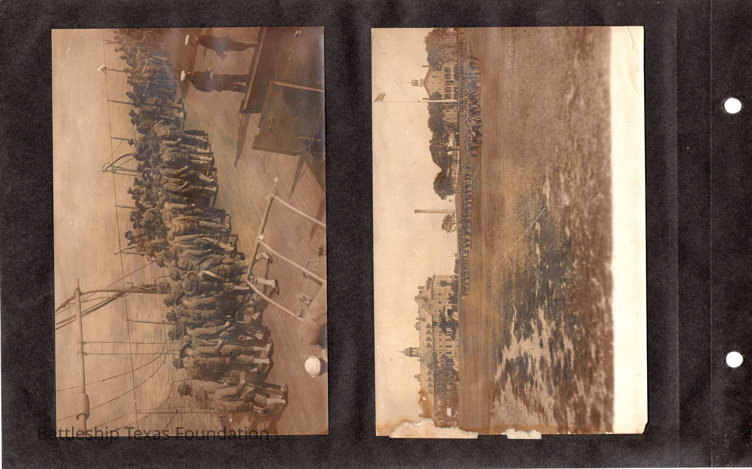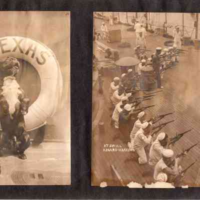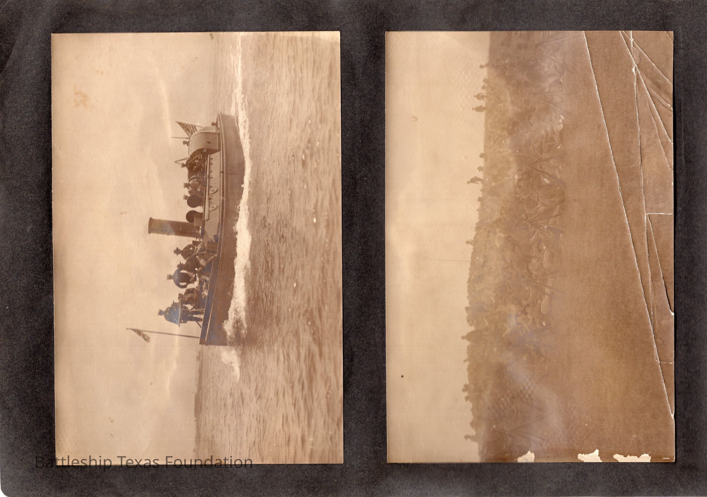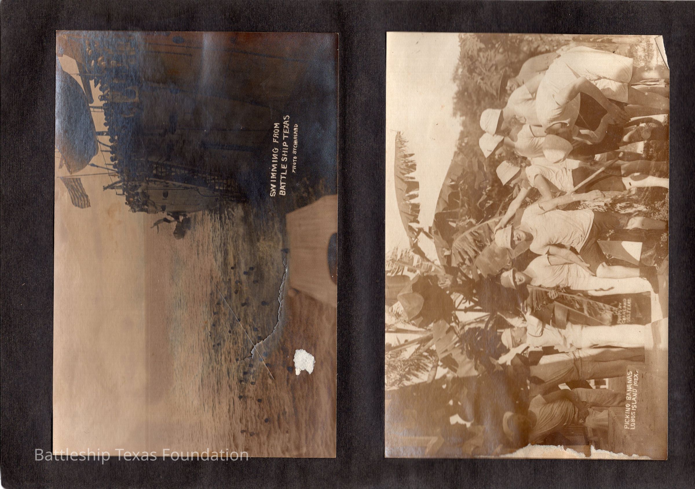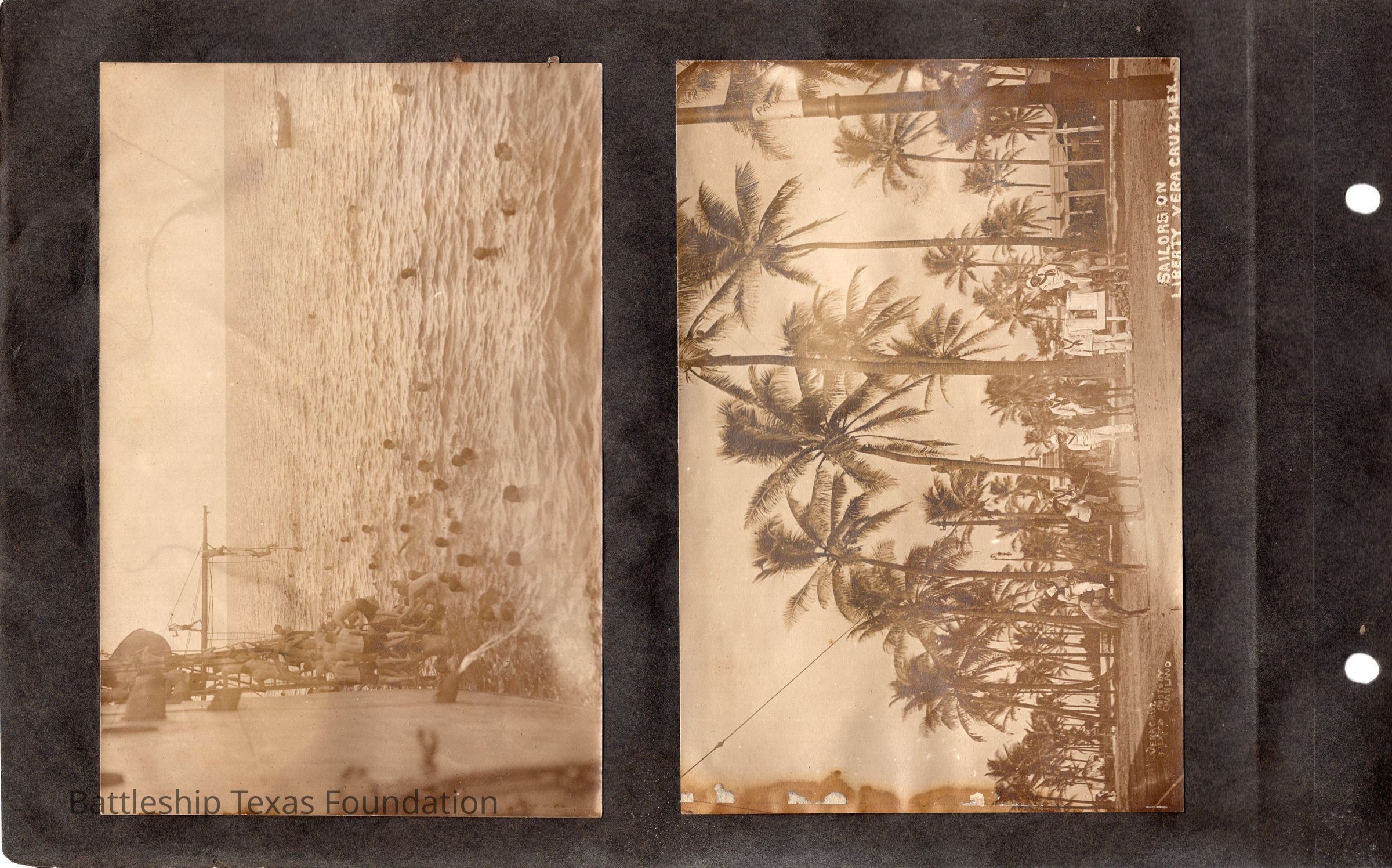 The photo album of Samuel D. Miller is considerably water damaged. The album dates to the commissioning and beyond into Galveston and Mexico throughout 1914. The string binding the album has been altered to account for fraying at the ends.Context