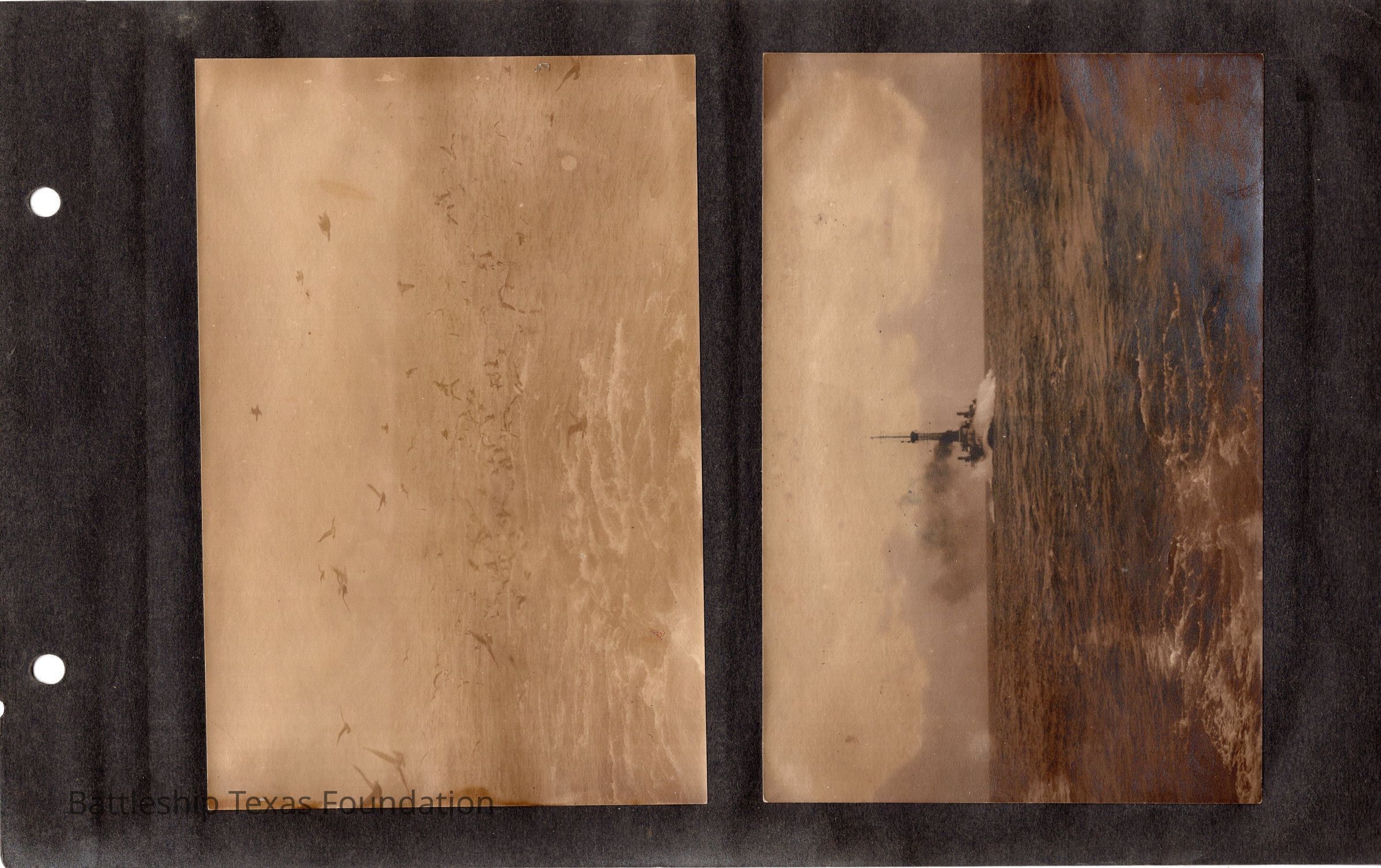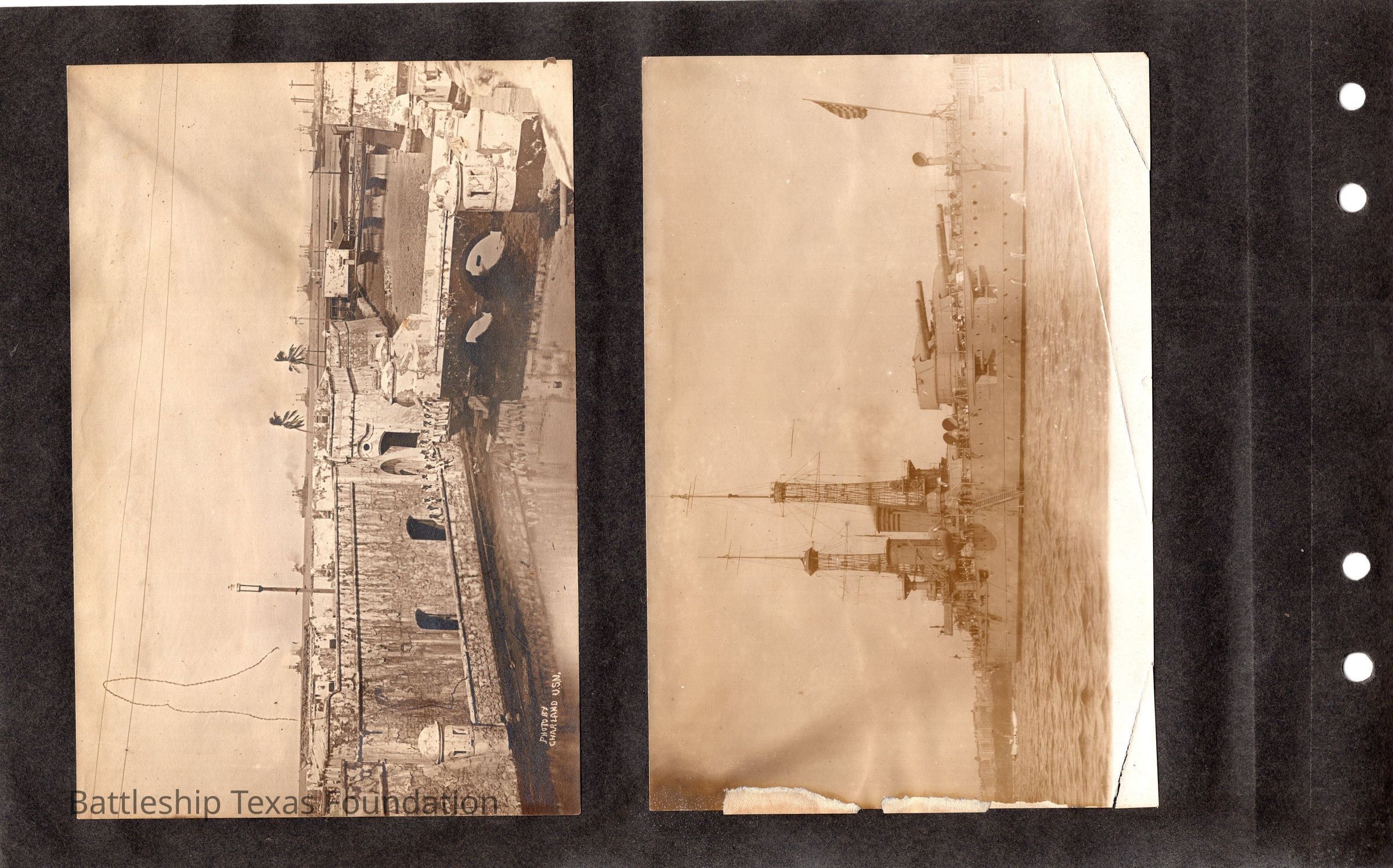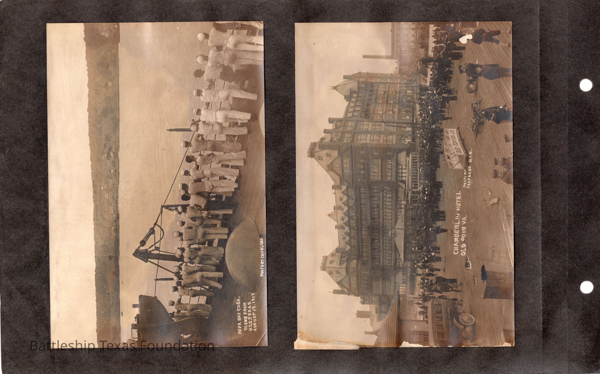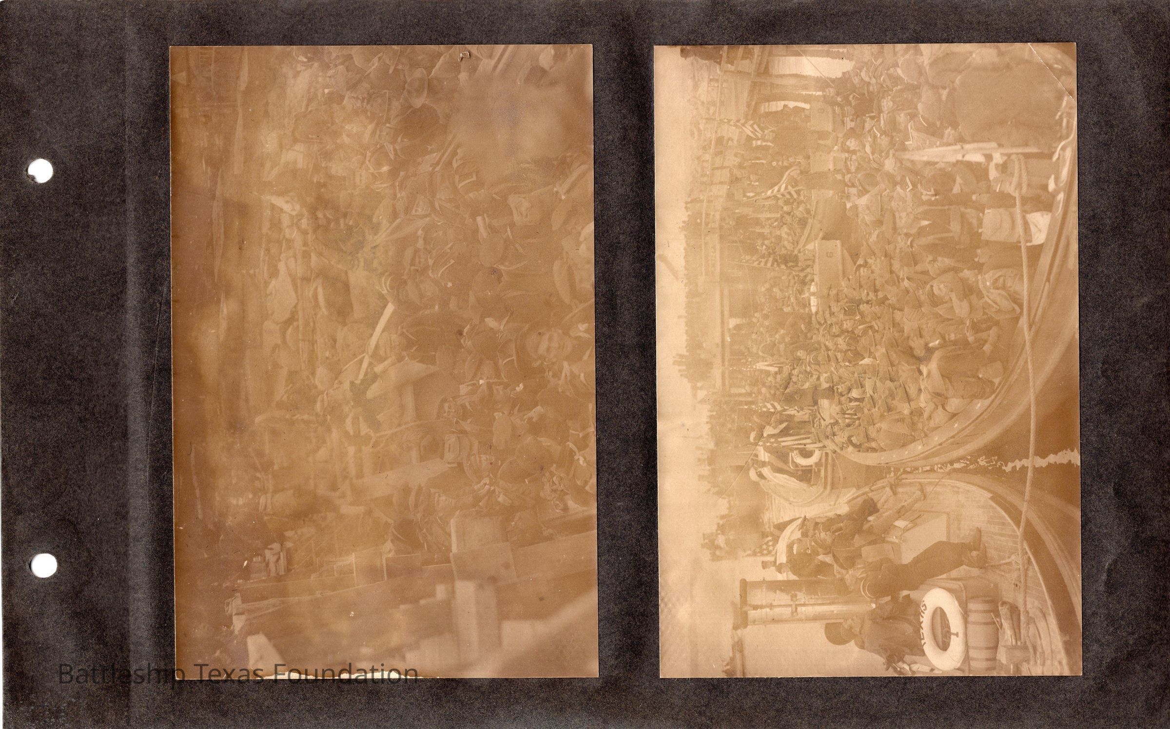 The photo album of Samuel D. Miller is considerably water damaged. The album dates to the commissioning and beyond into Galveston and Mexico throughout 1914. The string binding the album has been altered to account for fraying at the ends.Context