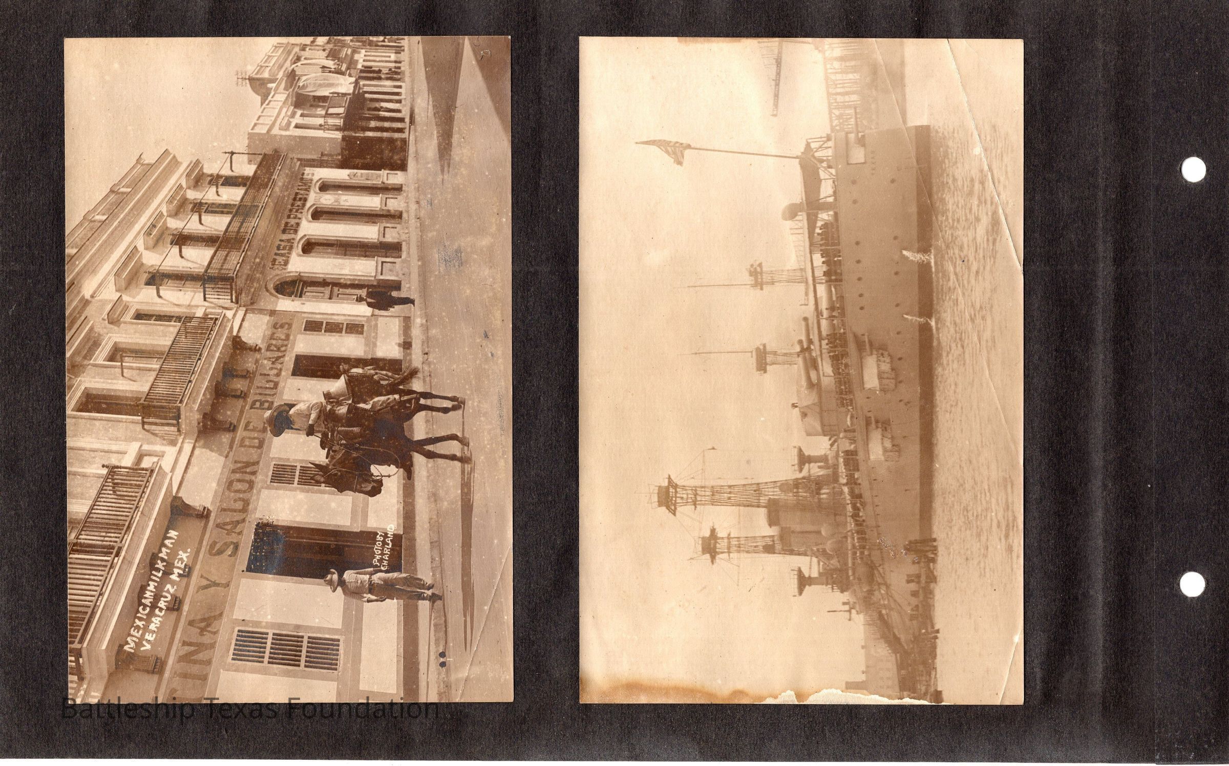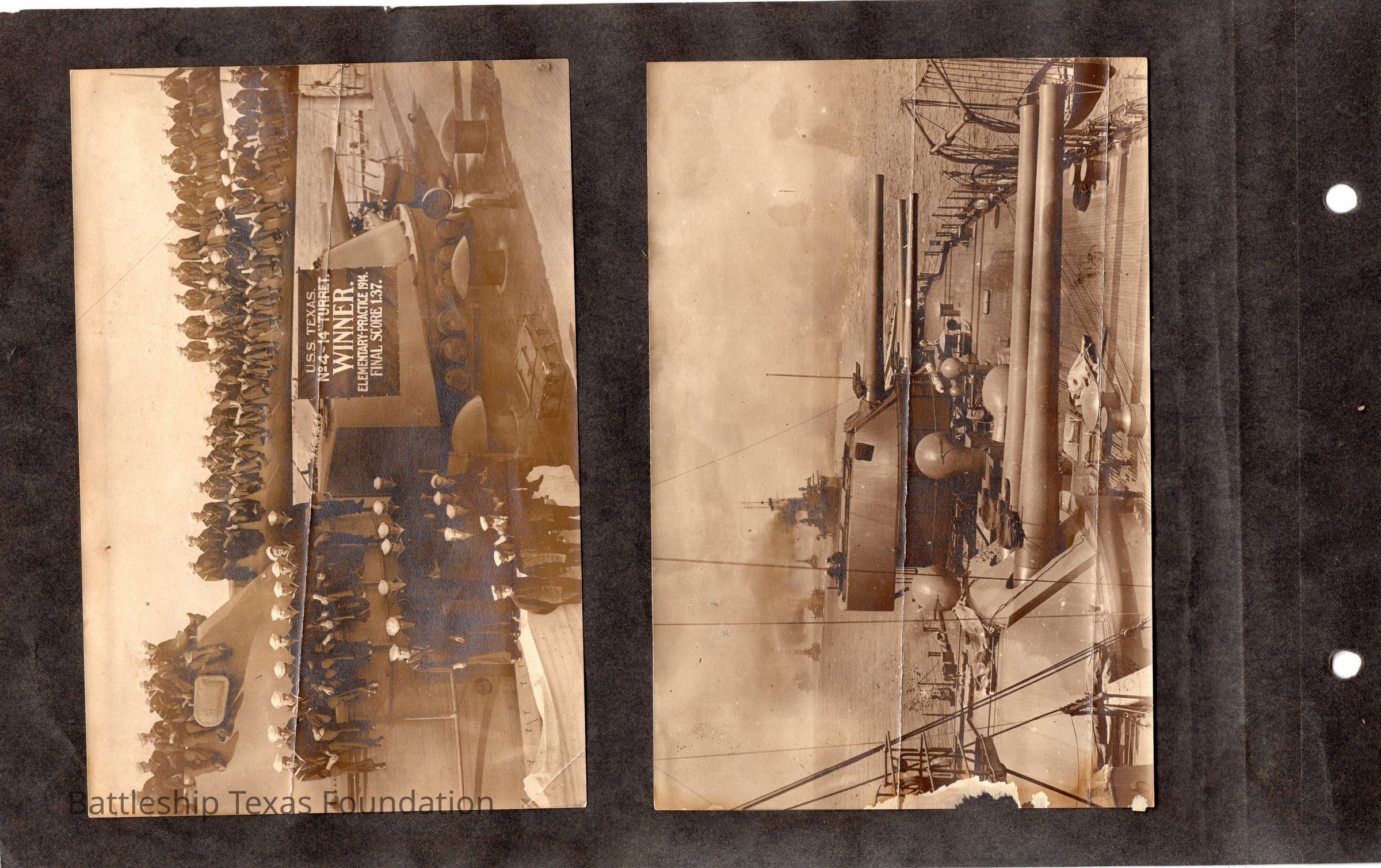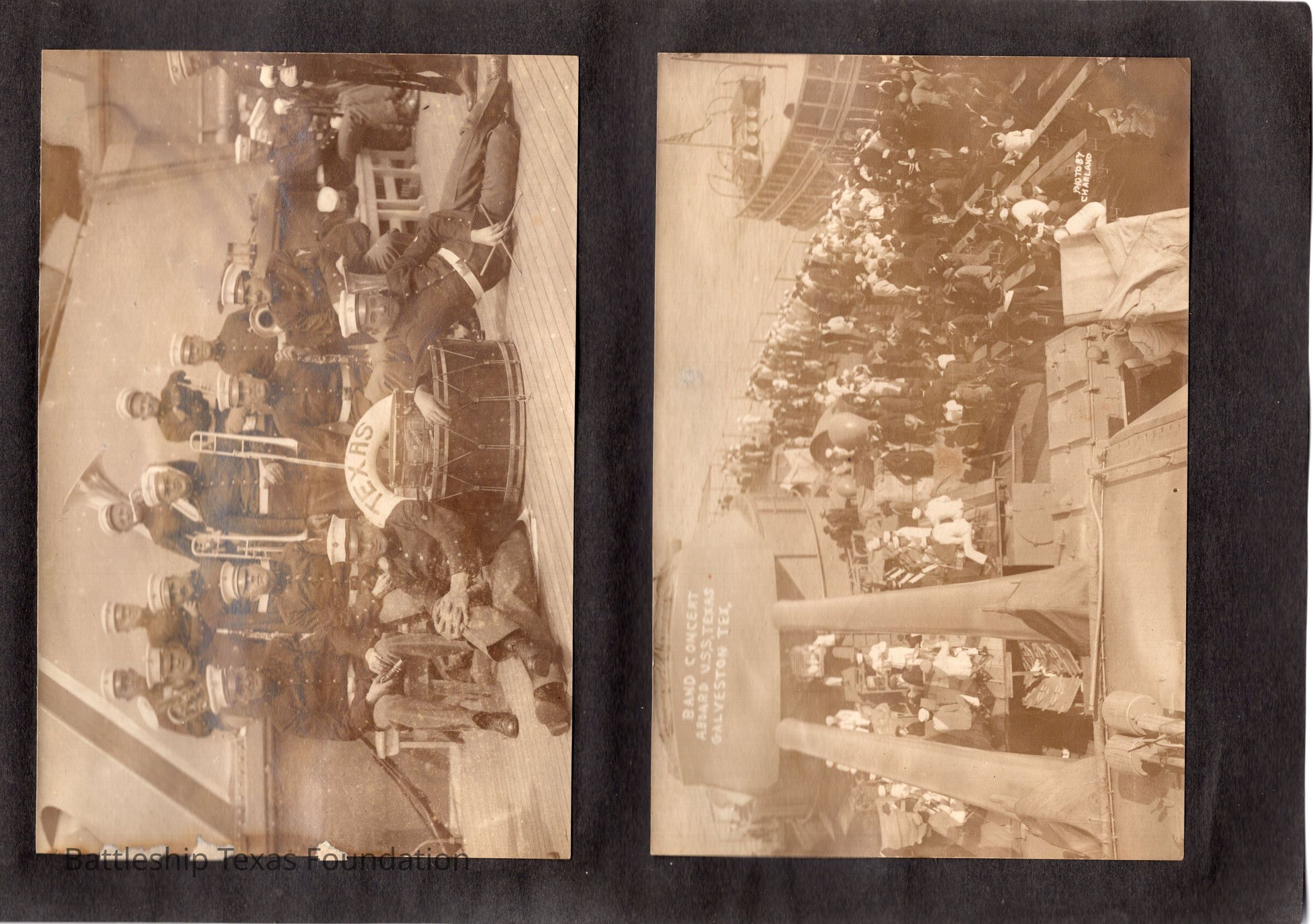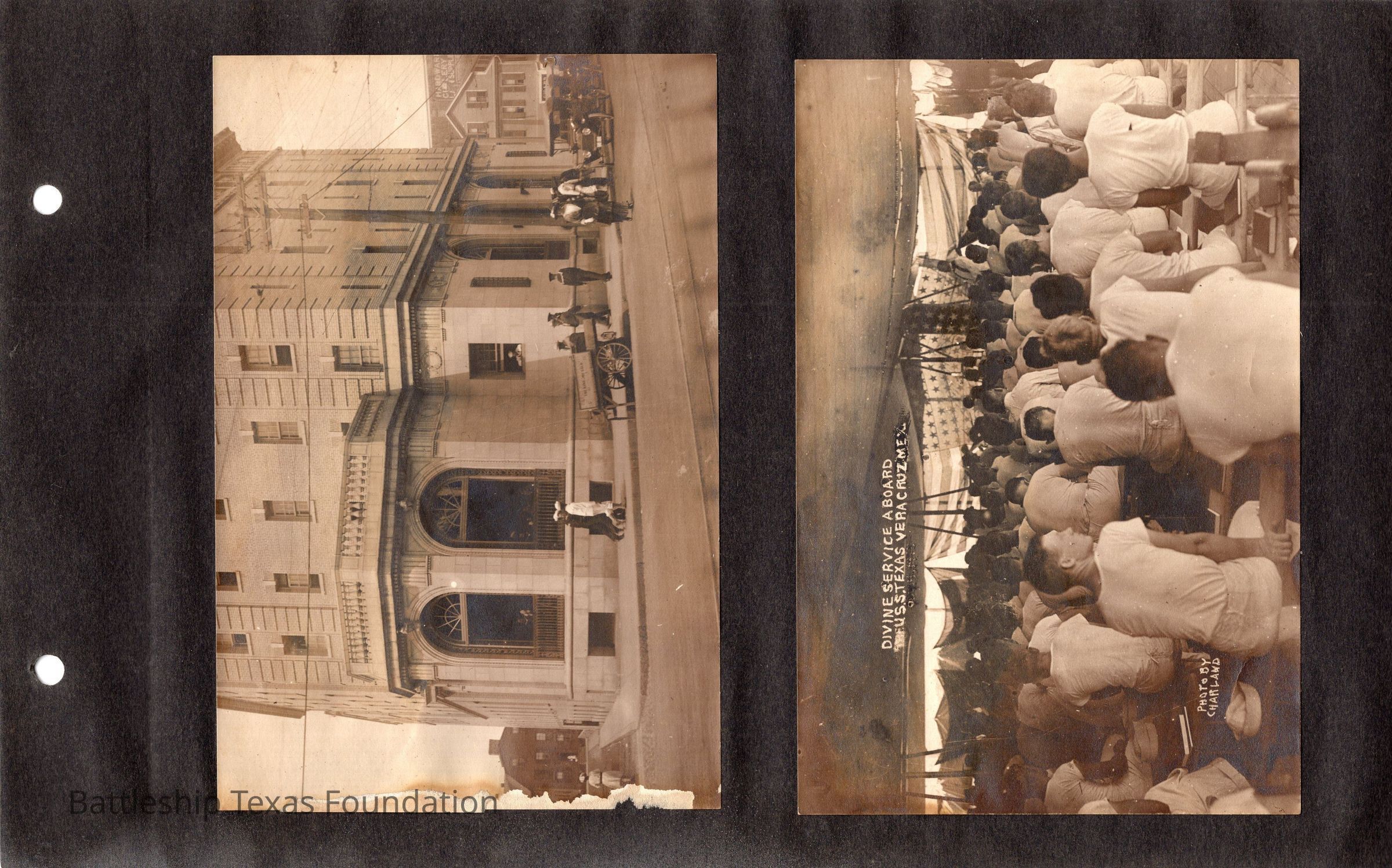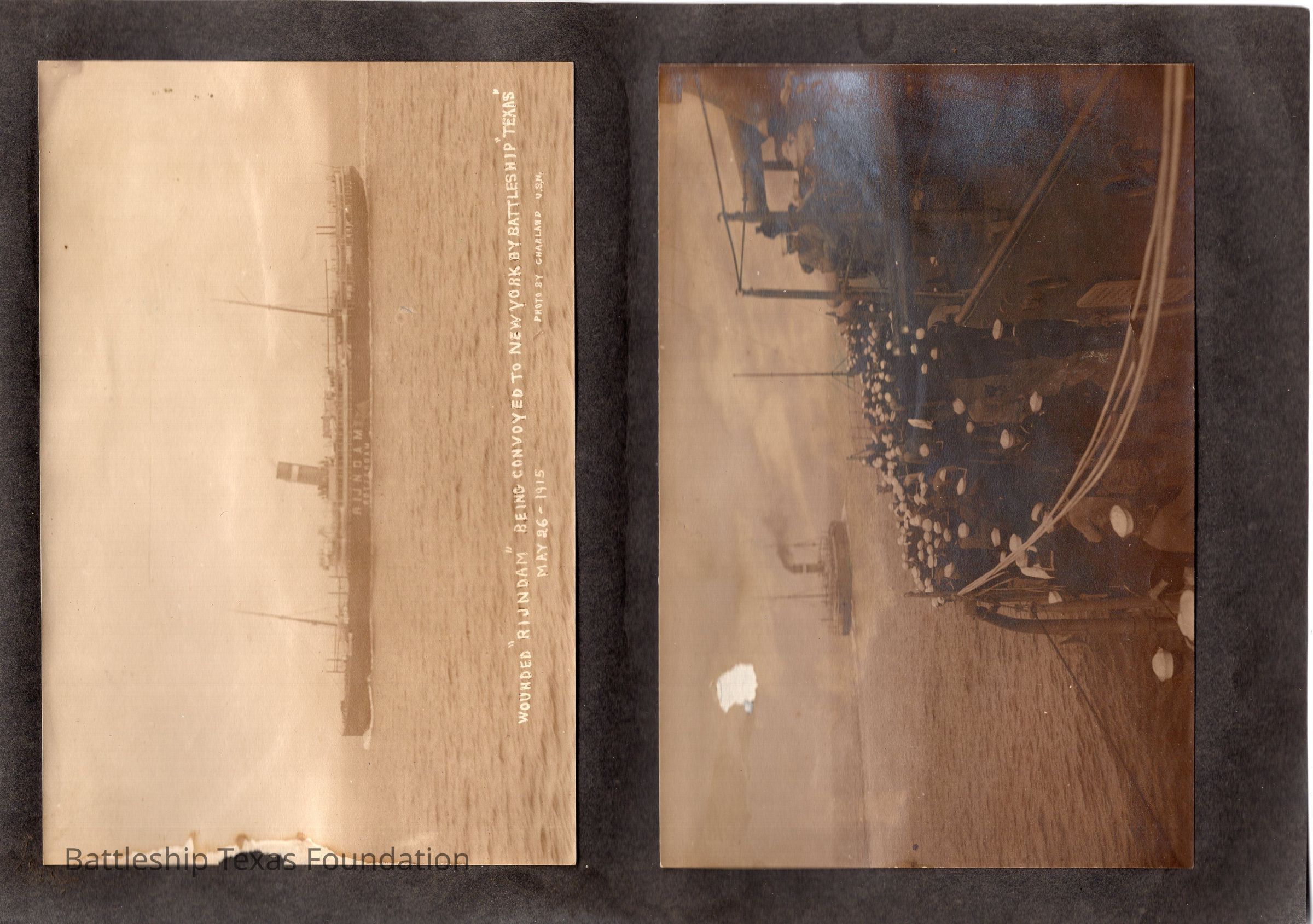 The photo album of Samuel D. Miller is considerably water damaged. The album dates to the commissioning and beyond into Galveston and Mexico throughout 1914. The string binding the album has been altered to account for fraying at the ends.Context