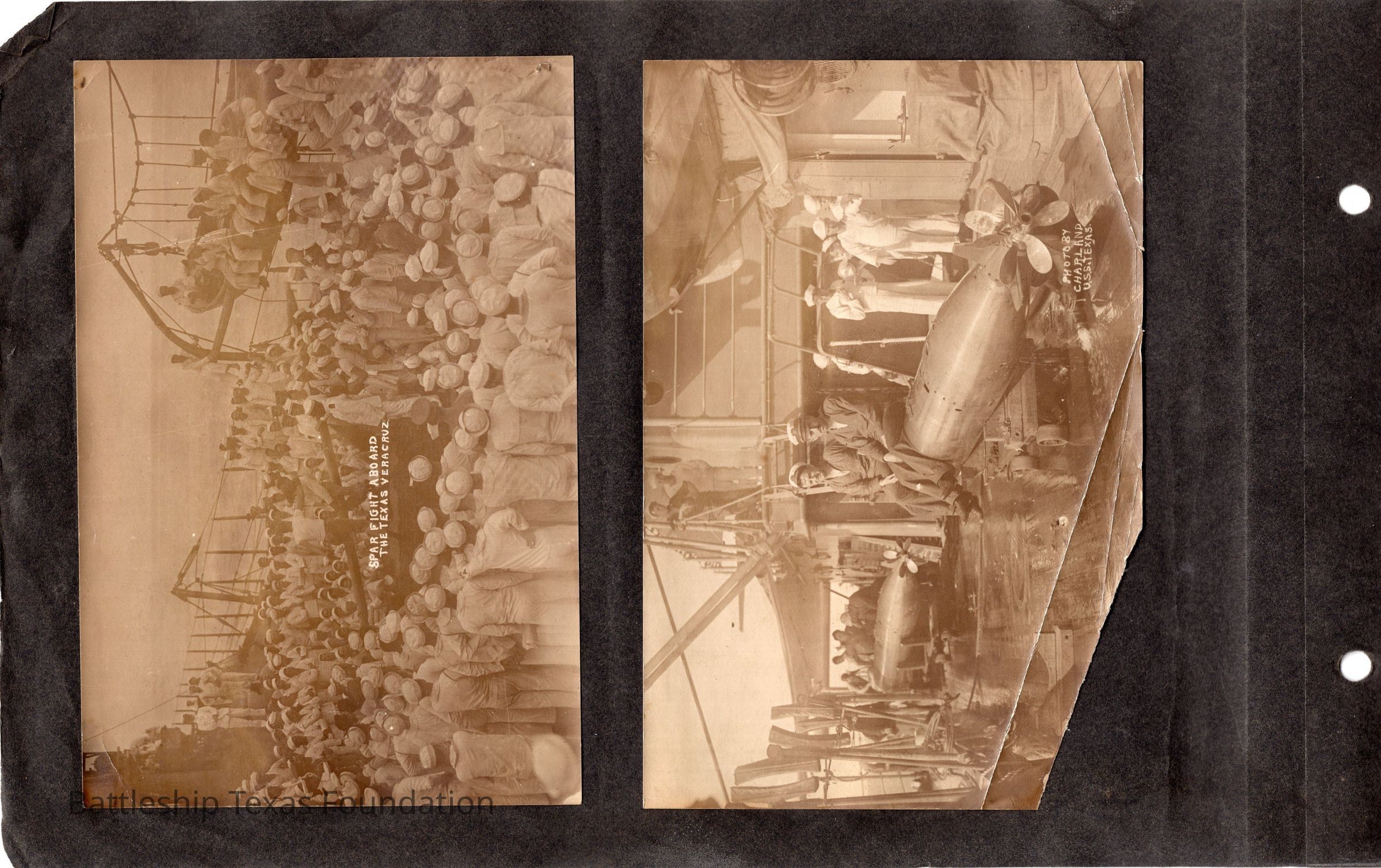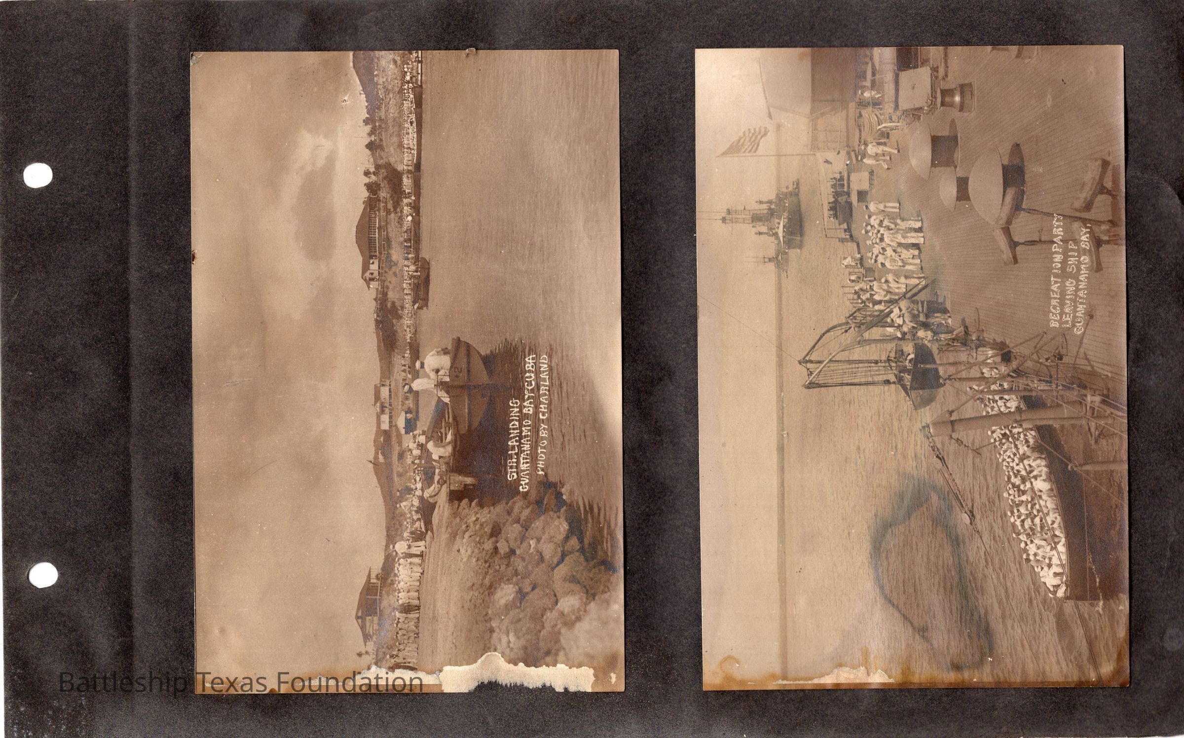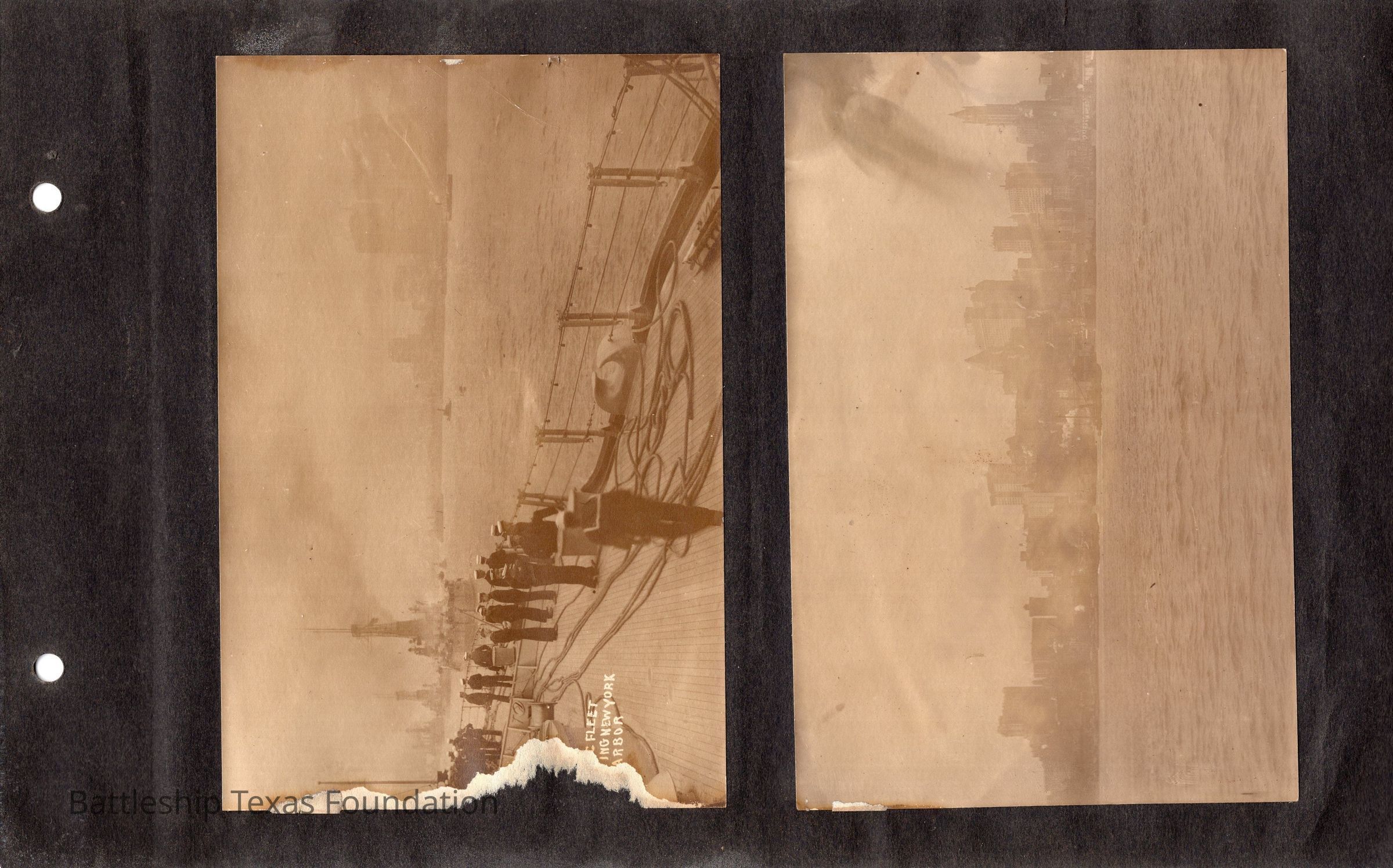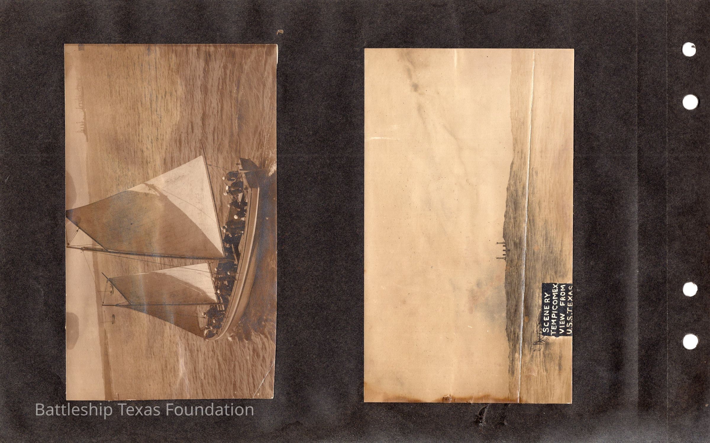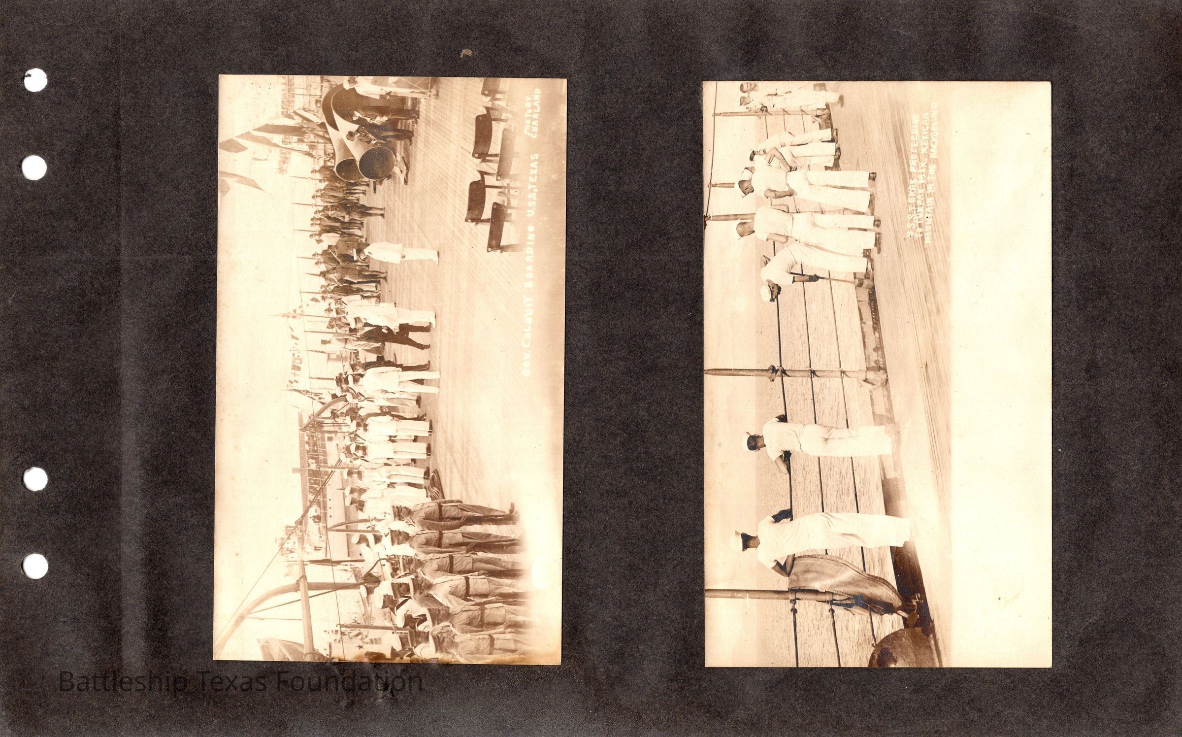 The photo album of Samuel D. Miller is considerably water damaged. The album dates to the commissioning and beyond into Galveston and Mexico throughout 1914. The string binding the album has been altered to account for fraying at the ends.Context