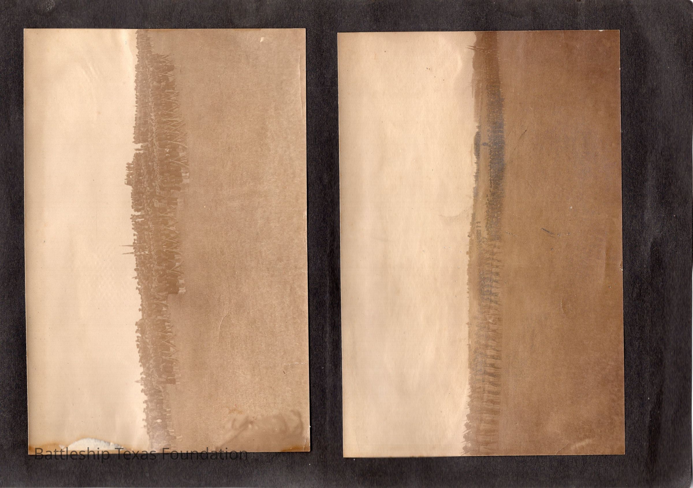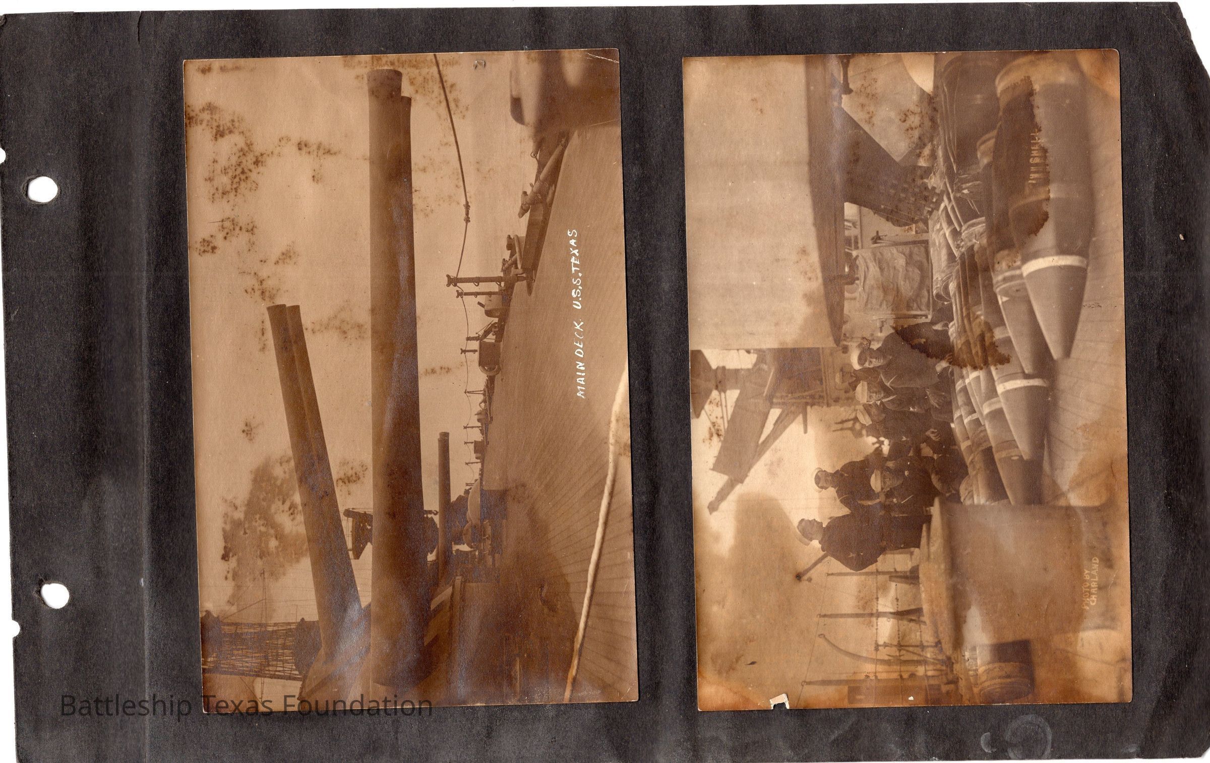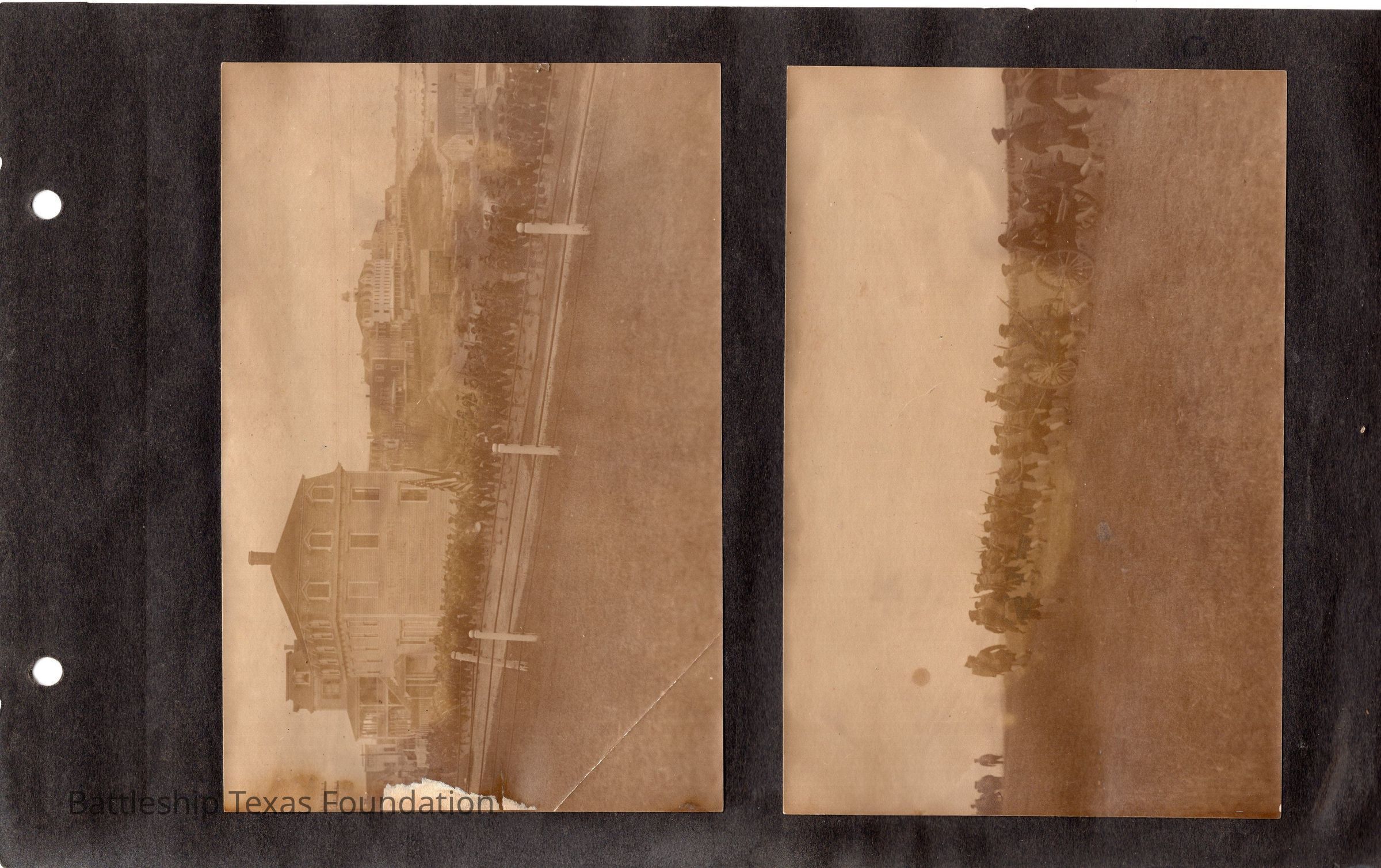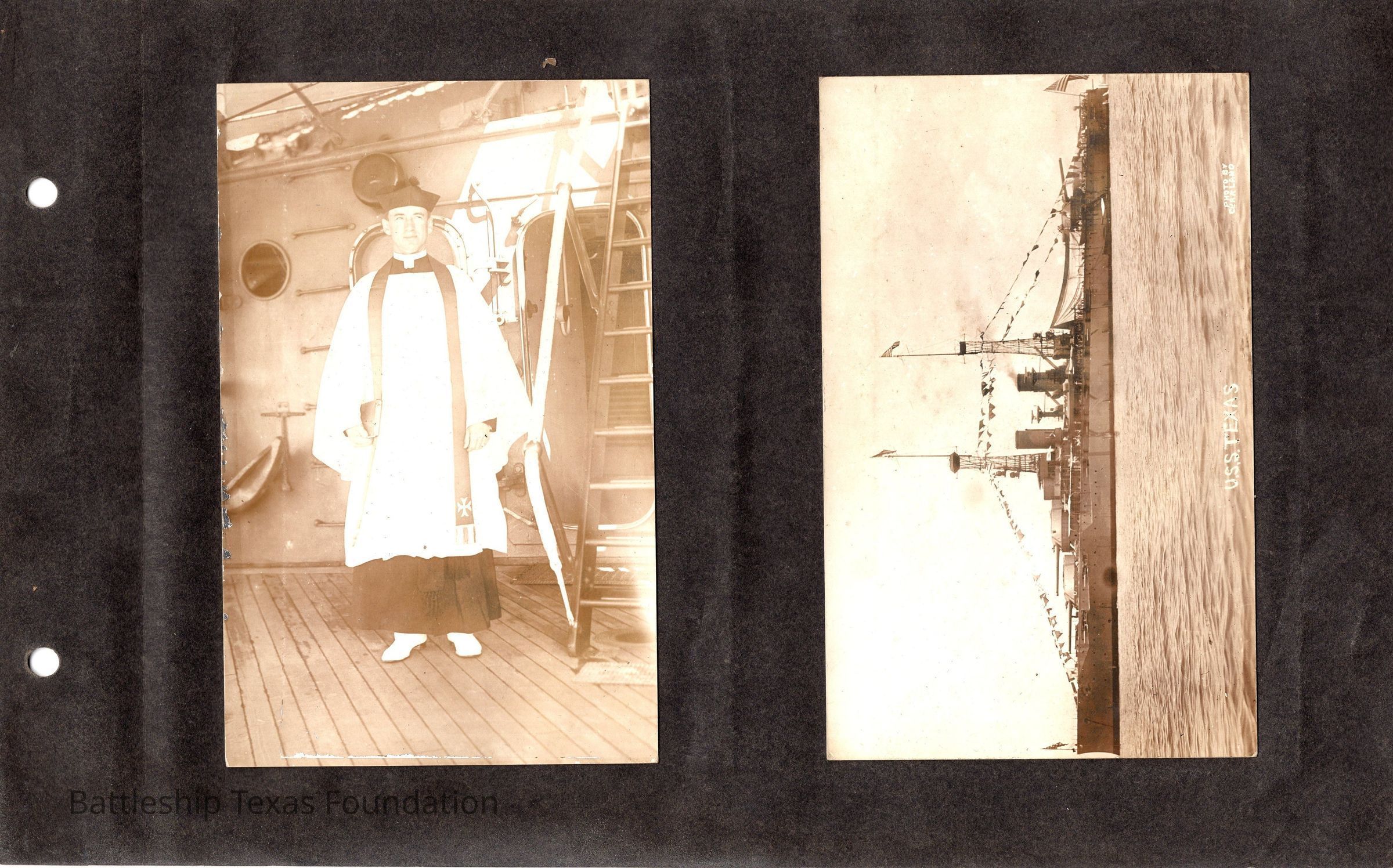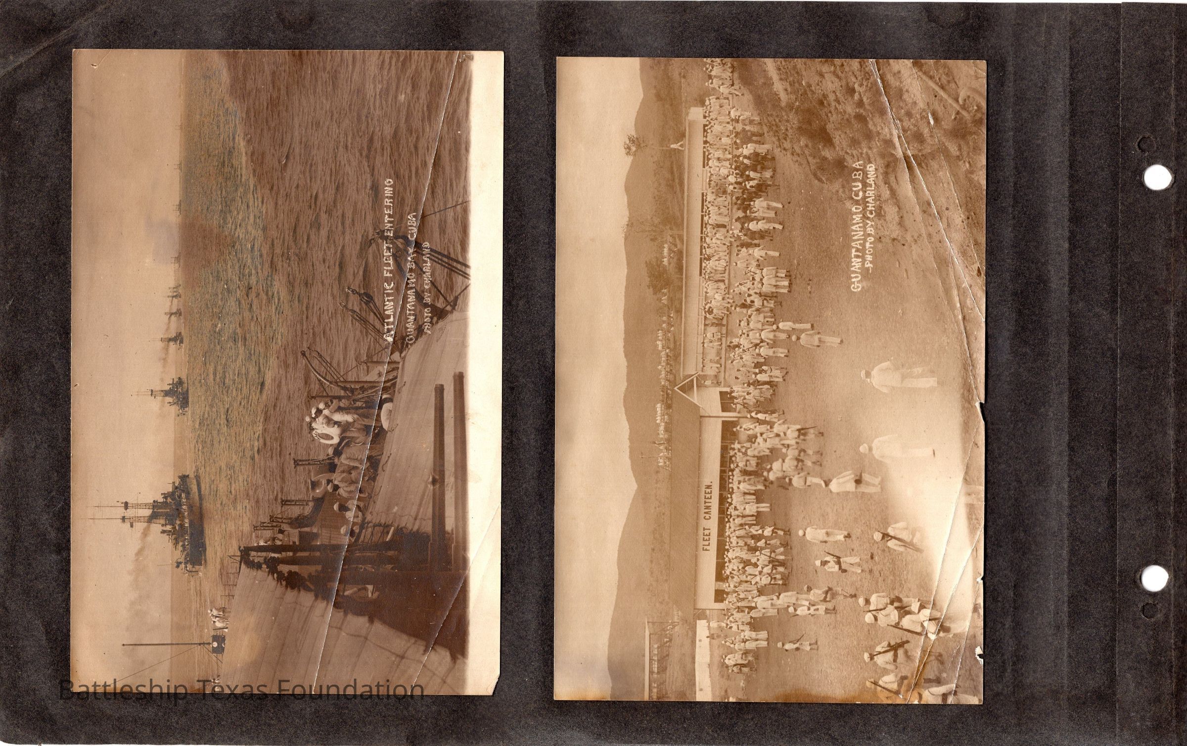 The photo album of Samuel D. Miller is considerably water damaged. The album dates to the commissioning and beyond into Galveston and Mexico throughout 1914. The string binding the album has been altered to account for fraying at the ends.Context