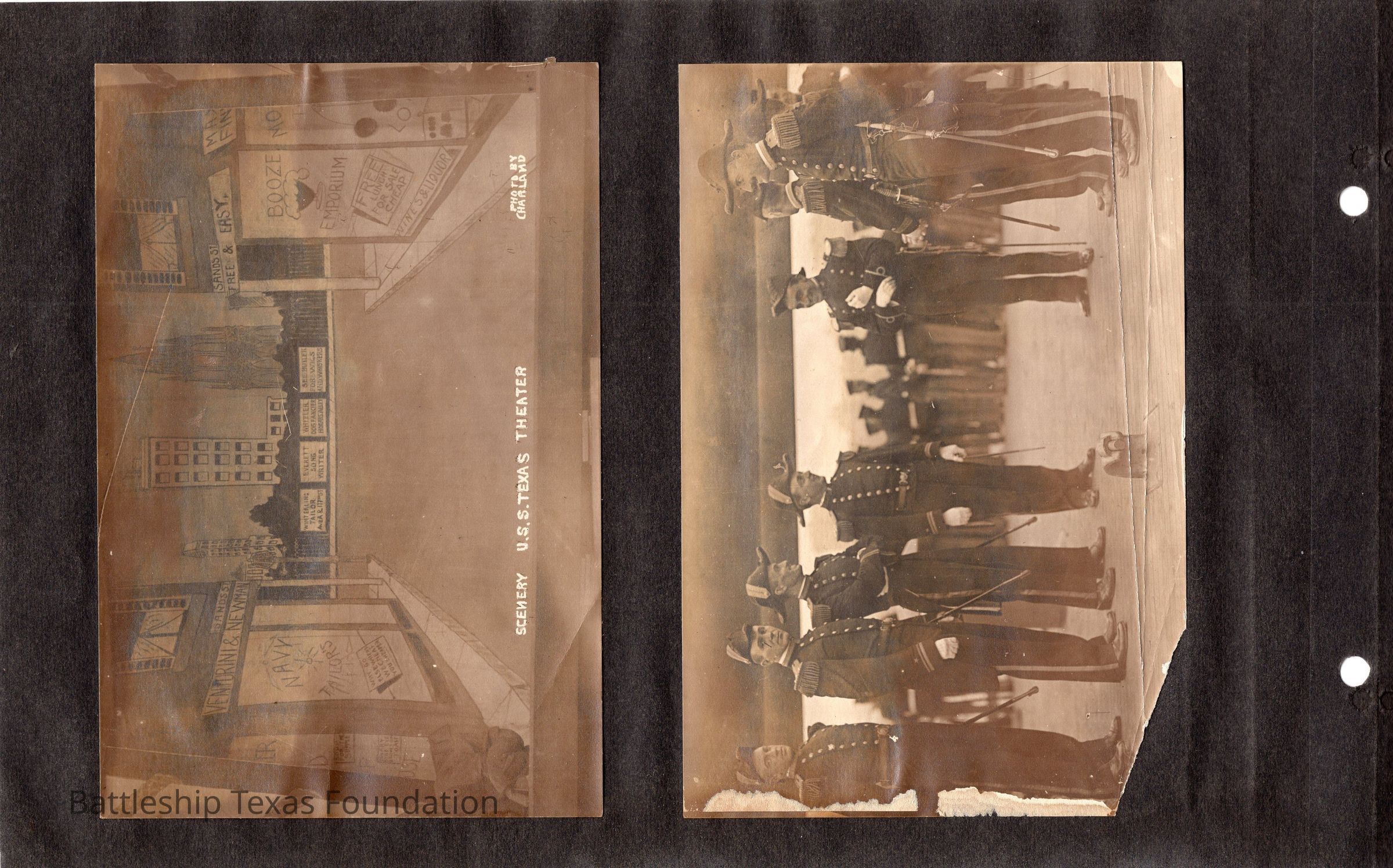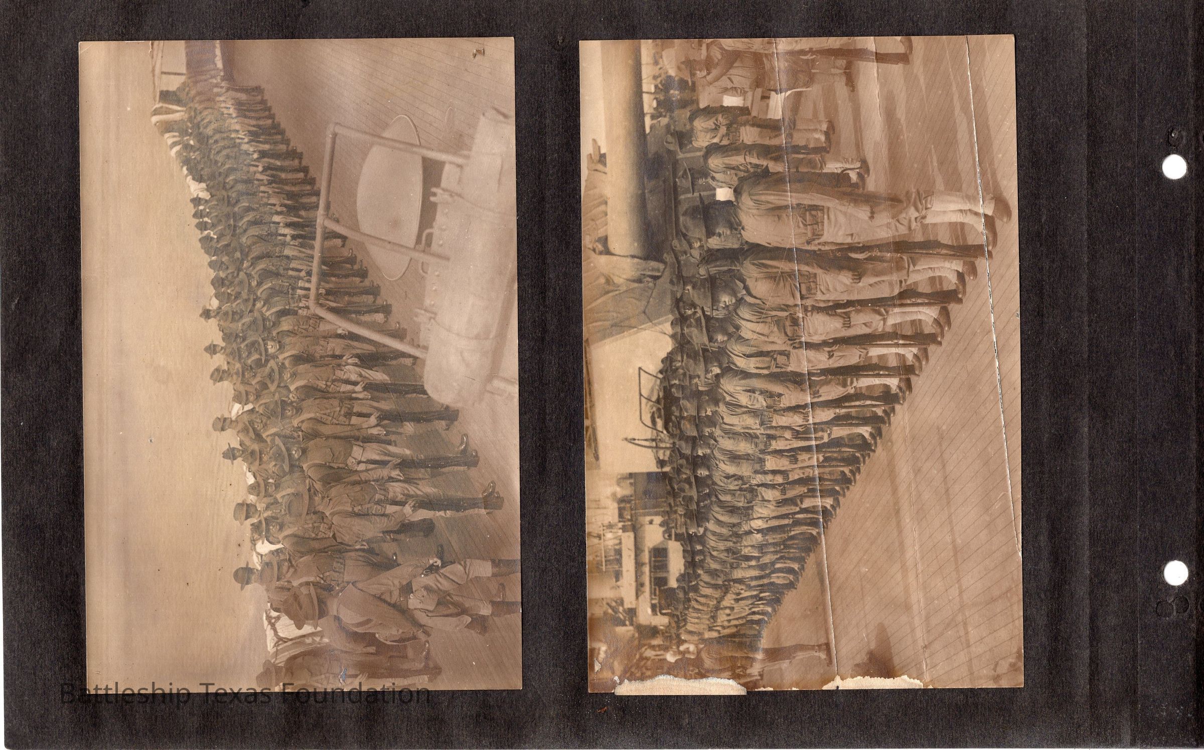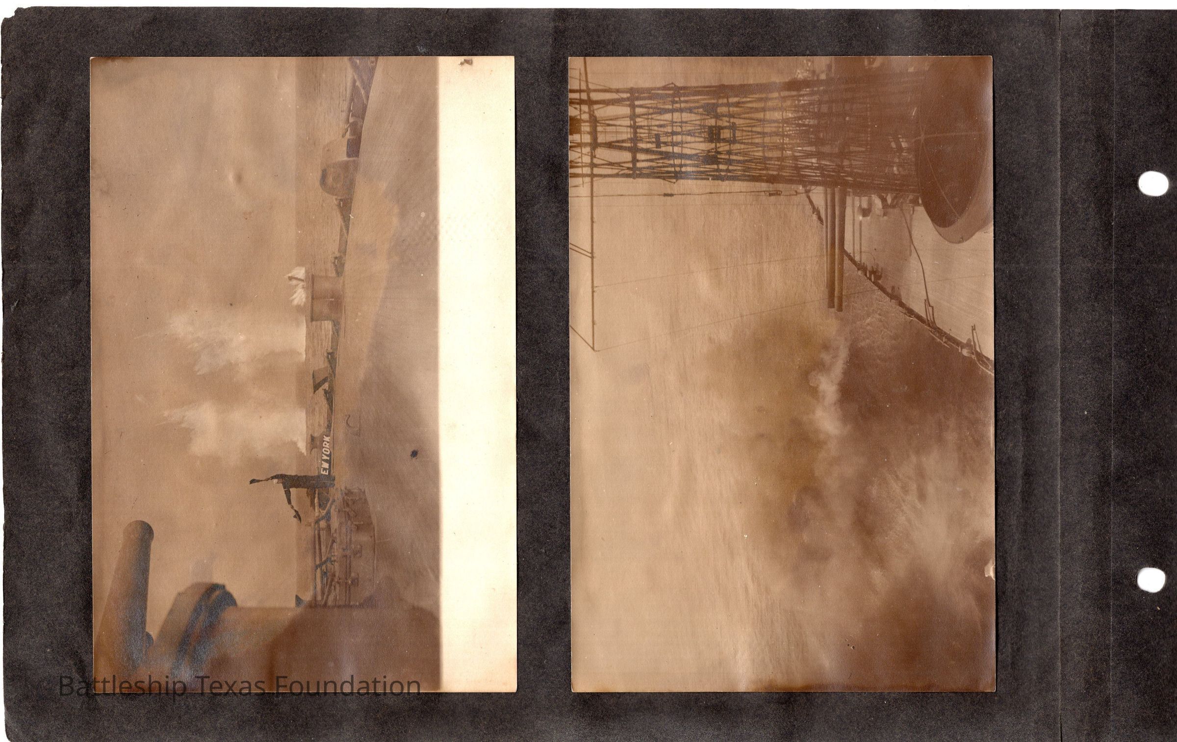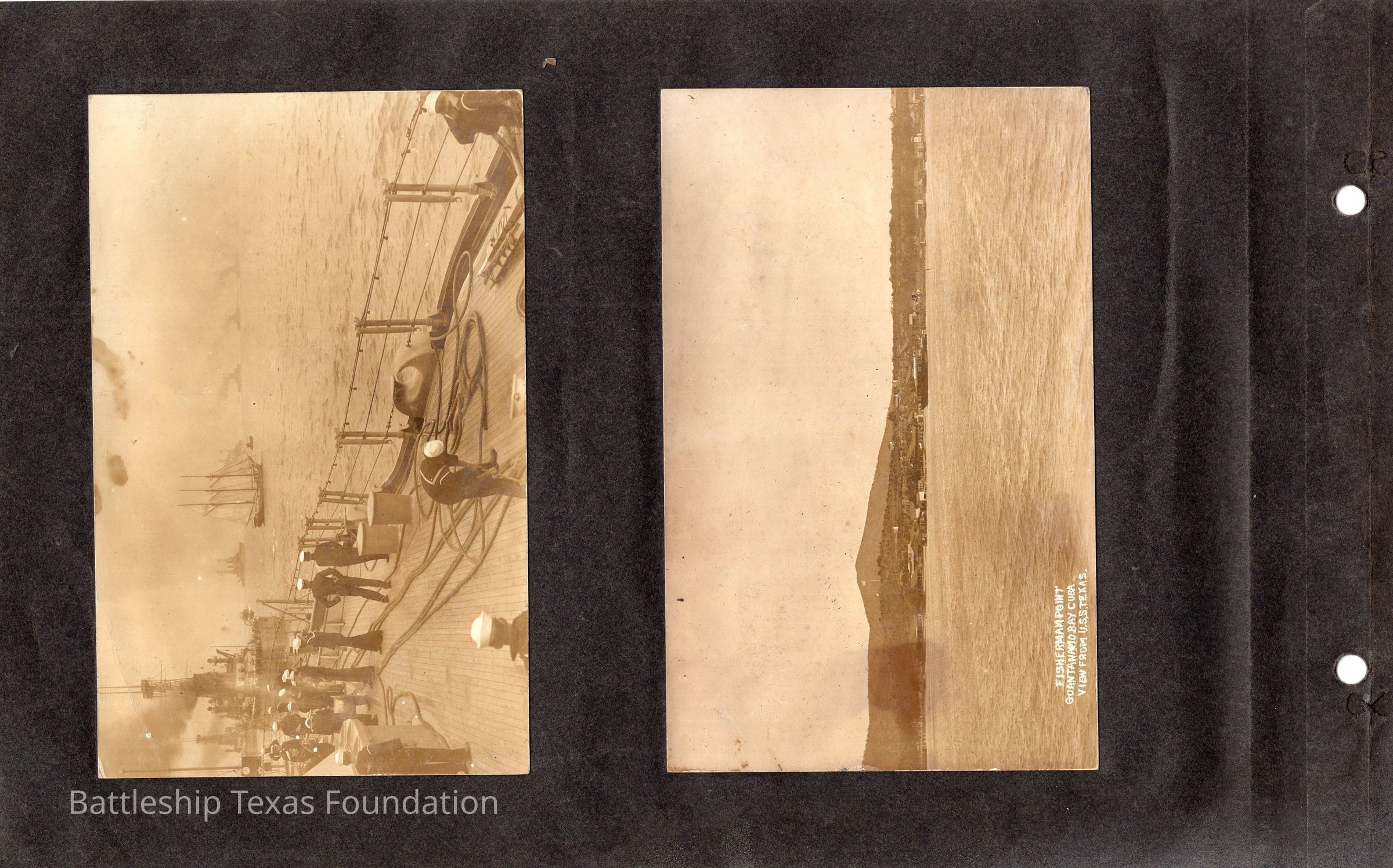The photo album of Samuel D. Miller is considerably water damaged. The album dates to the commissioning and beyond into Galveston and Mexico throughout 1914. The string binding the album has been altered to account for fraying at the ends.Context