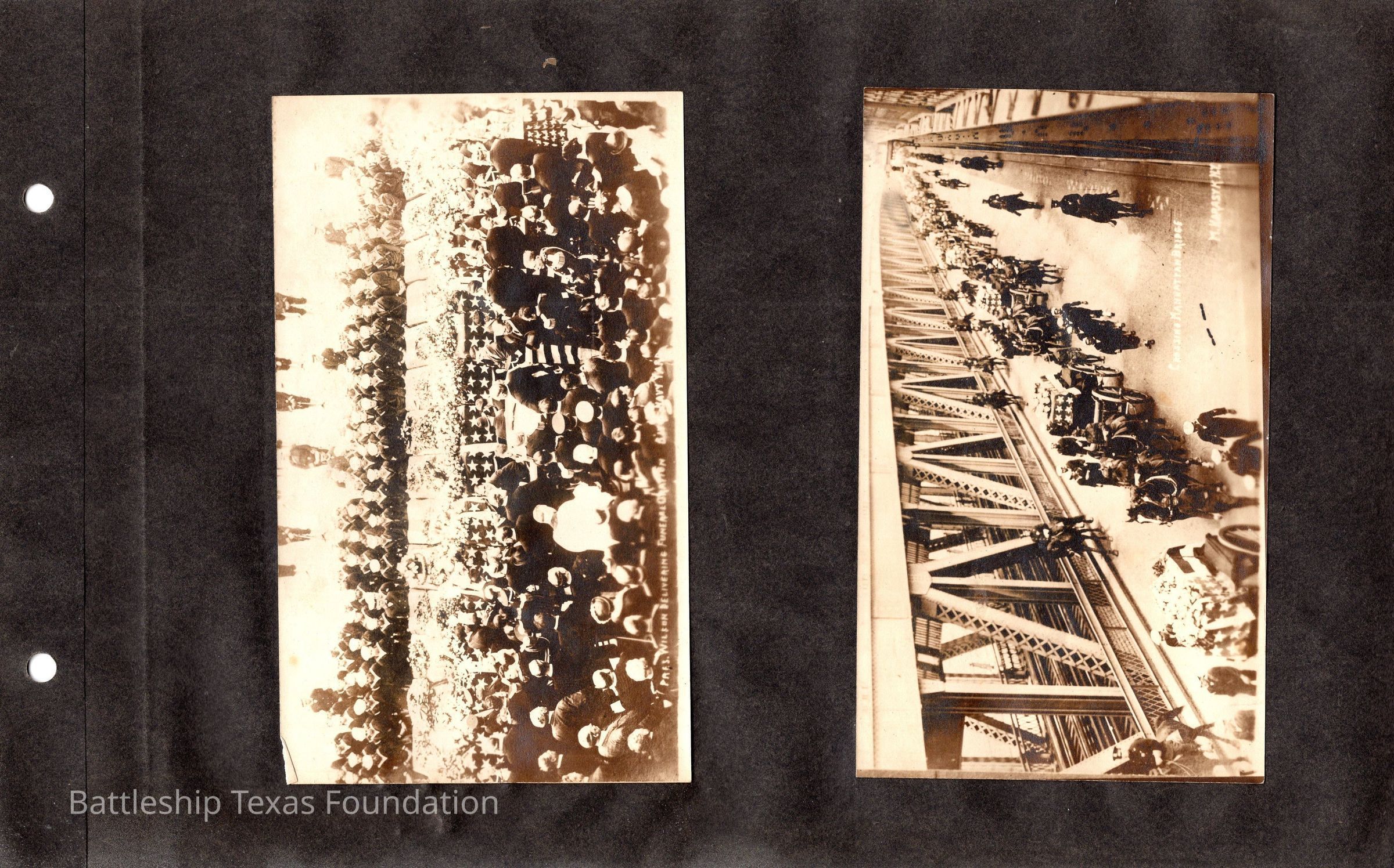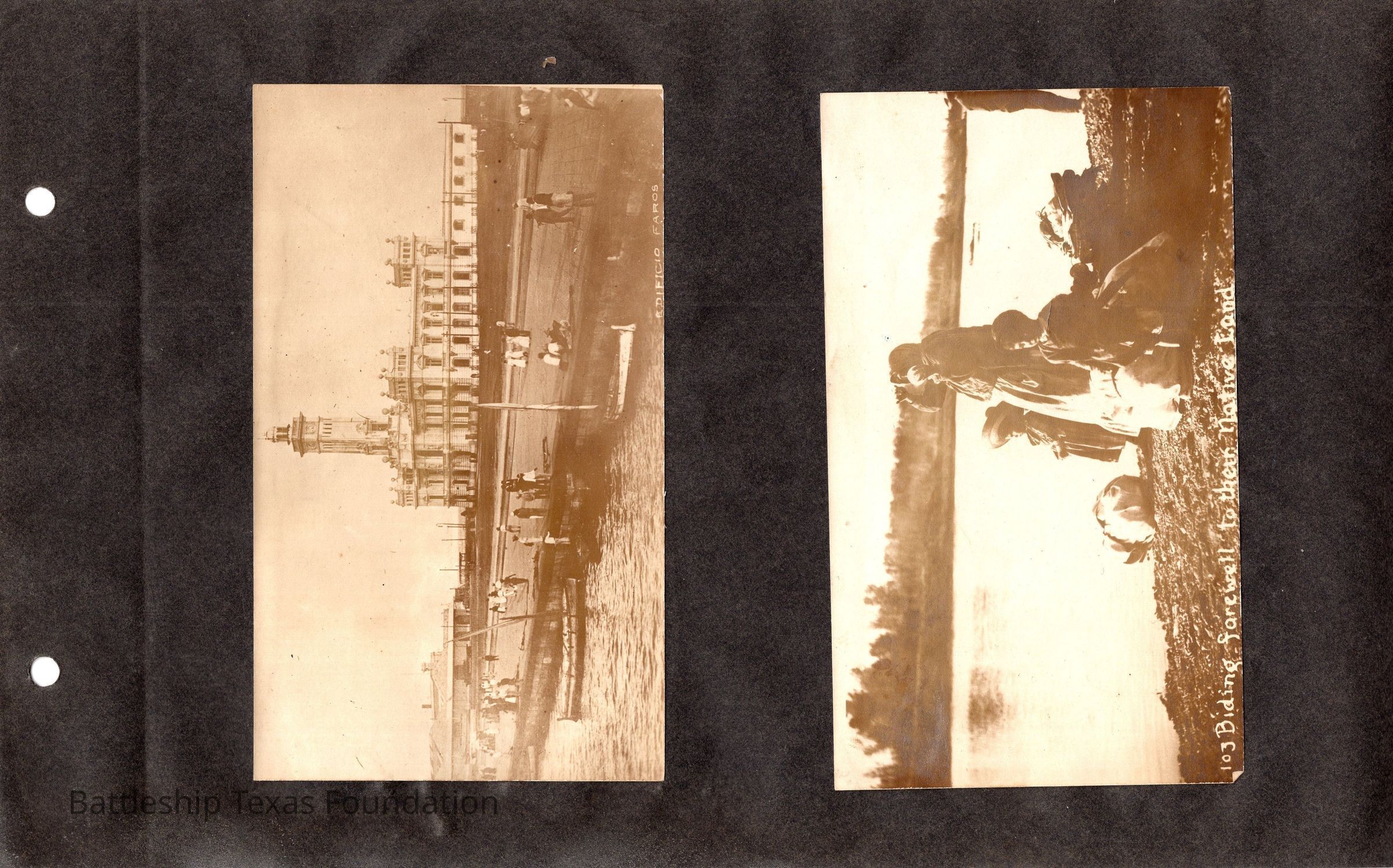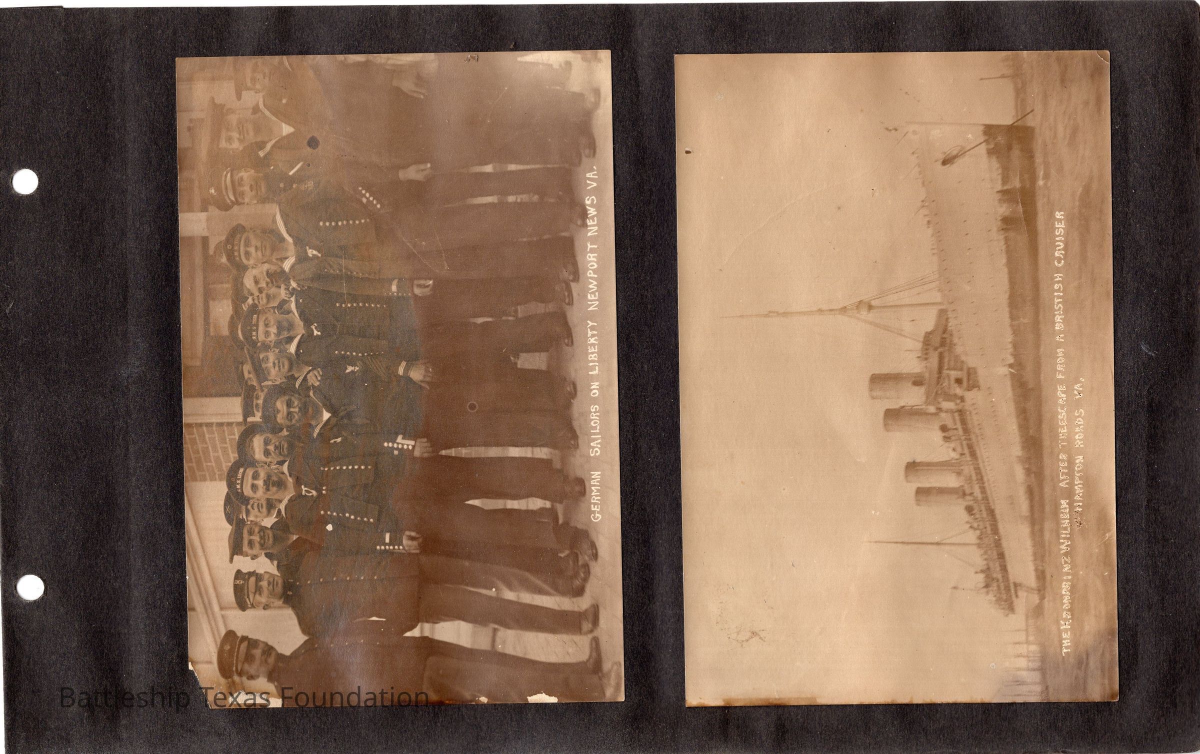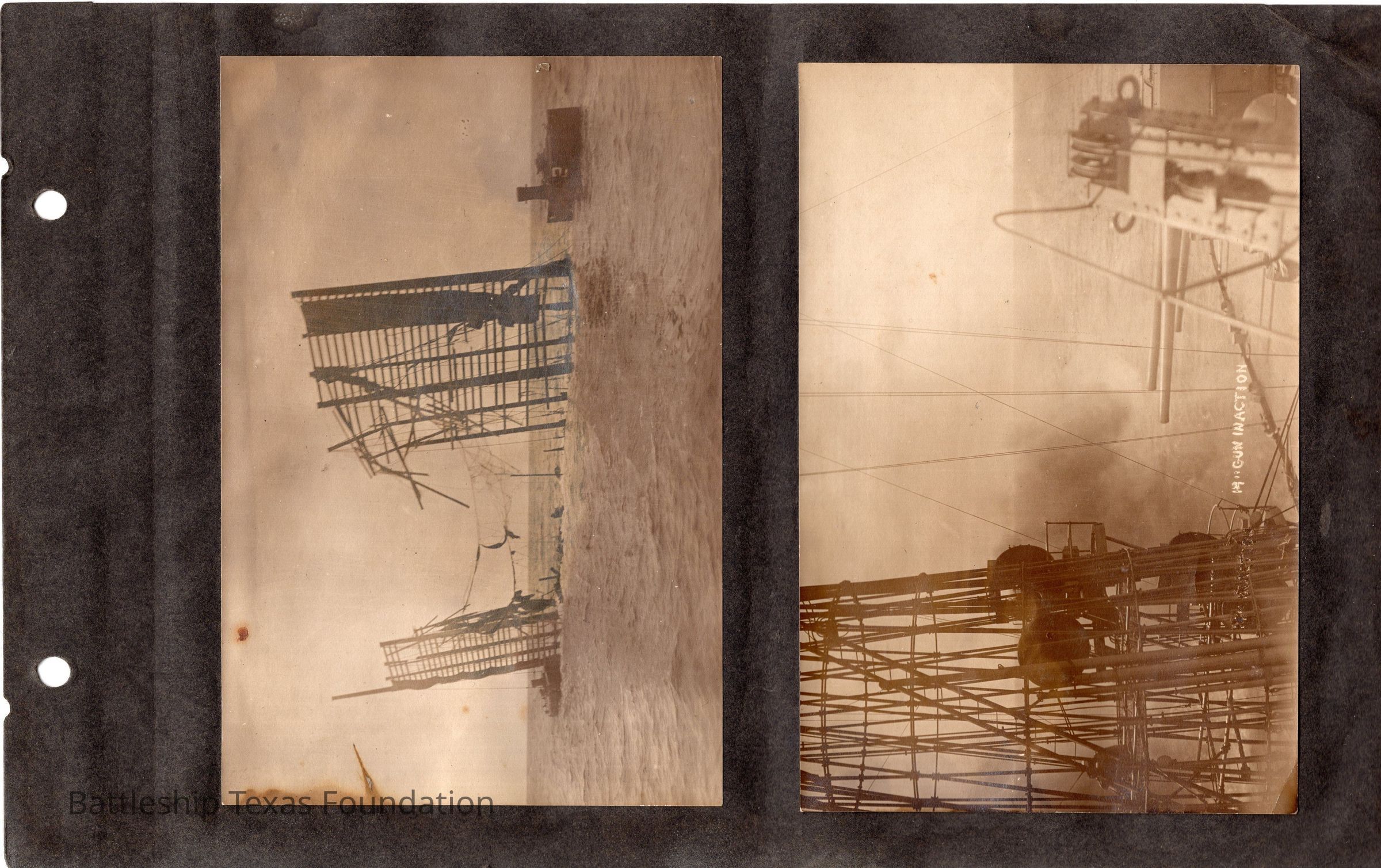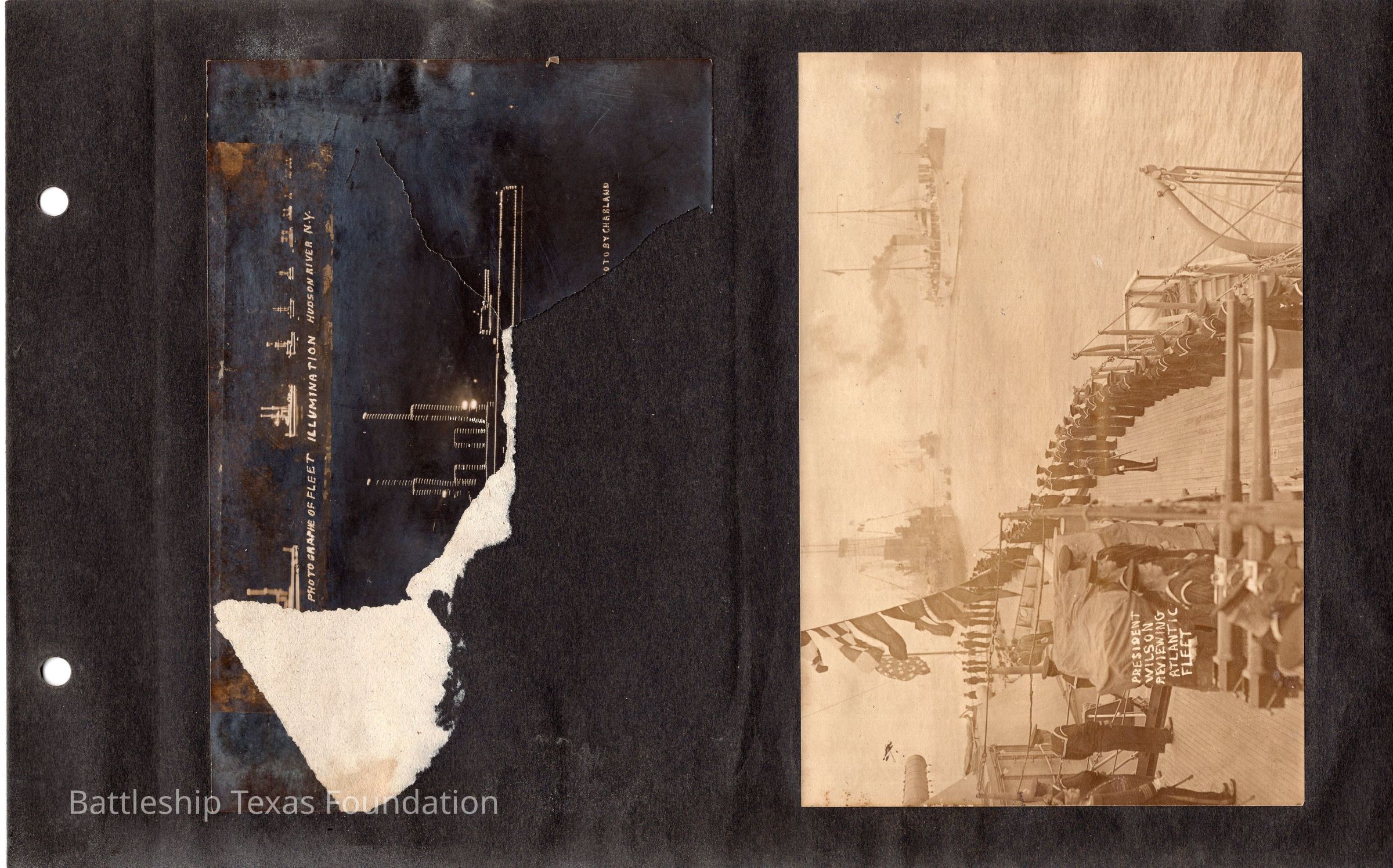 The photo album of Samuel D. Miller is considerably water damaged. The album dates to the commissioning and beyond into Galveston and Mexico throughout 1914. The string binding the album has been altered to account for fraying at the ends.Context