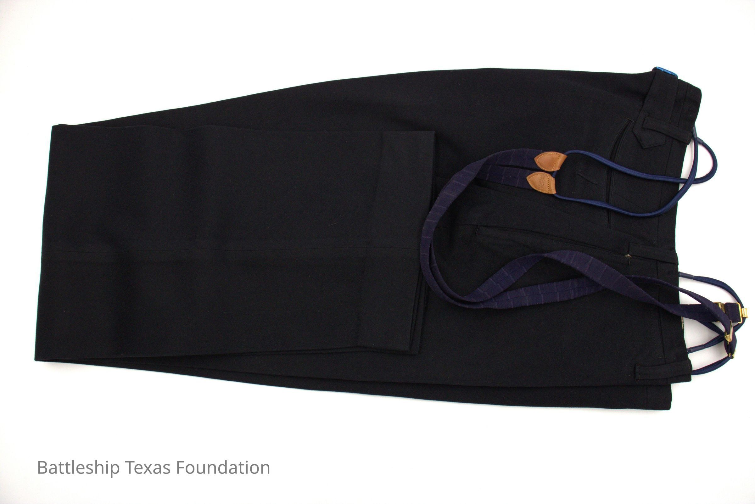 Slacks with suspenders owned by Charles Pratt sometime after leaving the crew of Battleship Texas
