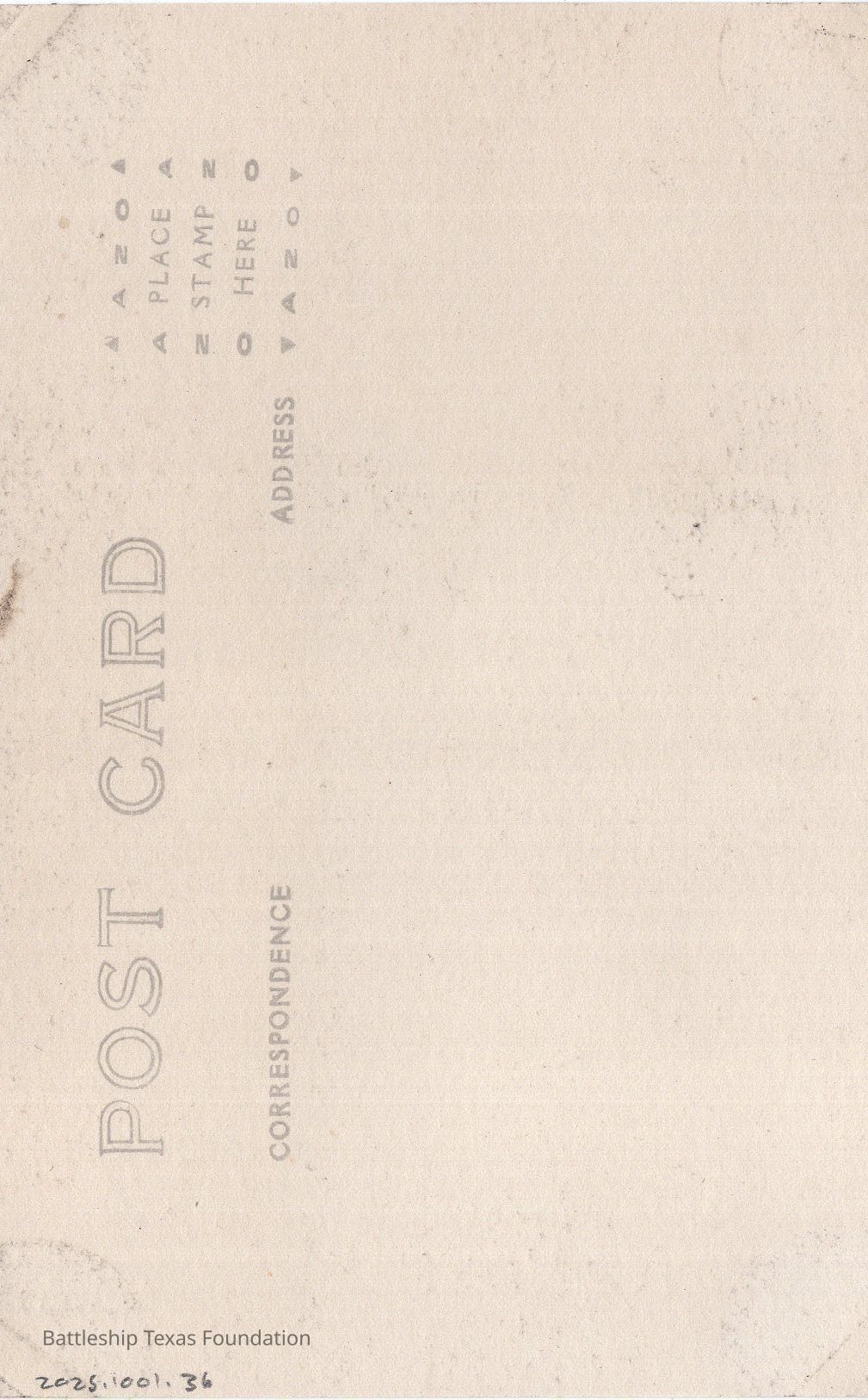Entries 2025.1001.23 through 2025.1001.99 were taken out of the significantly deteriorated pages of at least one photo album belonging to Texas crew members and bought by BTF. The album photos date to the early to mid 1920s. Each photo had writing on the pages of the book, now discarded. The caption formerly on the page for this photo read,