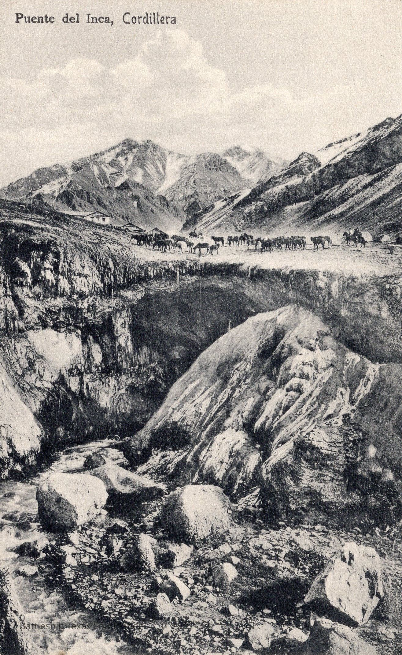 Chilean postcard captioned "Puente del Inca, Cordillera"Context