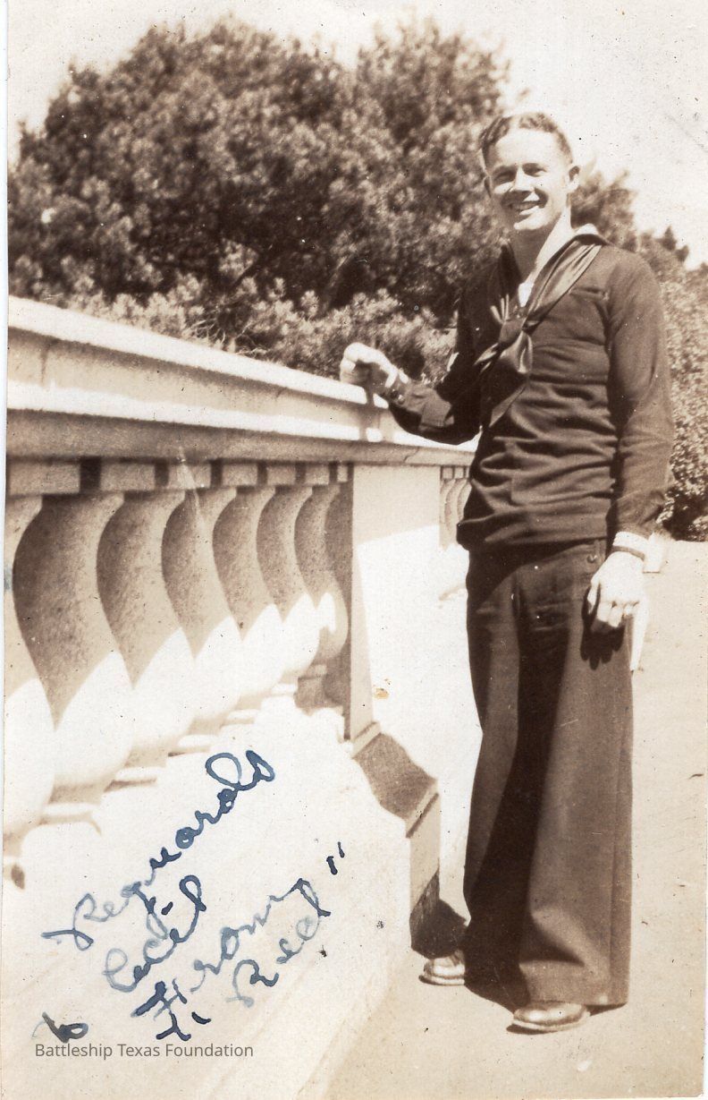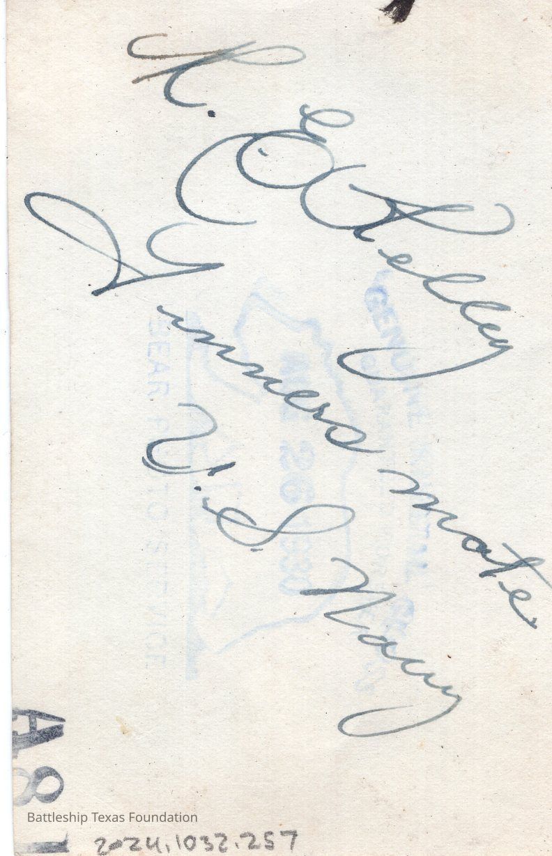 From a donated collection of individual photographs and pages out of a Texas crewmember's photo album. Items donated by the Los Angeles Maritime Museum.