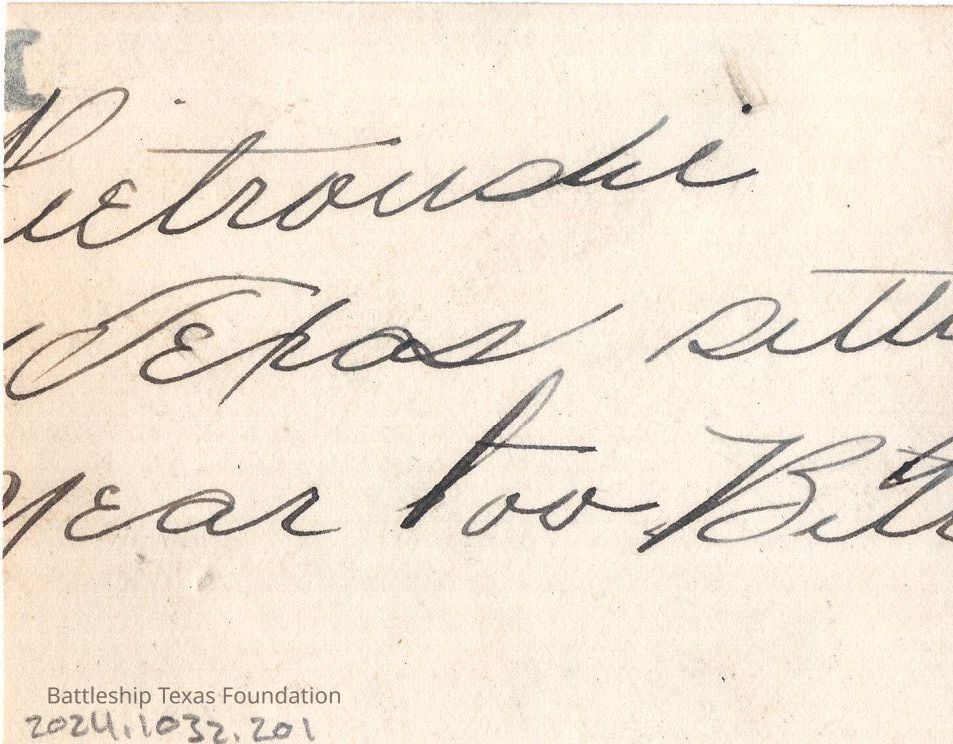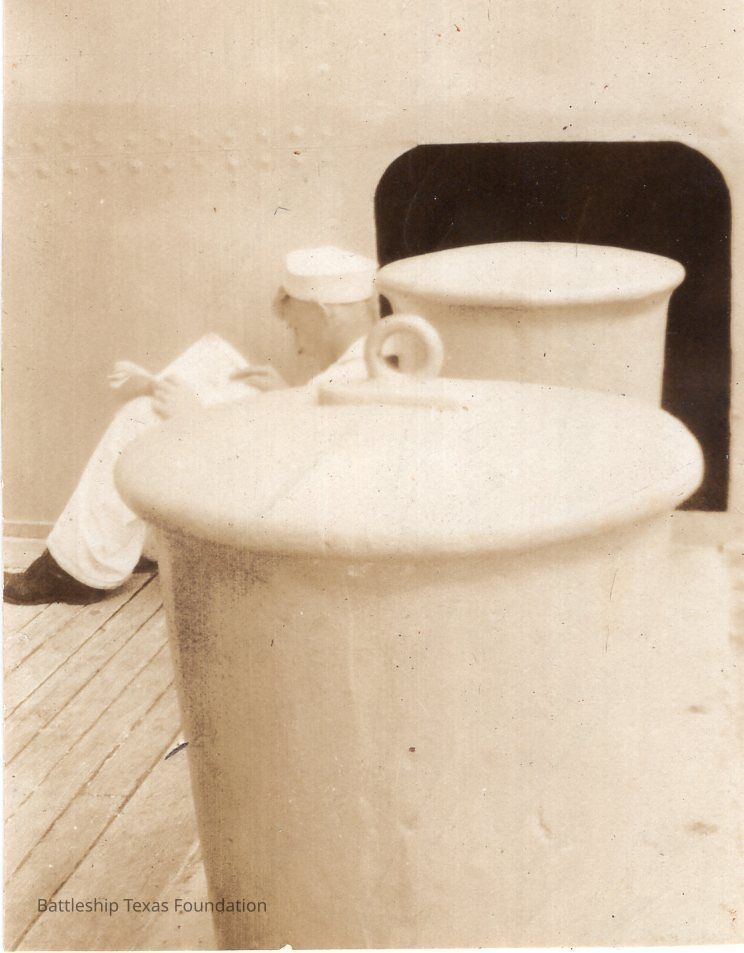 From a donated collection of individual photographs and pages out of a Texas crewmember's photo album. Items donated by the Los Angeles Maritime Museum.