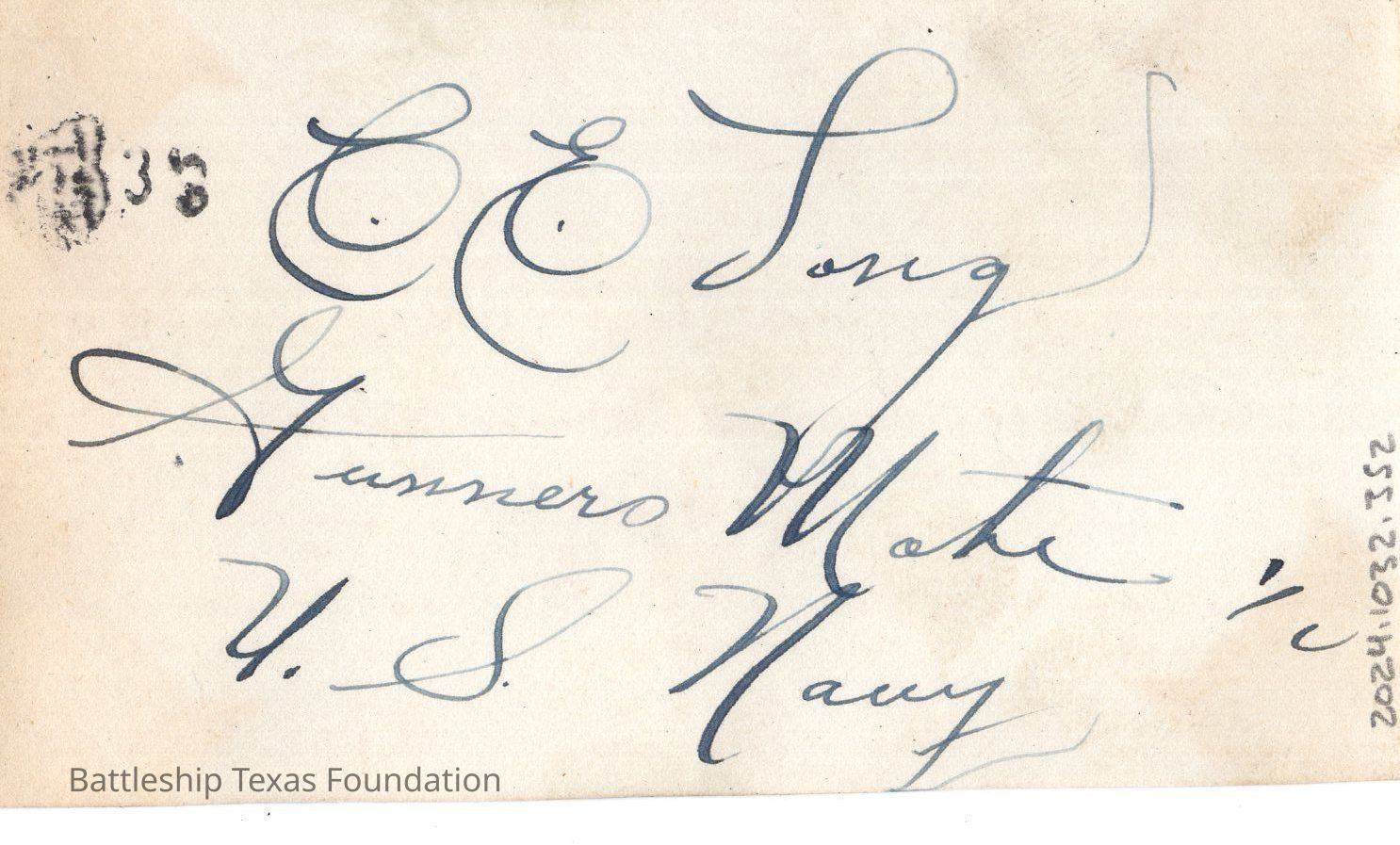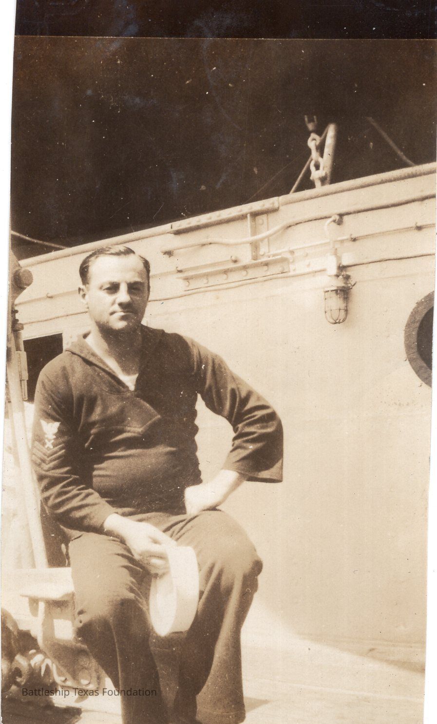 From a donated collection of individual photographs and pages out of a Texas crewmember's photo album. Items donated by the Los Angeles Maritime Museum.