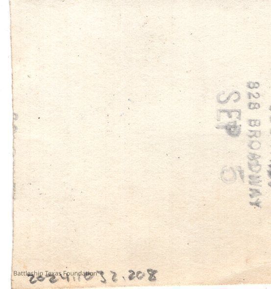 From a donated collection of individual photographs and pages out of a Texas crewmember's photo album. Items donated by the Los Angeles Maritime Museum.