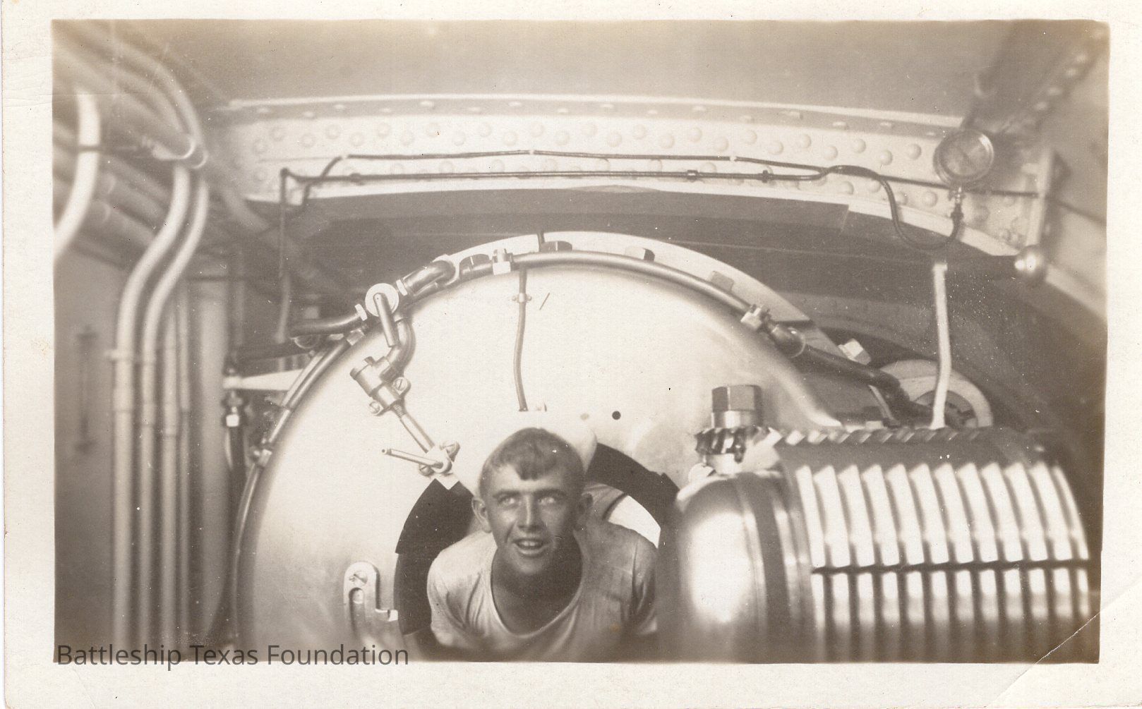Sailor inside 14" gun breech
