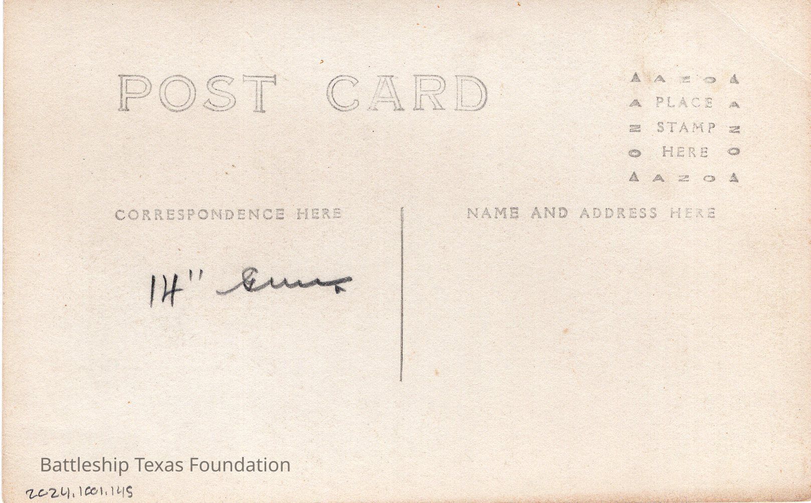 Smaller sailor pokes head out of 14" gun breech. "14" Gun" written on back.