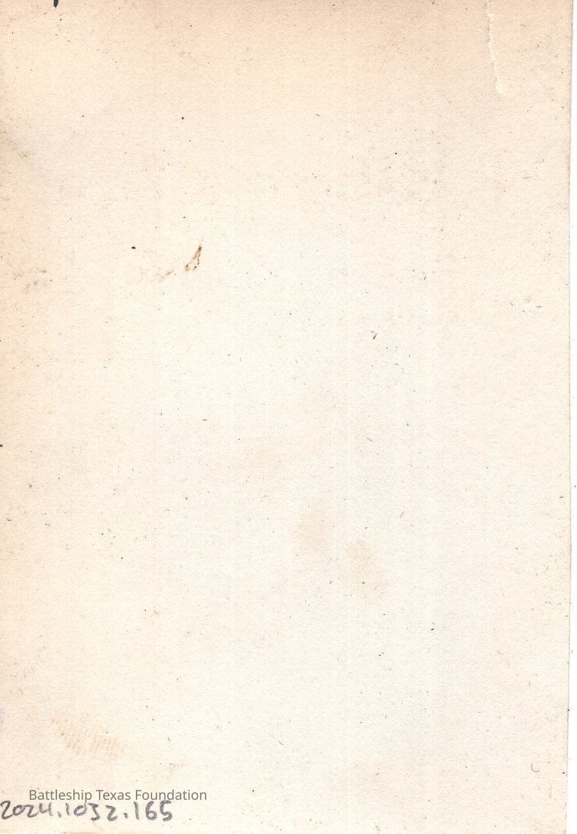 From a donated collection of individual photographs and pages out of a Texas crewmember's photo album. Items donated by the Los Angeles Maritime Museum.