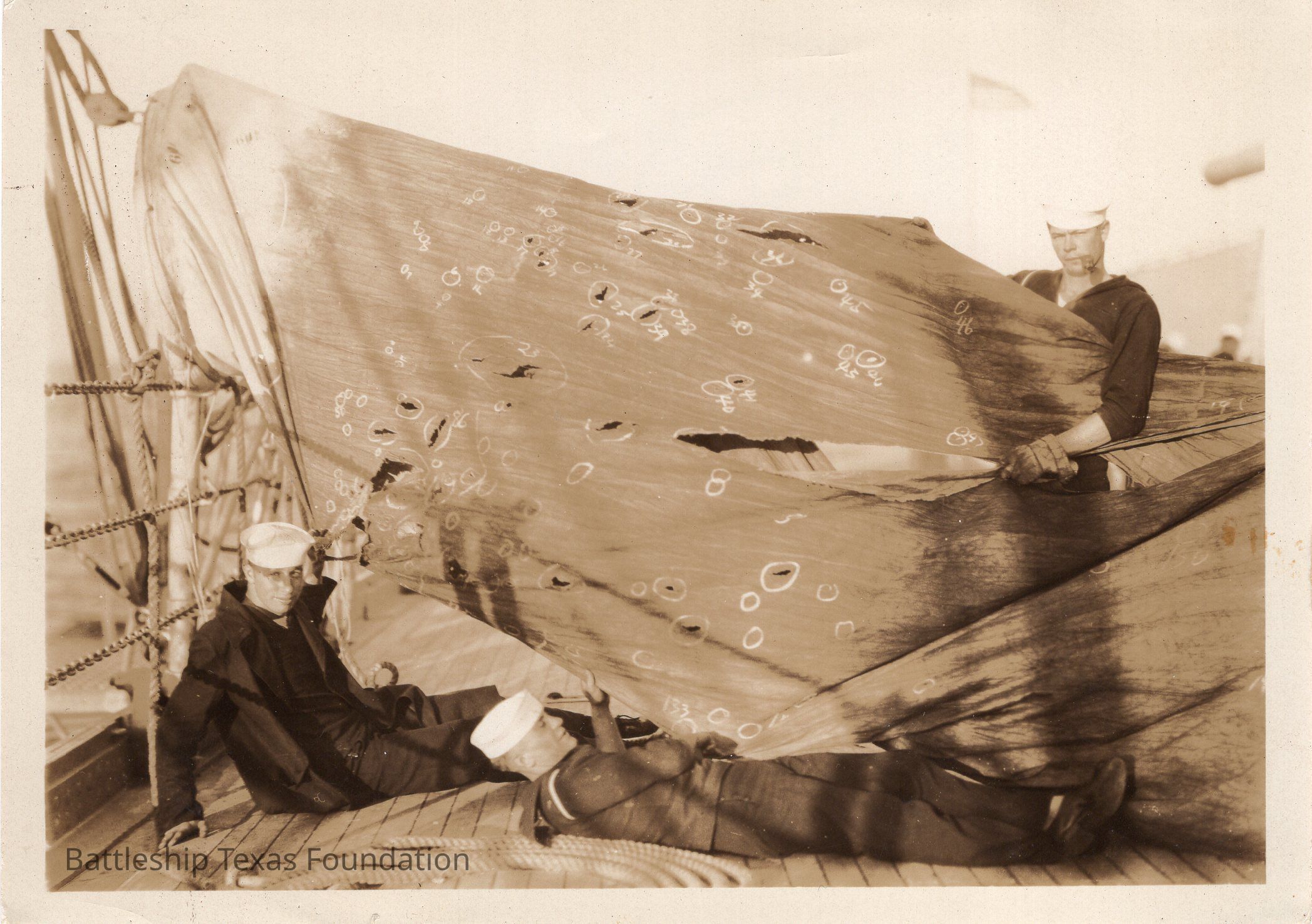 Sailors pointing out holes