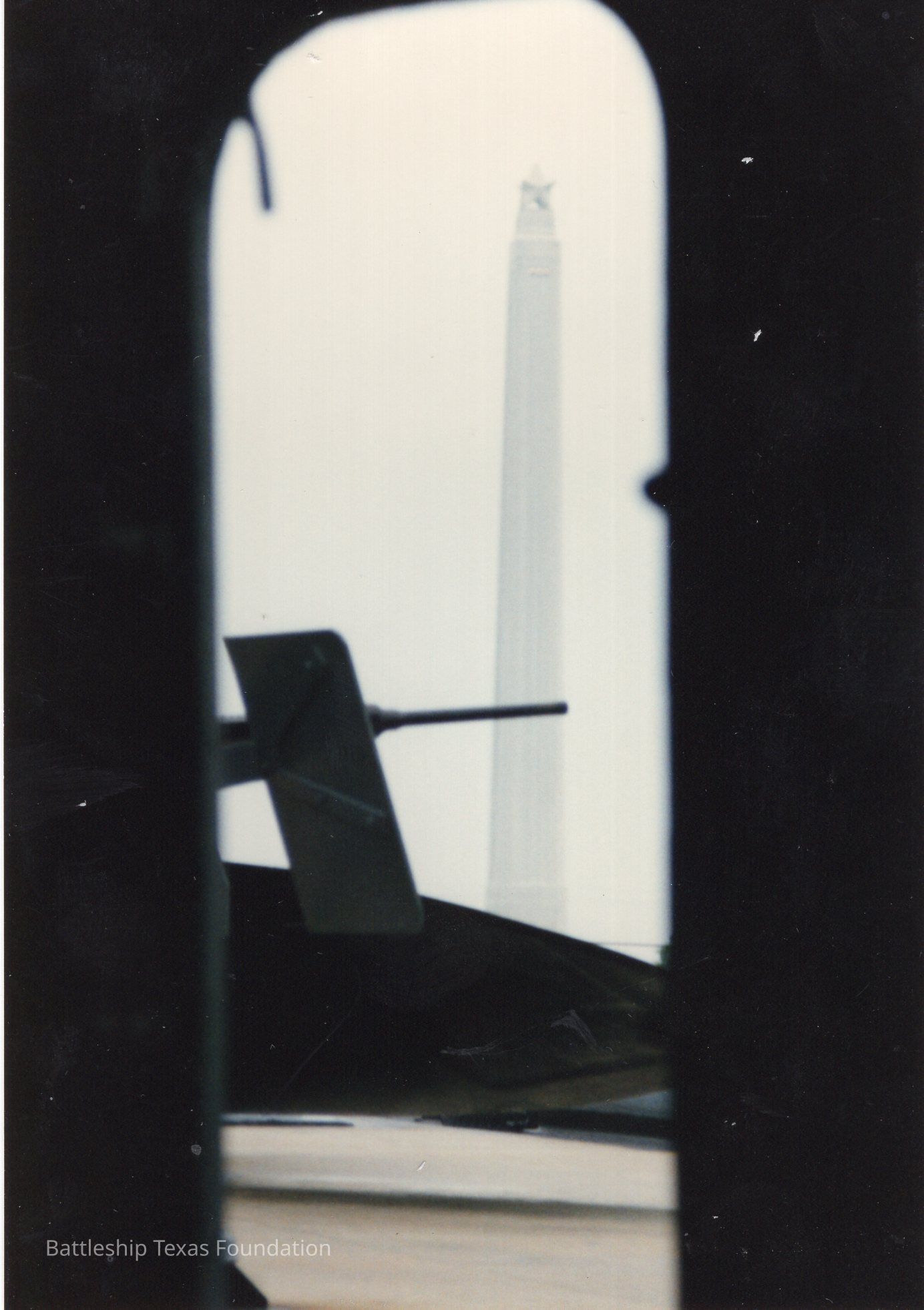 View through the forward hatch of the air castle at the San Jacinto Monument. 20mm gun in midground.Context