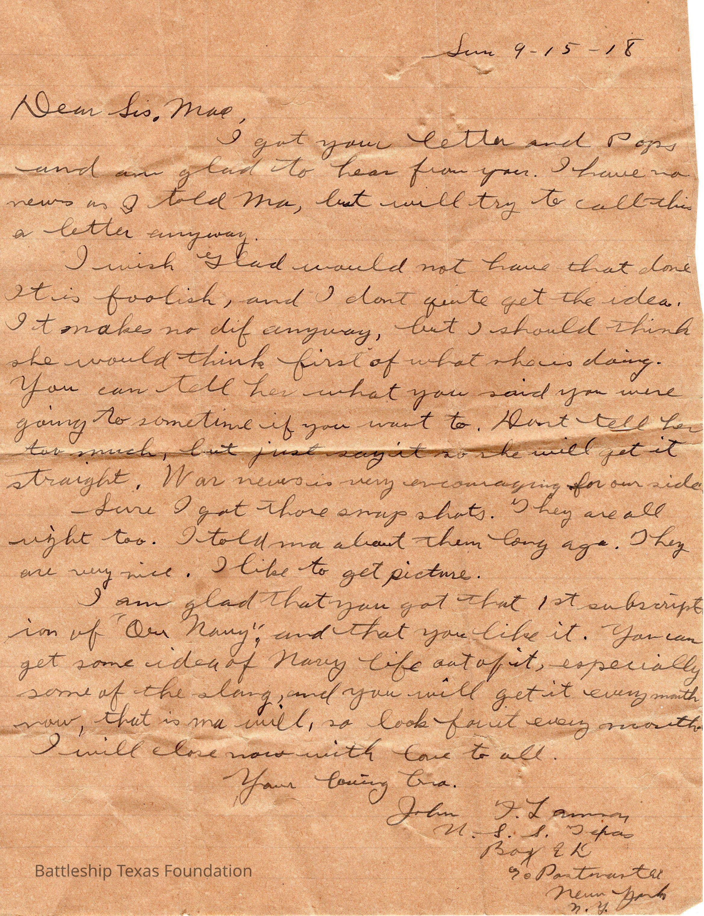 Lamson 1918/09/15 letter #2Entry/Object ID