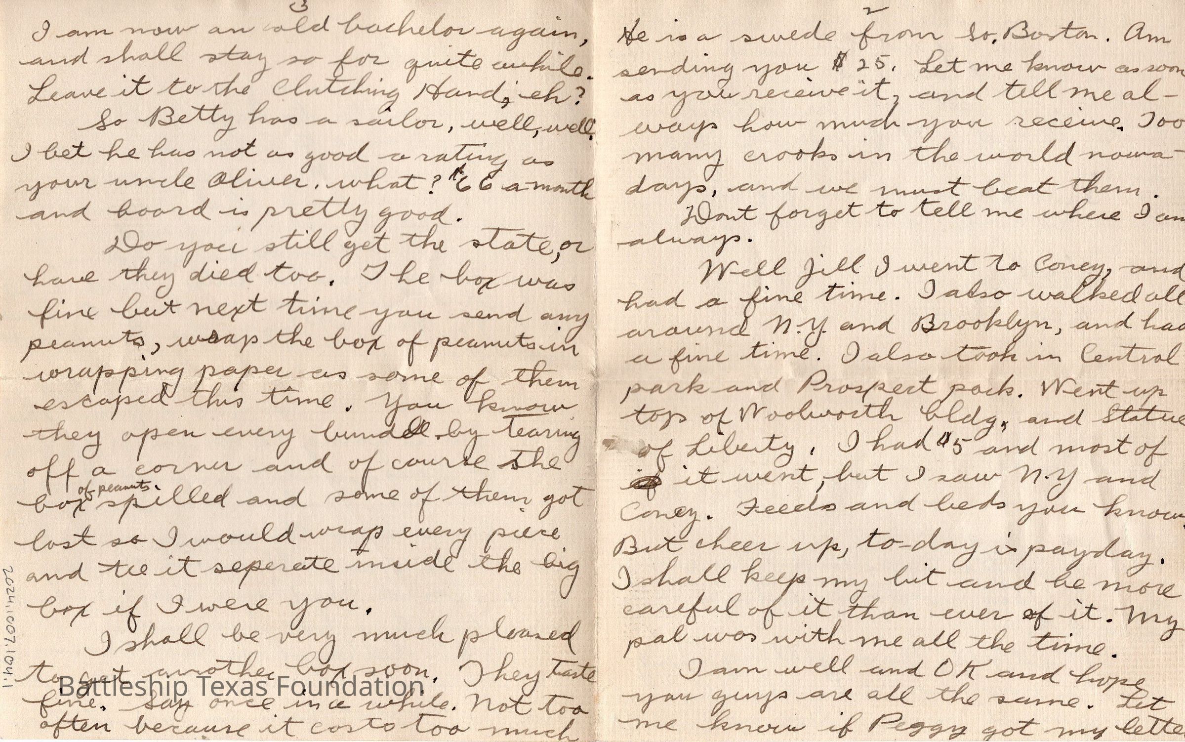 Battleship Texas had her own post office. All mail passed through a censor before leaving the ship. Once the package is checked, it was stamped with a “U.S.S. TEXAS” stamp. If in a port, mail could carry the markers of the post office on shore.Collection