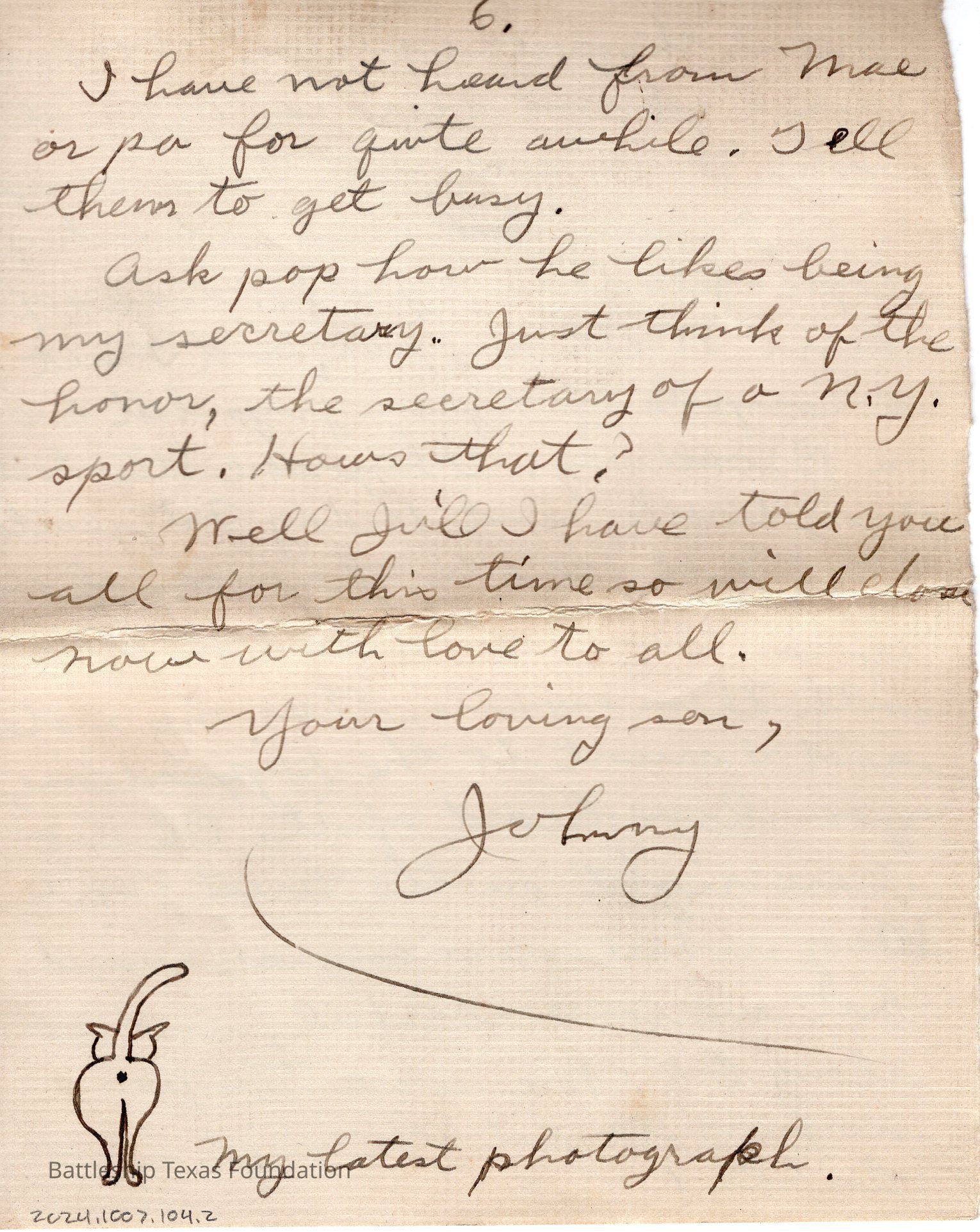 Second page of 9-20-17 letter. Cat drawn on back of page.Context