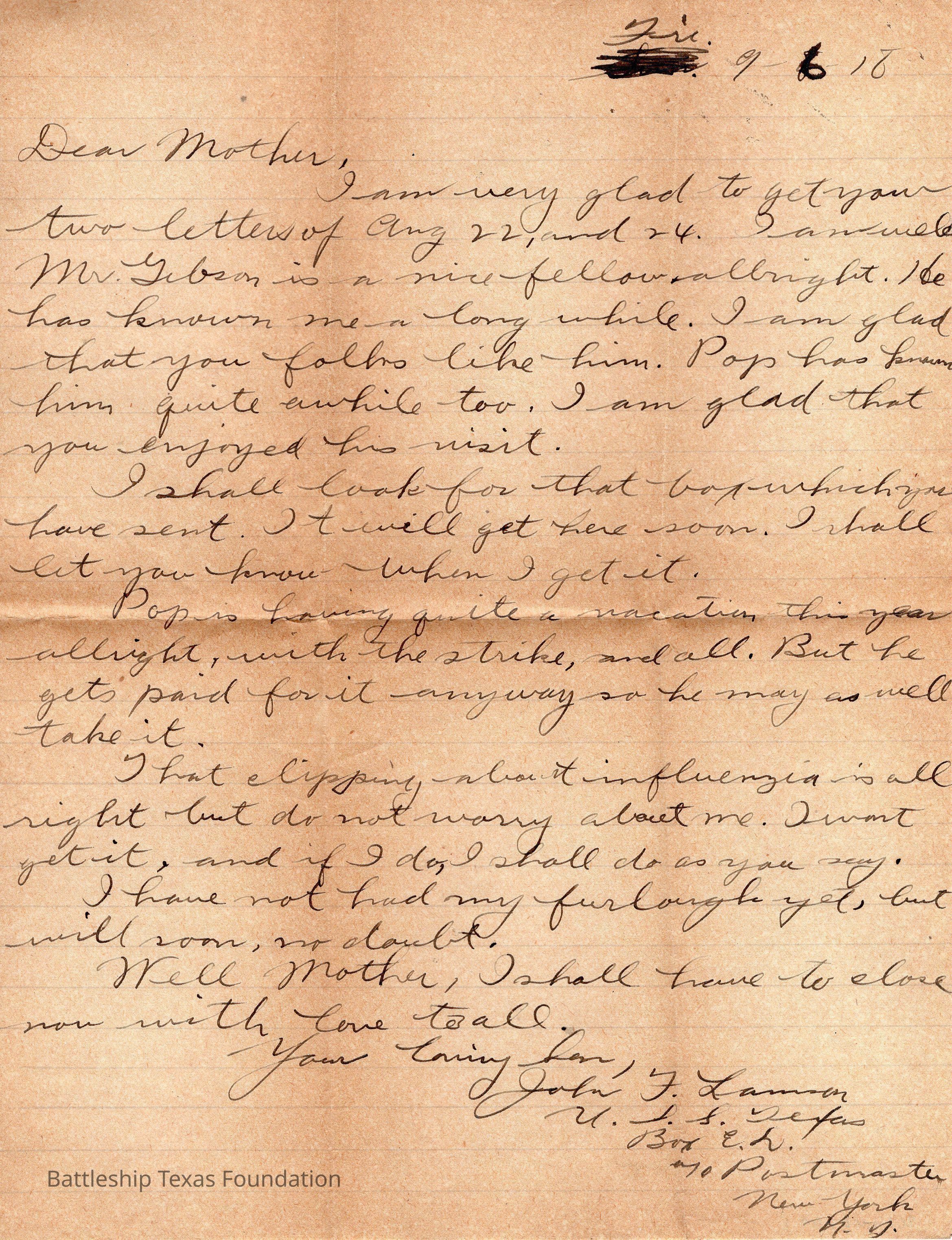 Lamson 1918/09/06 letterEntry/Object ID