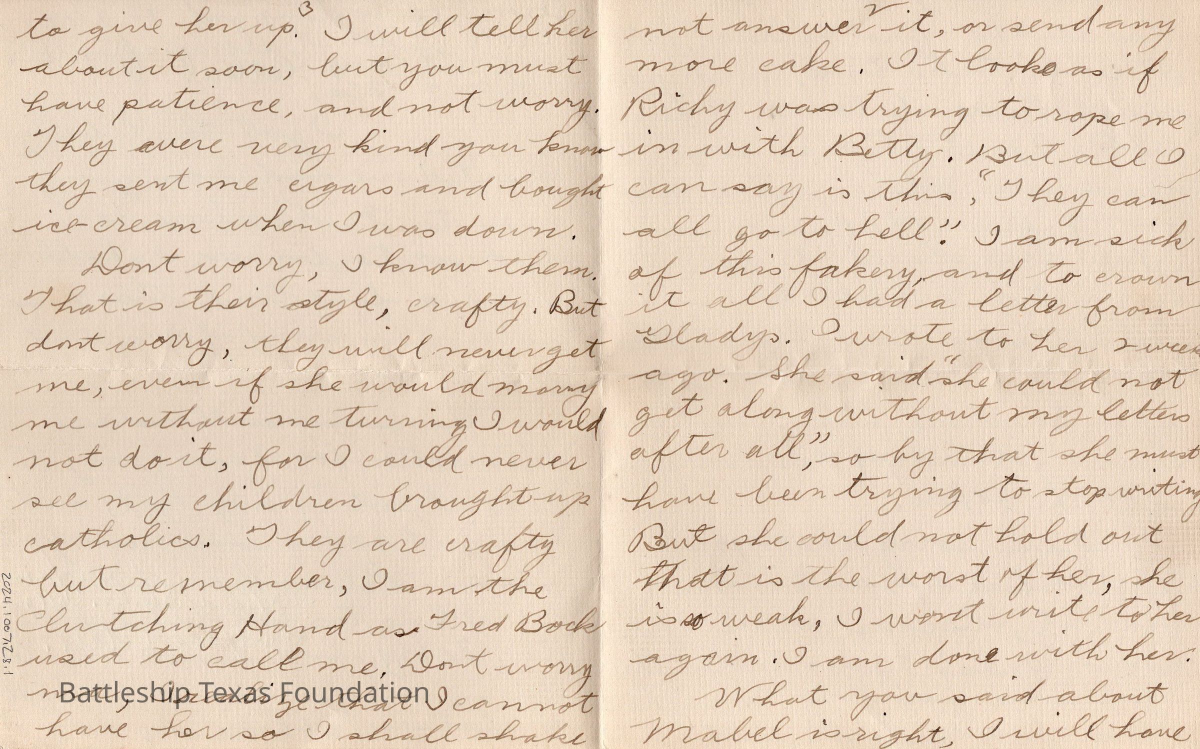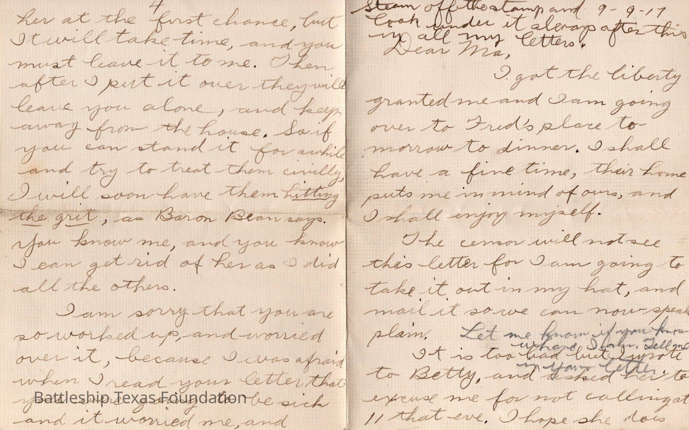 John Lamson was a MM1c on Battleship Texas from May 1917 to June 1919. Throughout his time on Texas, he sent a letter to his family at least once a week, often more. Longer stretches of absence are explained either by movement across the Atlantic, or with the Grand Fleet.