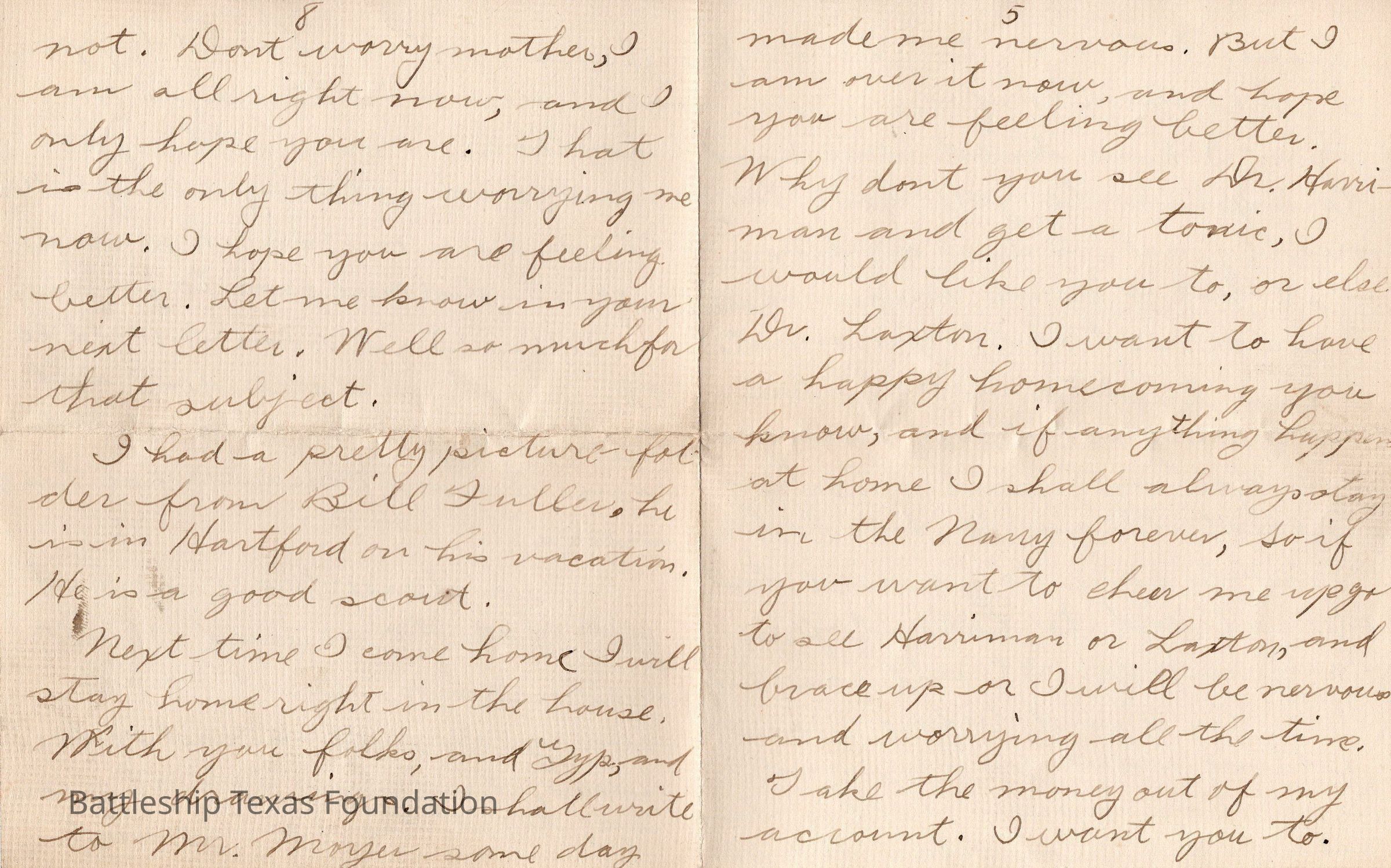 John Lamson was a MM1c on Battleship Texas from May 1917 to June 1919. Throughout his time on Texas, he sent a letter to his family at least once a week, often more. Longer stretches of absence are explained either by movement across the Atlantic, or with the Grand Fleet.