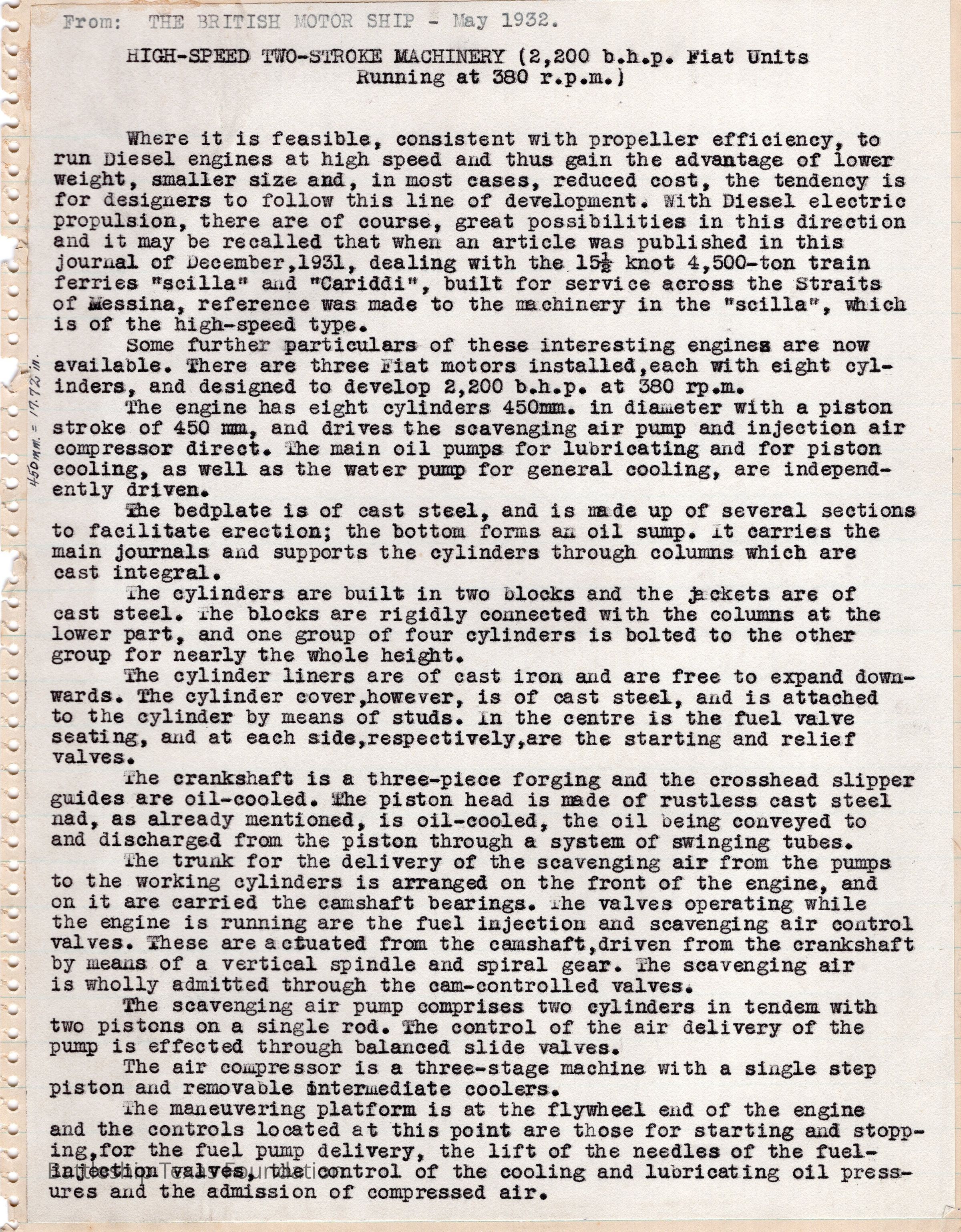 High-speed two-stroke machinery notes. Printout is glued into notebook page. Back page is blank.Context