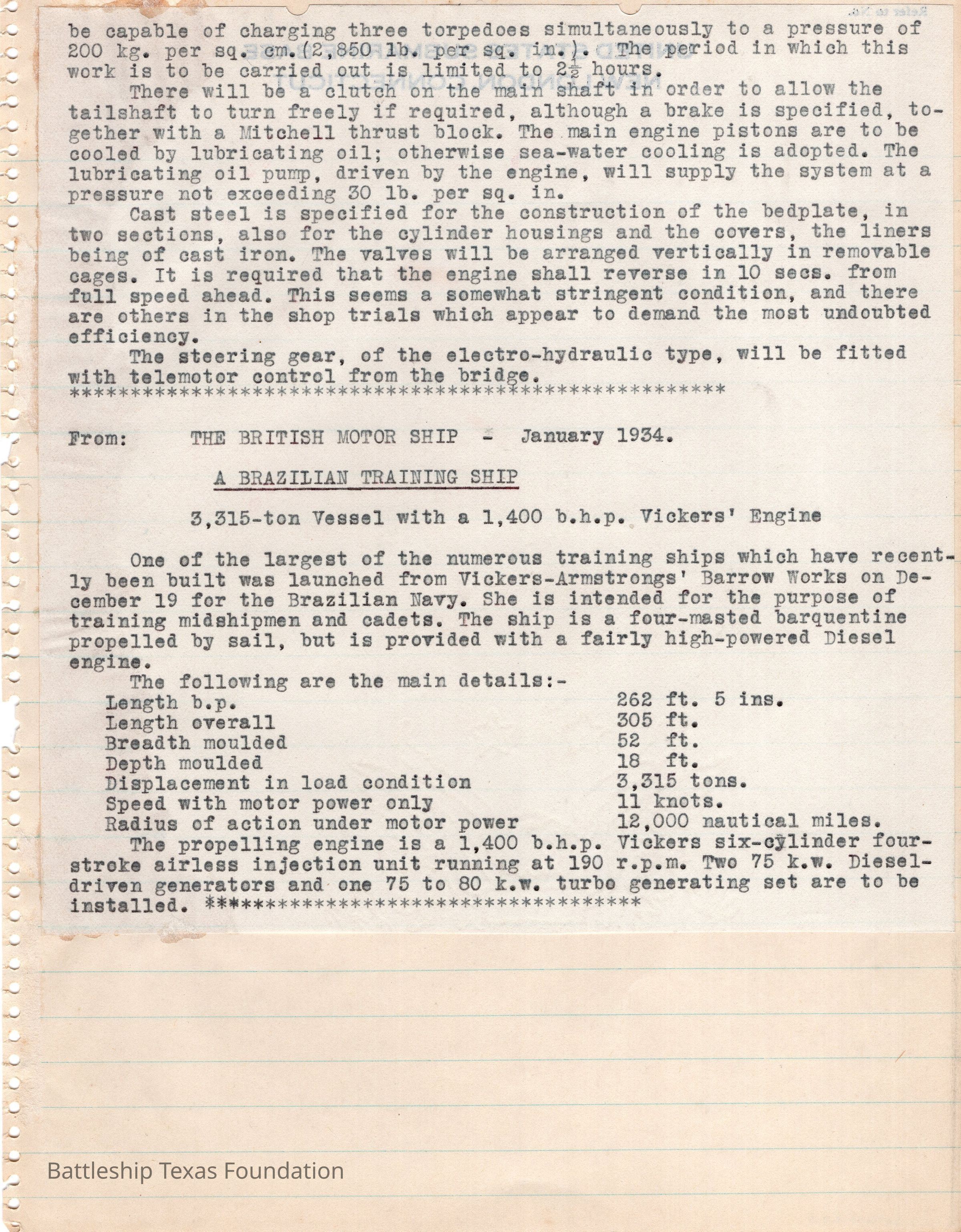 One of five separate pages of notes on ships written, collected, and kept by Charles Pratt in the mid 1930s.