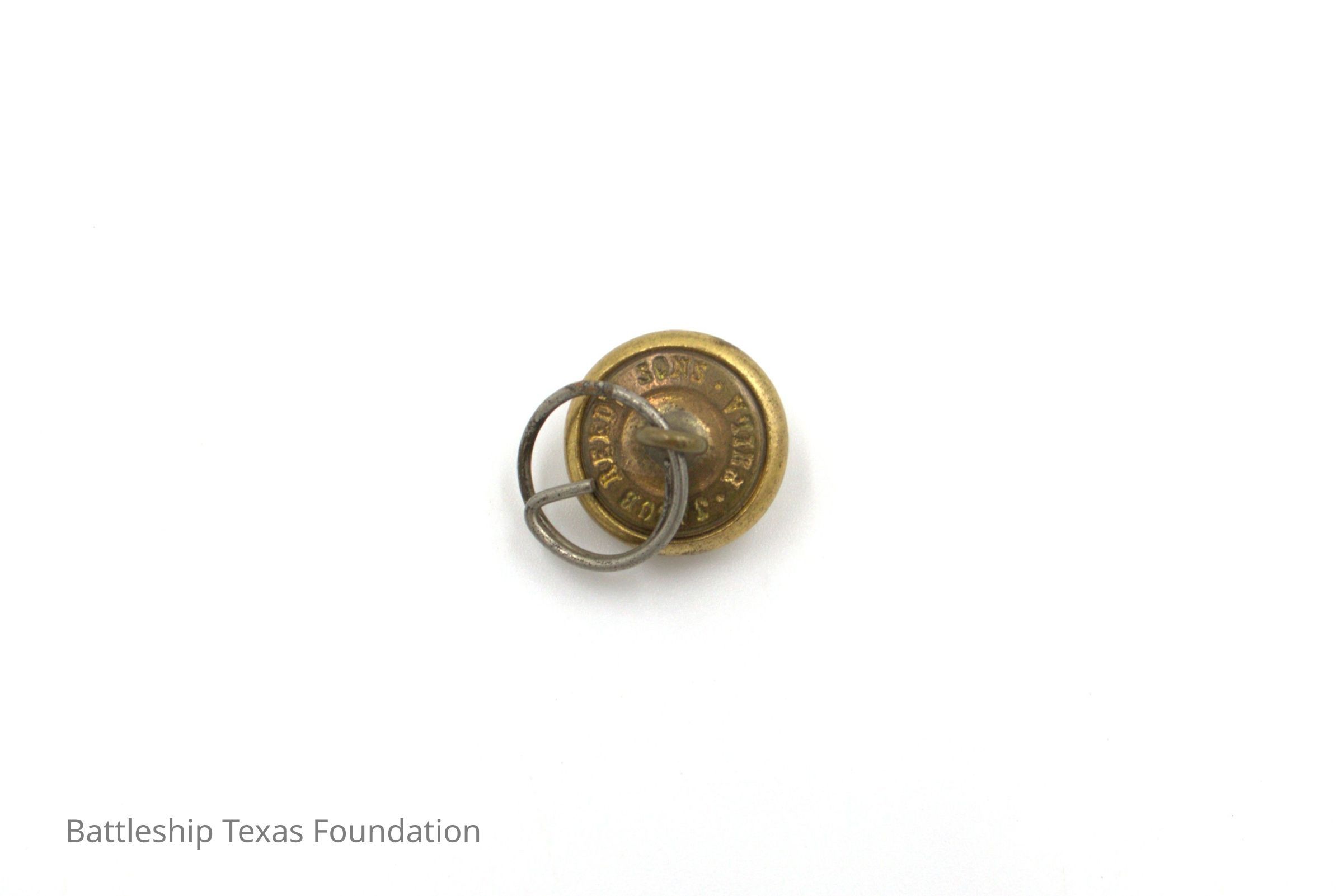 One of fifty-two individual gold buttons owned by Charles R. Pratt as spares for his USN overcoats. Button features an eagle perched on an anchor on the front. This variety is smaller than the regular size.
