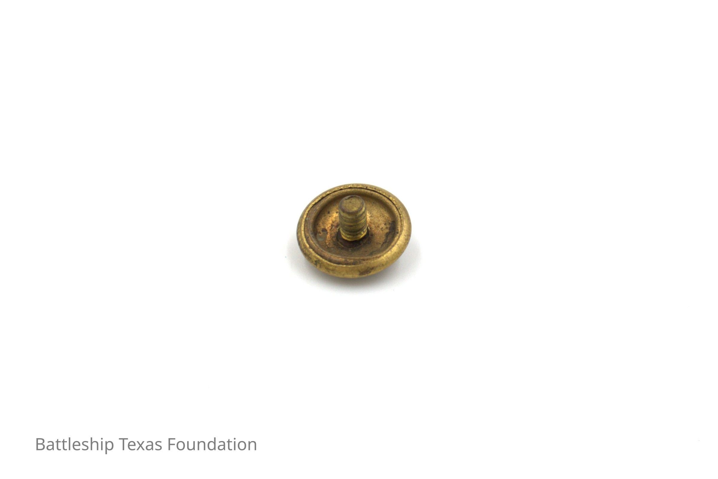 One of fifty-two individual gold buttons owned by Charles R. Pratt as spares for his USN overcoats. Button features an eagle perched on an anchor on the front. This variety is smaller than the regular size.