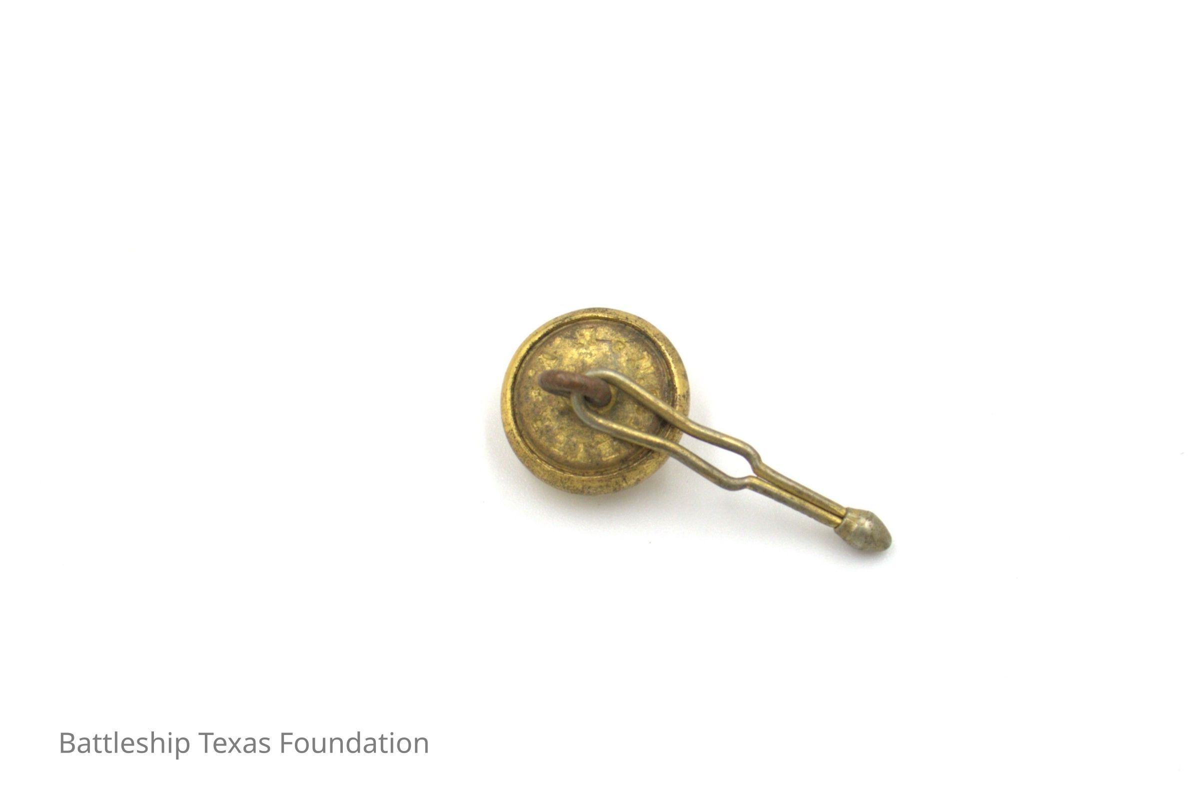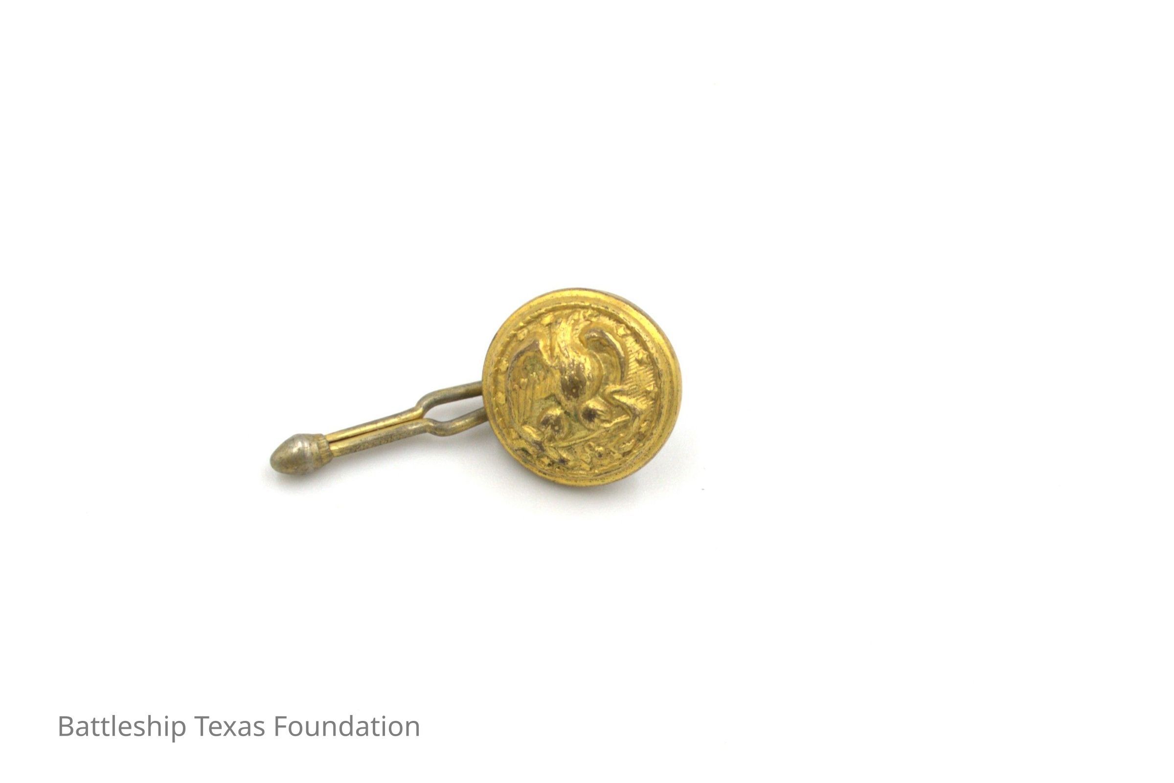 One of fifty-two individual gold buttons owned by Charles R. Pratt as spares for his USN overcoats. Button features an eagle perched on an anchor on the front. This variety is smaller than the regular size.