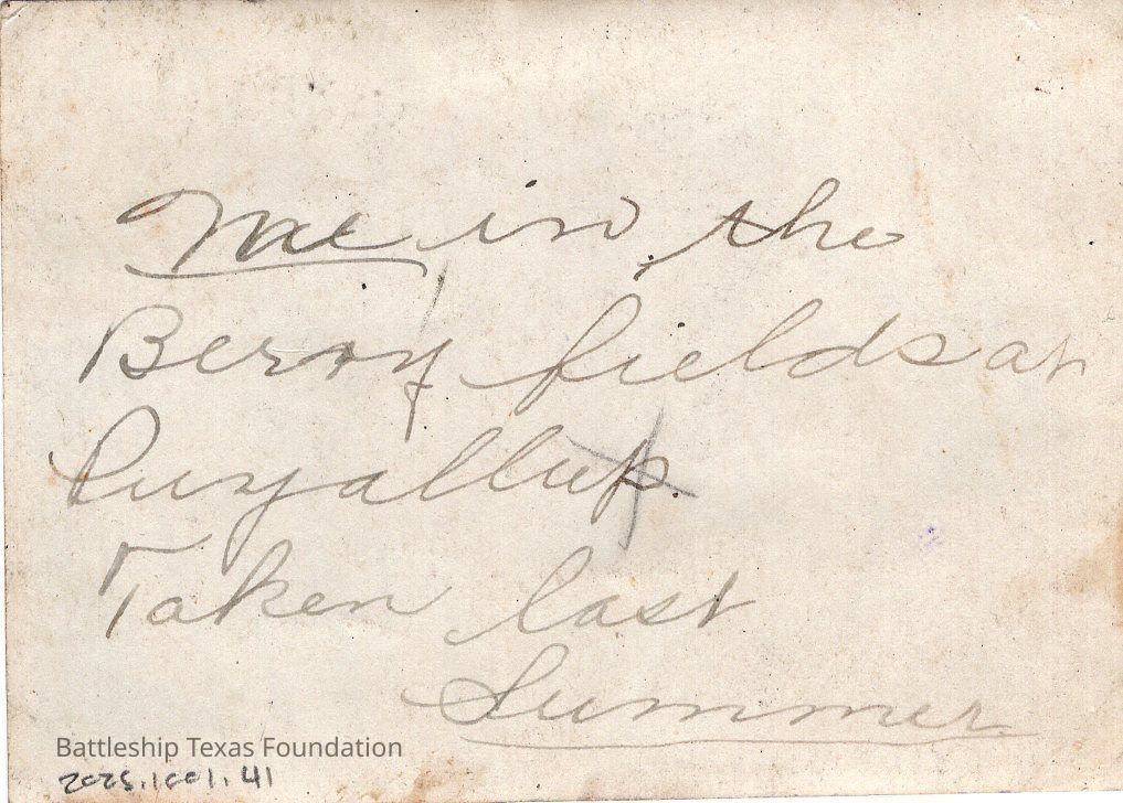 Entries 2025.1001.23 through 2025.1001.99 were taken out of the significantly deteriorated pages of at least one photo album belonging to Texas crew members and bought by BTF. The album photos date to the early to mid 1920s. Each photo had writing on the pages of the book, now discarded. The caption formerly on the page for this photo read,