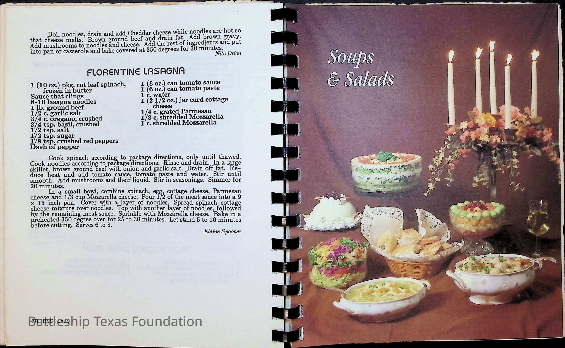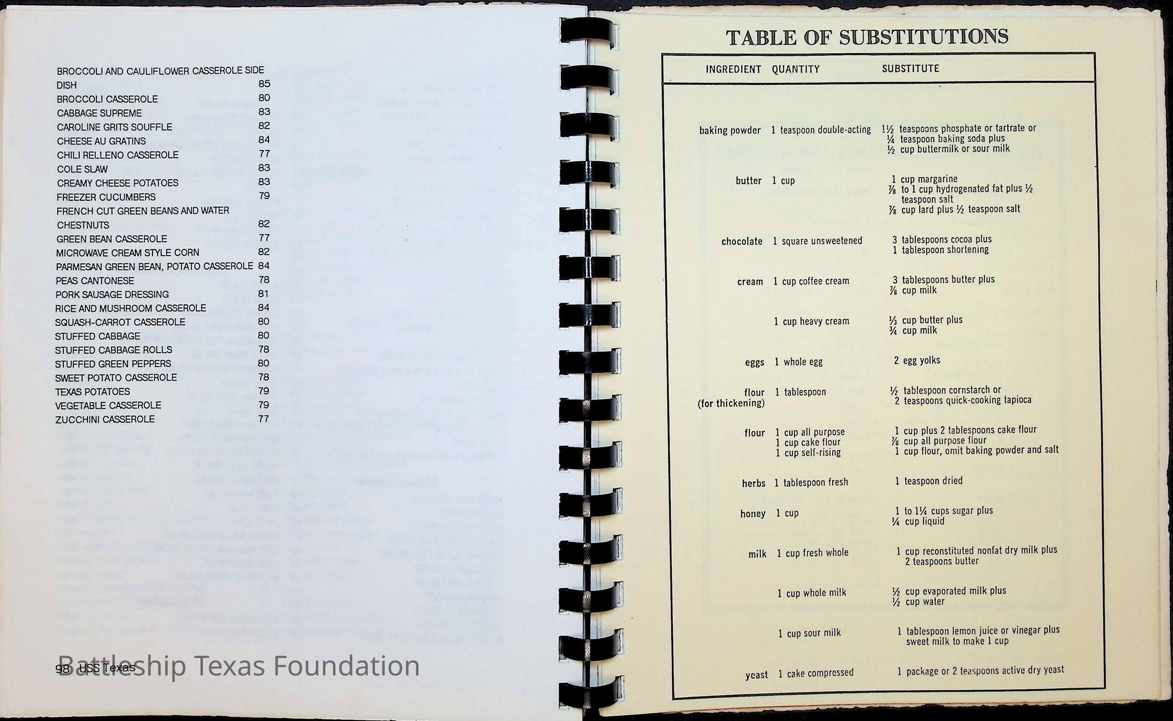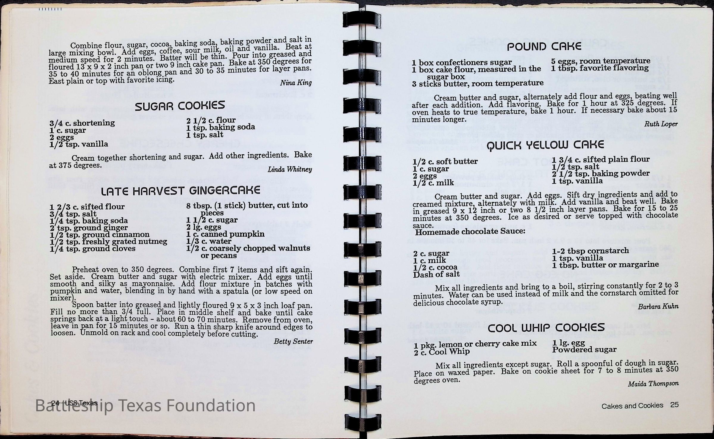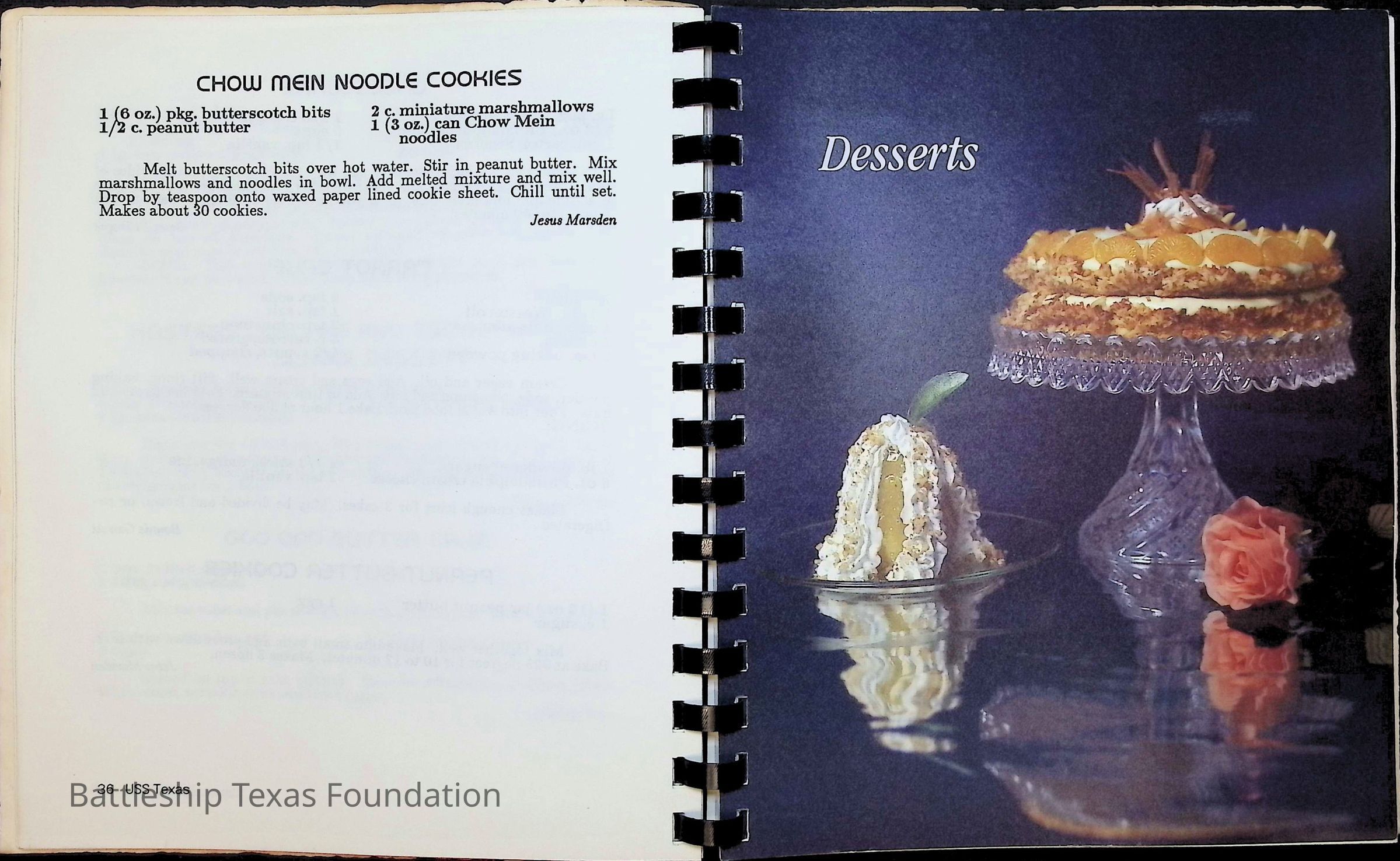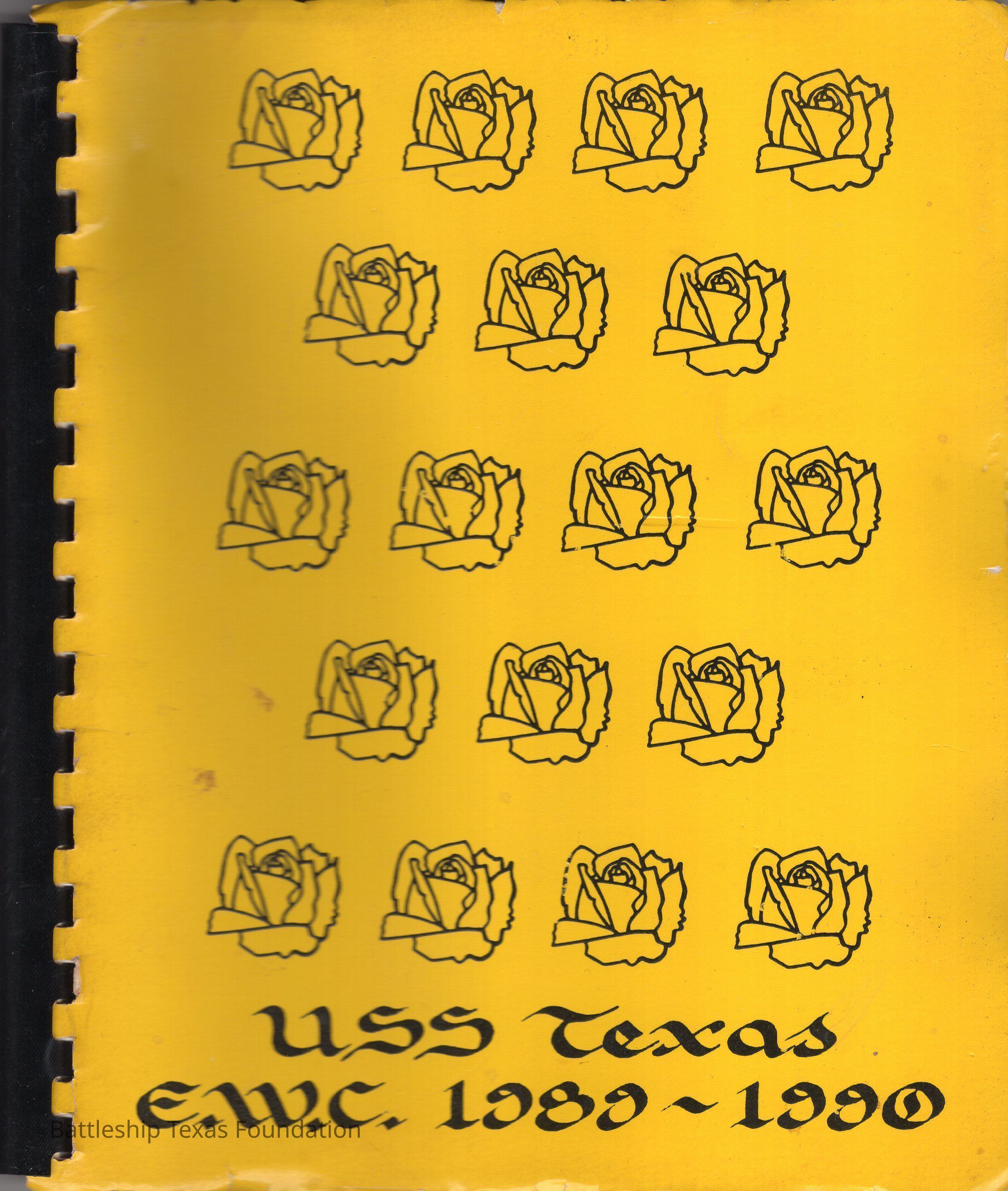 Cook book for the nuclear cruiser USS Texas (CGN-39). Yellow cover with rows of roses above title.
